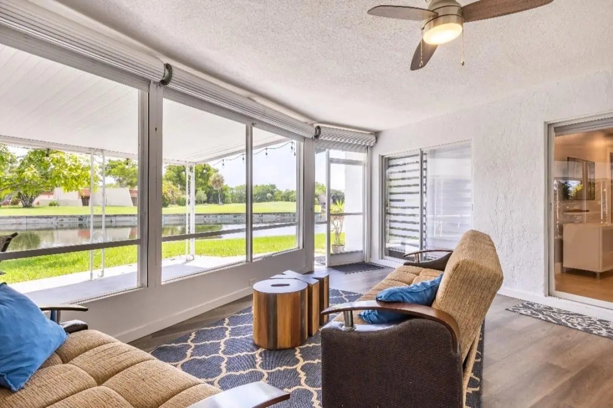 VERY LARGE, 3/2 HOUSE ON A CORNER LOT RIGHT ON THE WATER WITH EXPANSIVE GOLF VIEW & SPACIOUS SPLIT FLOOR PLAN. THE BEAUTIFUL EAT-IN KITCHEN LEADS TO THE ENCLOSED SCREENED -IN PATIO AND ALSO TO THE FORMAL DINING ROOM. THE GIGANTIC 2 CAR GARAGE HAS LOTS OF STORAGE WITH A OFFICE SPACE NEWER APPLIANCES IN THE LAUNDRY AREA PLUS WORKSHOP. THE CIRCULAR DRIVEWAY PROVIDES LOTS OF PARKING SPACE. THIS READY TO MOVE-IN GEM WON'T LAST.