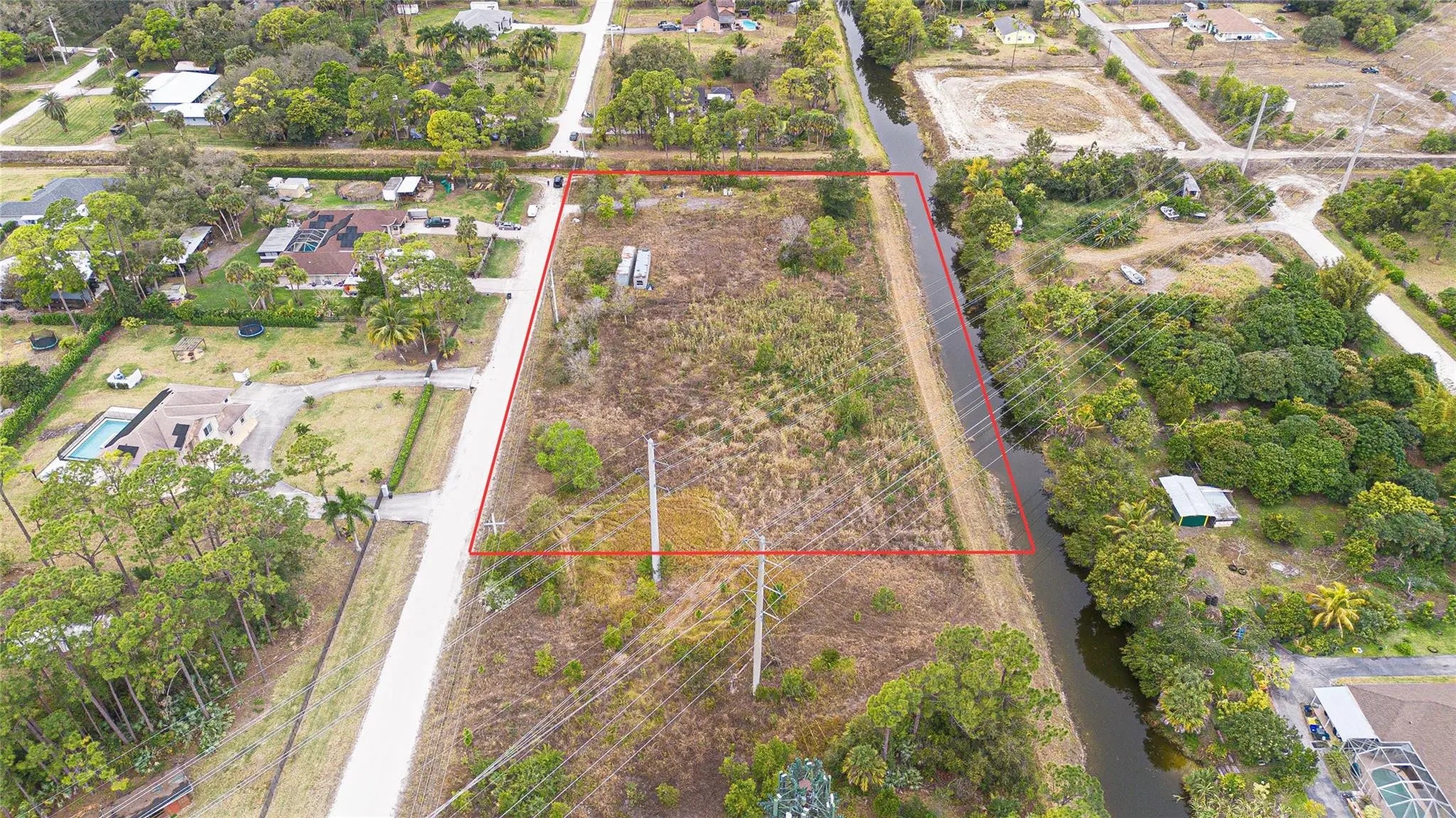 RARE 2.77 Acre Lot at a dead end street. NO HOA OR RESTRICTIONS. This expansive lot has been cleared and filled, bordered by canals on two sides, offers versatile AG/residential zoning that opens the door to endless possibilities. Perfect for a dream home, or could be divided by builder/investor for 2 spec homes. Improvements include 250 amp power, temp power poles, and well system + water filtration, fencing, and RV pad installed with 60 amp hookup. Property has land survey and tree survey. This lot is ready to building and has endless potential for equestrian use, farming, and more.