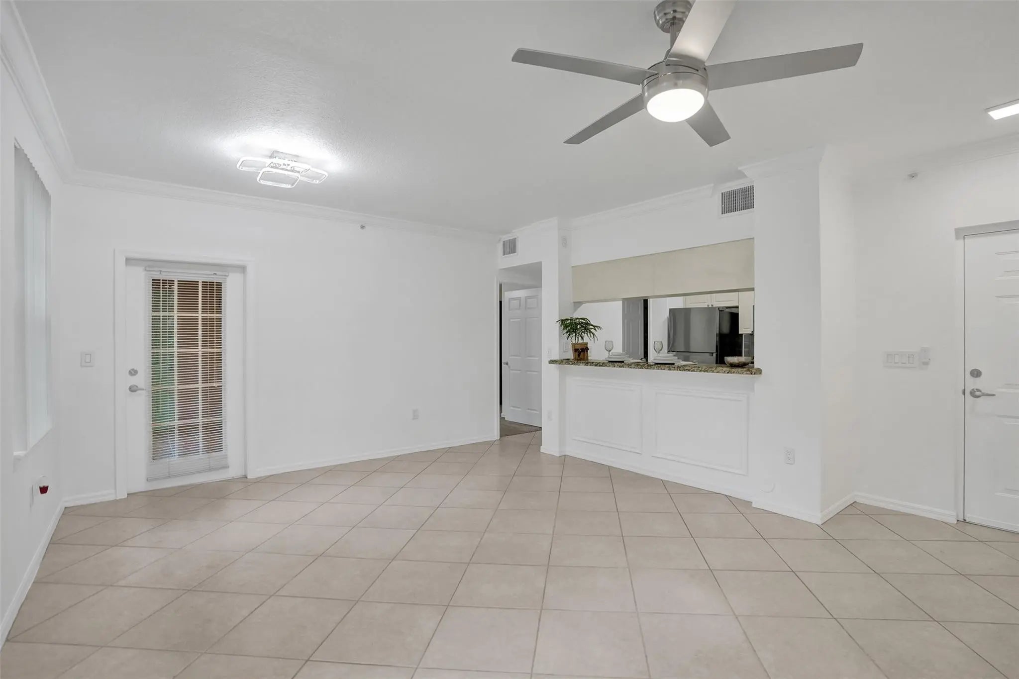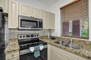 First floor 1 bedroom, 1 bathroom condo located in a gated community with extensive amenities. The unit features an open kitchen with granite countertops, ample cabinetry, and stainless steel appliances, flowing into a spacious living and dining area with tile flooring throughout. Washer and dryer are conveniently located inside the unit. The bedroom offers generous closet space, and the screened patio provides a comfortable outdoor area with garden views. Community amenities include a resort style pool, spa, fitness center, clubhouse, tennis and basketball courts, playground, walking paths, and beautifully maintained grounds. Conveniently located near shopping, dining, and major roadways. Min Credit Req 680