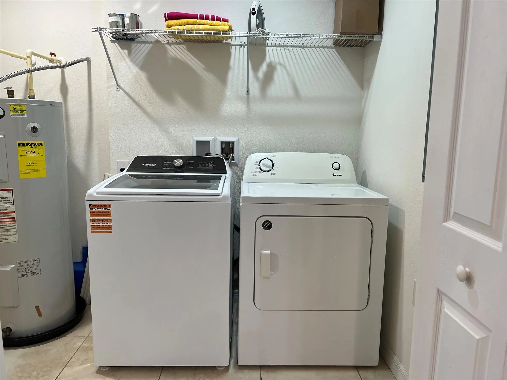 Electric Water Heater, Dryer, Disposal, Dishwasher, Electric Range, Microwave, Refrigerator, Water Heater, Washer