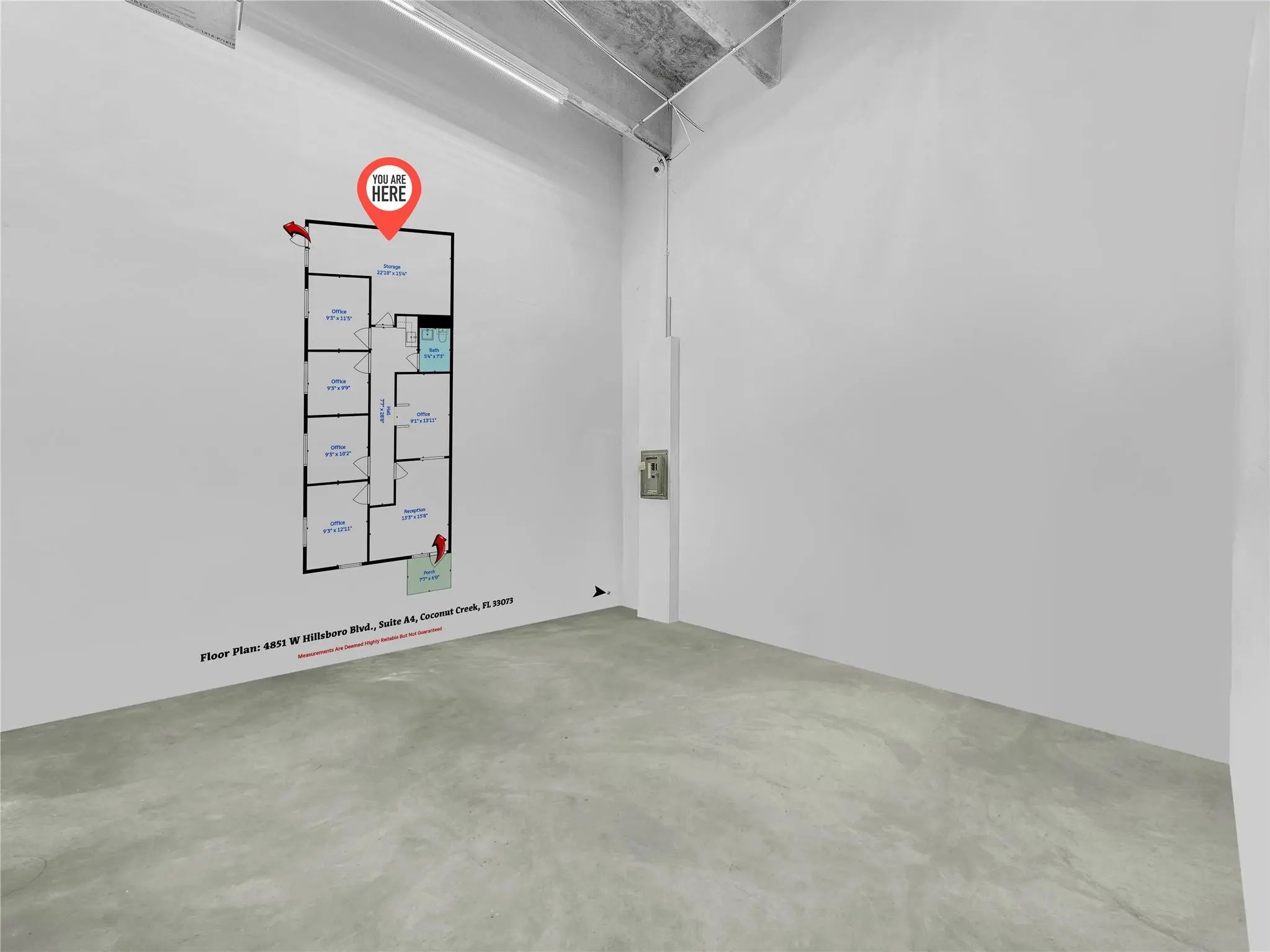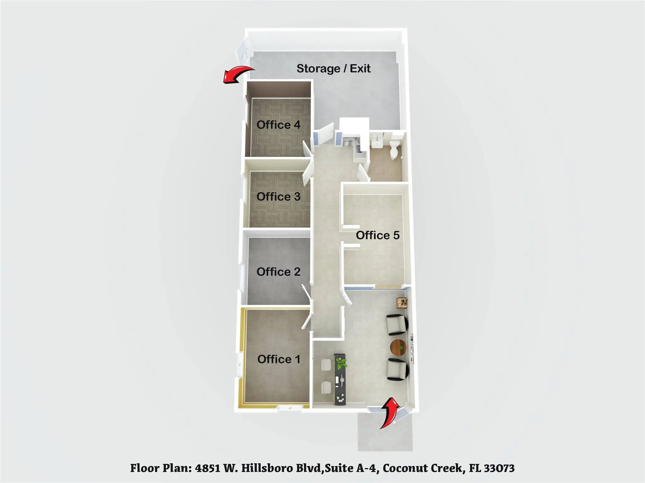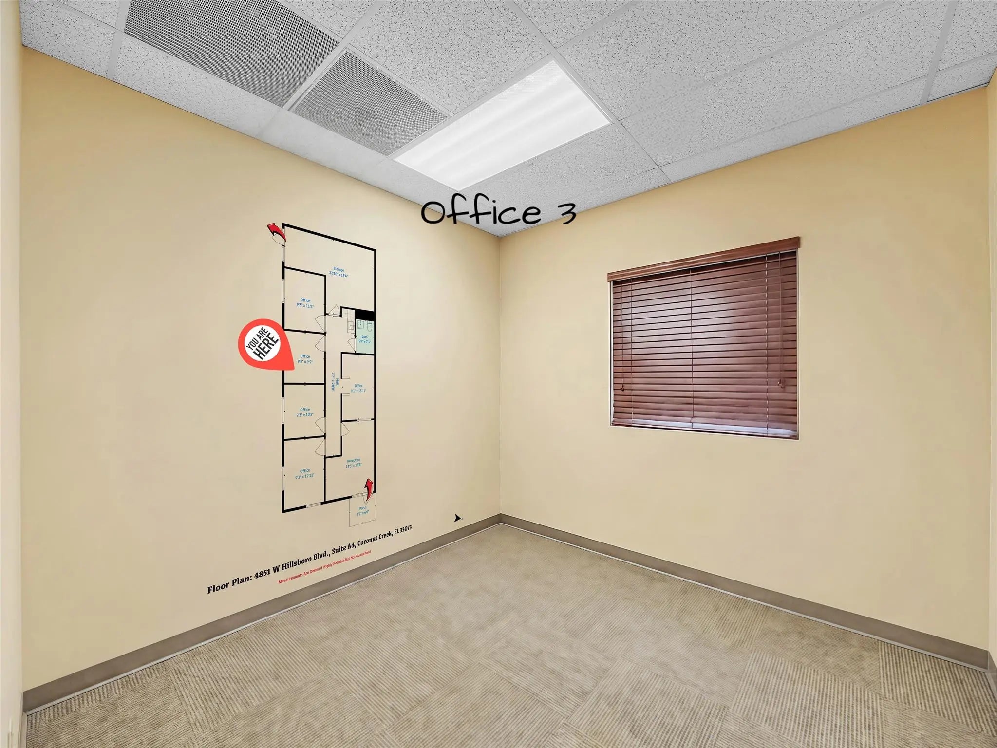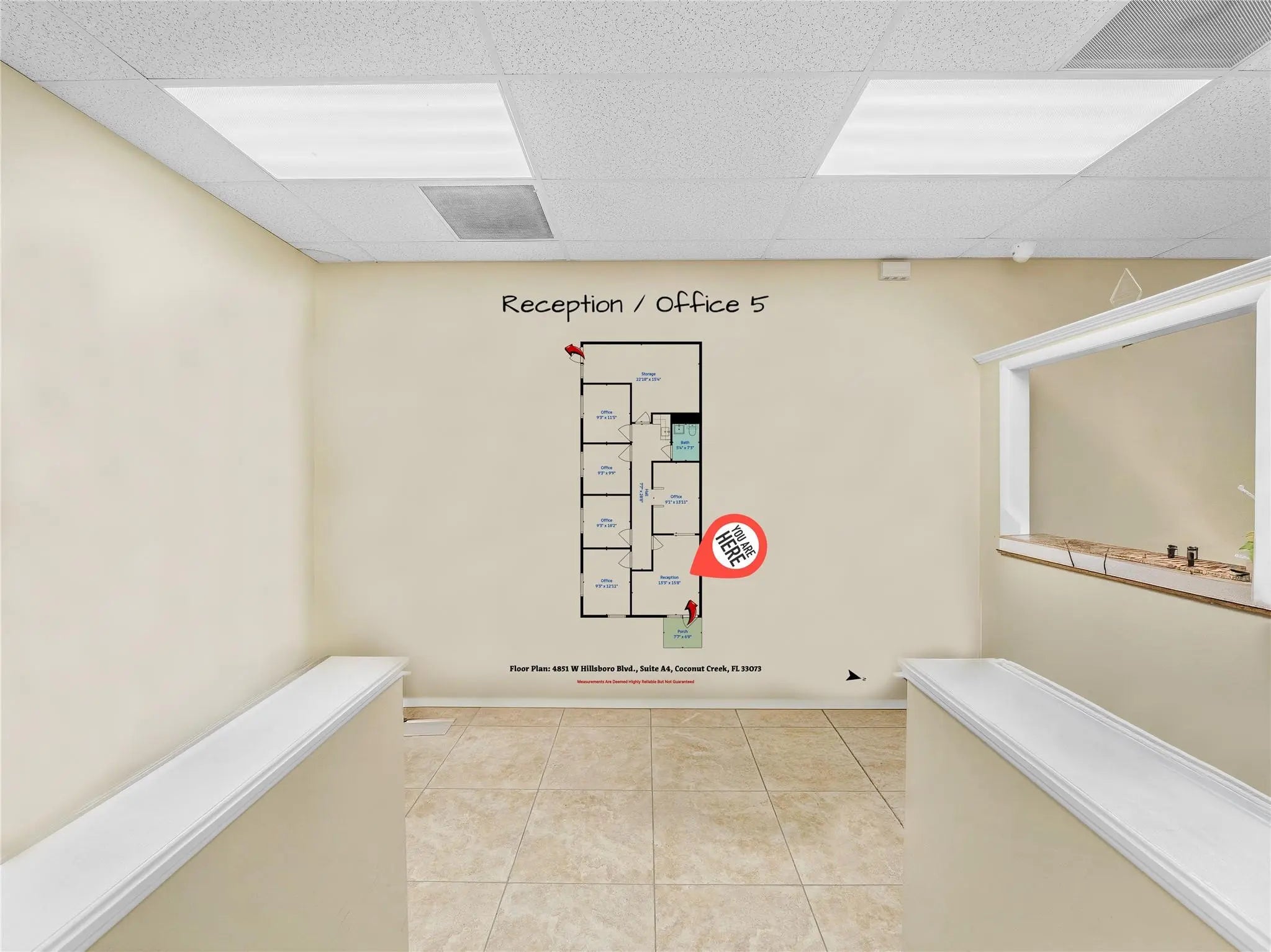 Reduced Price! Bright corner unit with windows in every office, offering excellent natural light throughout. This turnkey space may include furnishings and features impact windows and doors for added peace of mind. Includes four private offices, a stylish lobby and reception area, and a spacious warehouse with high ceiling in the rear. Thoughtfully built out and ready for immediate occupancy. 1 assigned parking space and ample visitor parking. Security camera and inactive alarm system included. Convenient North Coconut Creek location, close to major roads and highways, dining and shopping.
