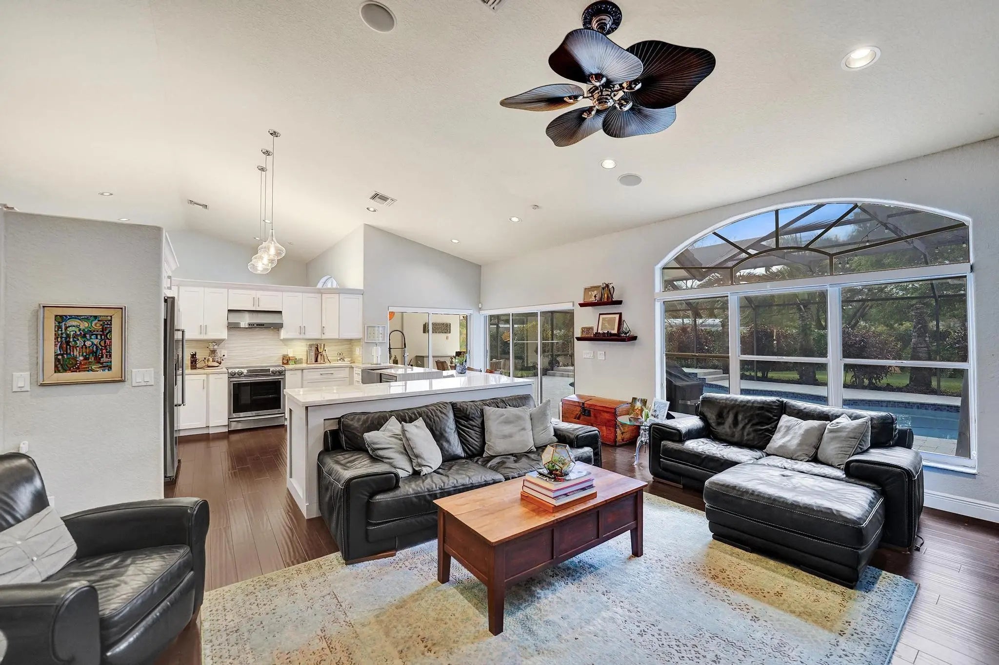Nestled on a private cul-de-sac in a coveted Davie enclave, this exquisitely upgraded residence offers refined indoor-outdoor living. The designer kitchen features custom cabinetry, while renovated powder room, cabana bath, & Jack-and-Jill baths provide spa-like comfort. Rich wood floors flow thru the main living spaces w/ integrated LED lighting thruout. Outdoors, enjoy a resort-style pool & patio surrounded by professionally landscaped gardens, architectural stonework, landscape lighting & mature fruit trees. The expansive yard includes a pecky cypress playhouse. New roof (2023), 3-zone A/C, hurricane-rated garage door & shed, EV charger, whole-house surge protector, generator, ADT security, outdoor cameras & new washer/dryer. Impeccably maintained and truly turnkey— A MUST SEE!