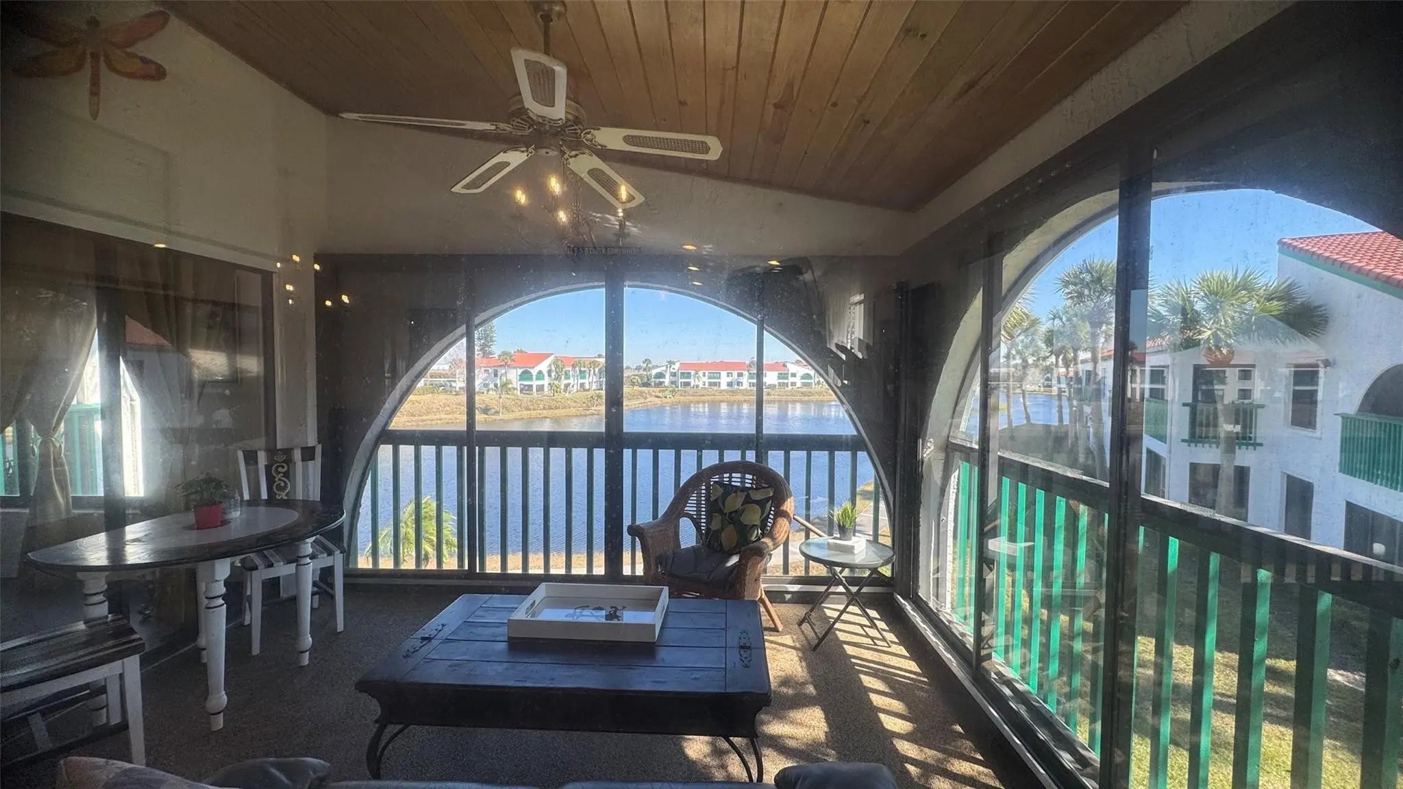 Beautifully updated and maintained 3 Beds 2 Baths Fully Furnished(!) Condo with direct Lake views from all windows, enclosed Balcony facing the lake and Double covered carport parking with 2 Storage spaces(!), located in the desirable Bluffs of Sebring community. Enjoy a peaceful living on the lake with a large community pool area, Jacuzzi, bbq area, club house, party room, play room, gym, community events and so much more! This spacious Condo has all the attractions and convenience a 55+ community complex can offer. Community is gated with an access code and very secure, and you will find yourself meeting great neighbors to spend time with at the pool or community events. Welcome Home!