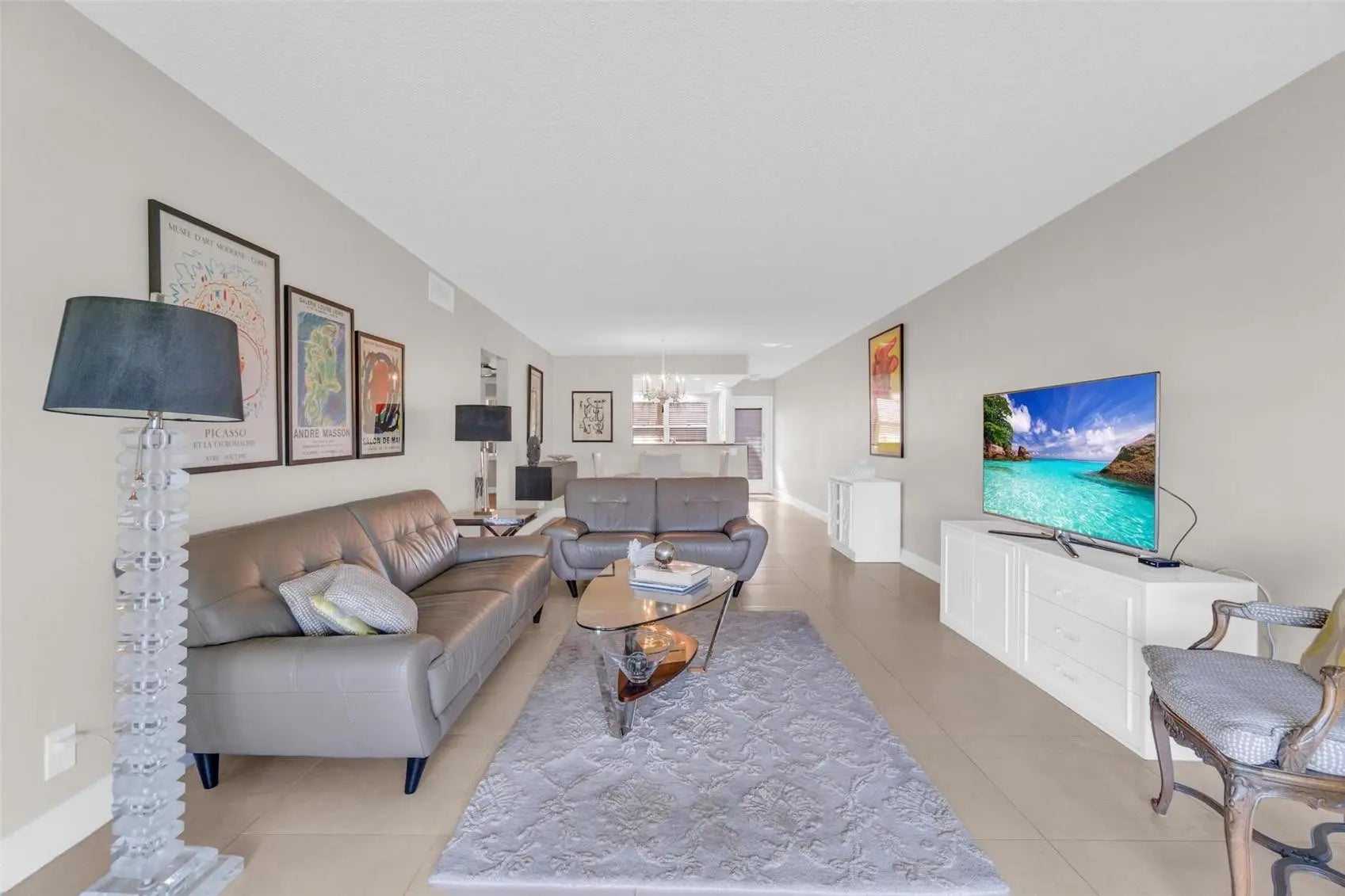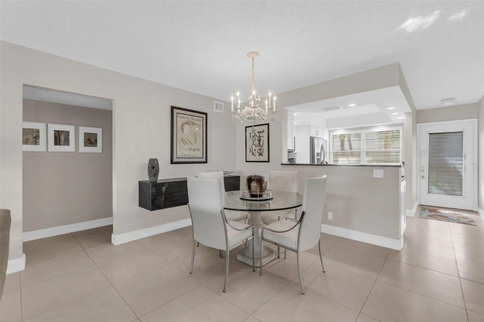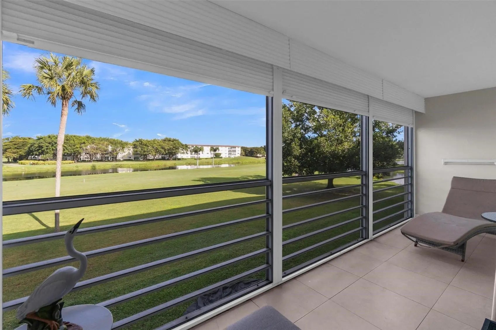 Discover this beautifully remodeled residence where elegance meets everyday comfort. The open, eat-in kitchen flows effortlessly into the dining and living areas, creating a welcoming space ideal for entertaining or casual gatherings. Step onto the serene screened patio and take in unobstructed, panoramic views of the golf course and shimmering water with a fountain—a stunning and peaceful backdrop. The home also features custom closets providing generous storage and a desirable north-facing exposure that fills the space with natural light while minimizing direct sun. Conveniently located in a prime location within walking distance of the community’s most sought-after amenities.