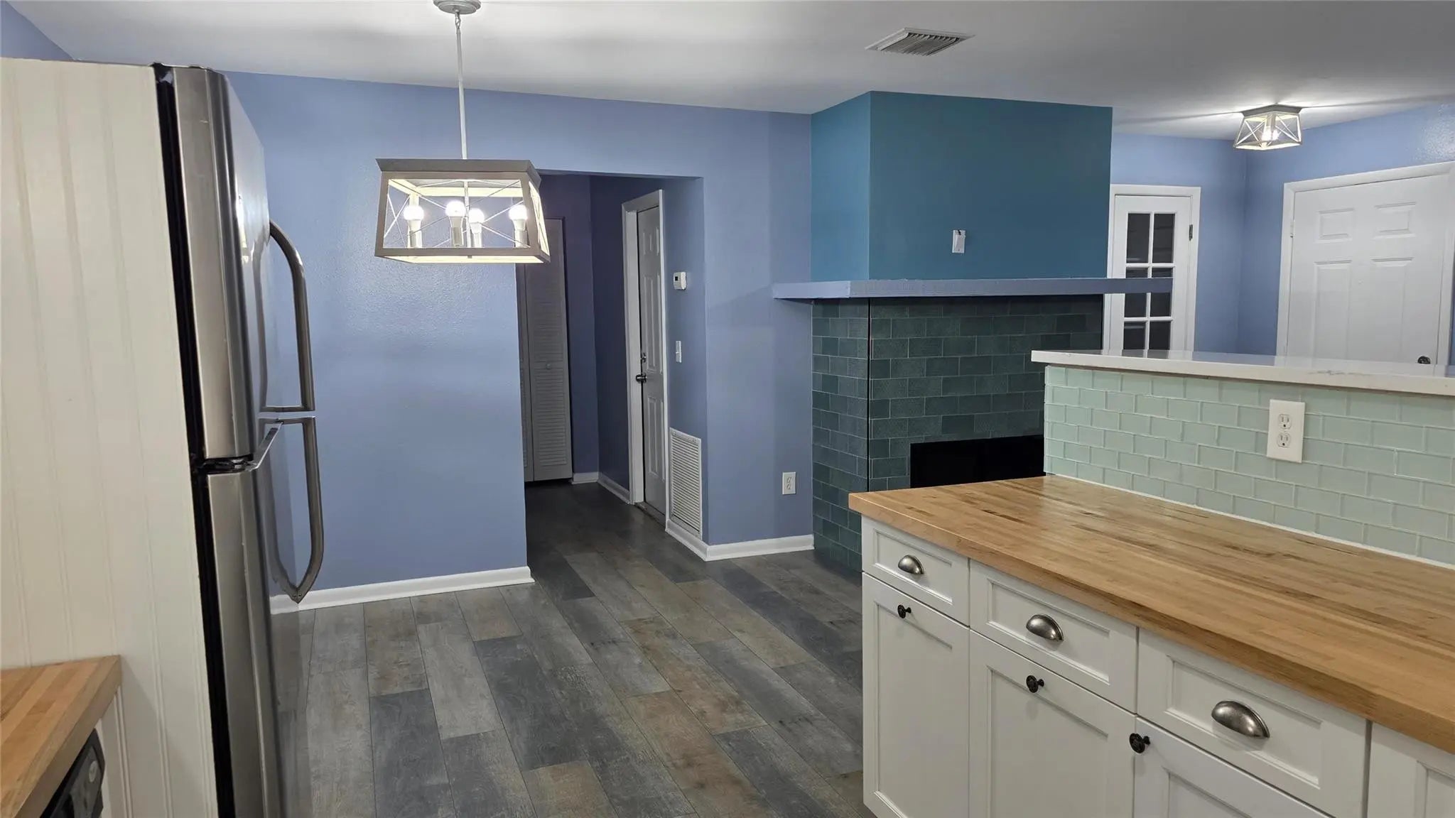 Charming 2 bedroom, 2 bath single family home featuring a family room and separate den. This home offers luxury vinyl flooring throughout, ceiling fans, and a cozy wood burning fireplace. The spacious kitchen includes butcher block countertops and stainless steel appliances. Additional highlights include a one car garage, full-size washer and dryer, and a large, fully fenced backyard providing excellent privacy. Yard maintenance is included in the rent. Pets will be approved on a case by case basis. No smoking. Conveniently located near shopping, parks, and beautiful beaches.