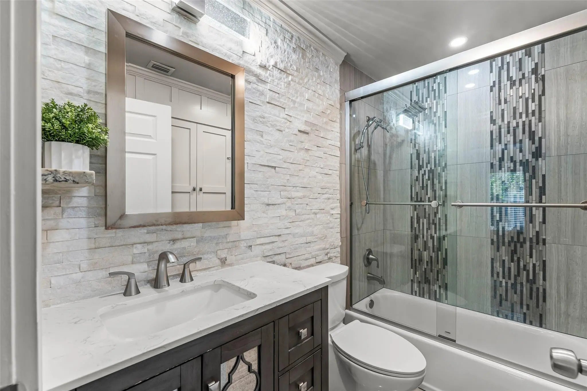 Room to breathe! This 3 bed 2 bath home sits on a lush 1.3 ACRES w/ NO HOA! Upgrades include a brand new A/C, & hot water heater. Circular entrance with large Calusia shrubs for privacy. Open concept living/dining area & vaulted ceilings offers a spacious feel. Kitchen features granite counters, custom cabinetry, stainless appliances, pantry & island. Master suite enjoys a walk-in closet & ensuite bath w/ upgraded vanity & floor-to-ceiling designer tiled shower. The 2 additional bedrooms both have large closets & get to enjoy an EXQUISITELY REMODELED full bath w/ stone accent wall & designer tiled frameless shower/tub combo. Entertain family & friends on the expanded deck & let the kids/pets run around the MASSIVE backyard w/ room for just about anything you want. Bonus, basement storage!
