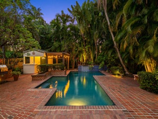 Live the Idlewyld lifestyle in this 3BR/2.5BA home with vaulted ceilings, a private resort-style pool oasis, and walkable access to beaches, dining, and shopping. The versatile first floor offers an office, living, family, and dining rooms with plantation shutters, fireplace, and an ideal entertaining layout perfect for family gatherings, celebrations, and hosting friends. Remodeled kitchen with custom wood cabinetry, updated countertops, and Sub-Zero & Wolf appliances. 2024 upgrades: fresh paint, new A/C, de-humidifier, LED lighting, 400-amp service, tankless water heater, and city gas line for future generator. Pool retreat with waterfall, gas grill, snack bar, updated tile/marcite, and separate storage building. Primary suite with spa-like bath and abundant natural light. Roof 2016.