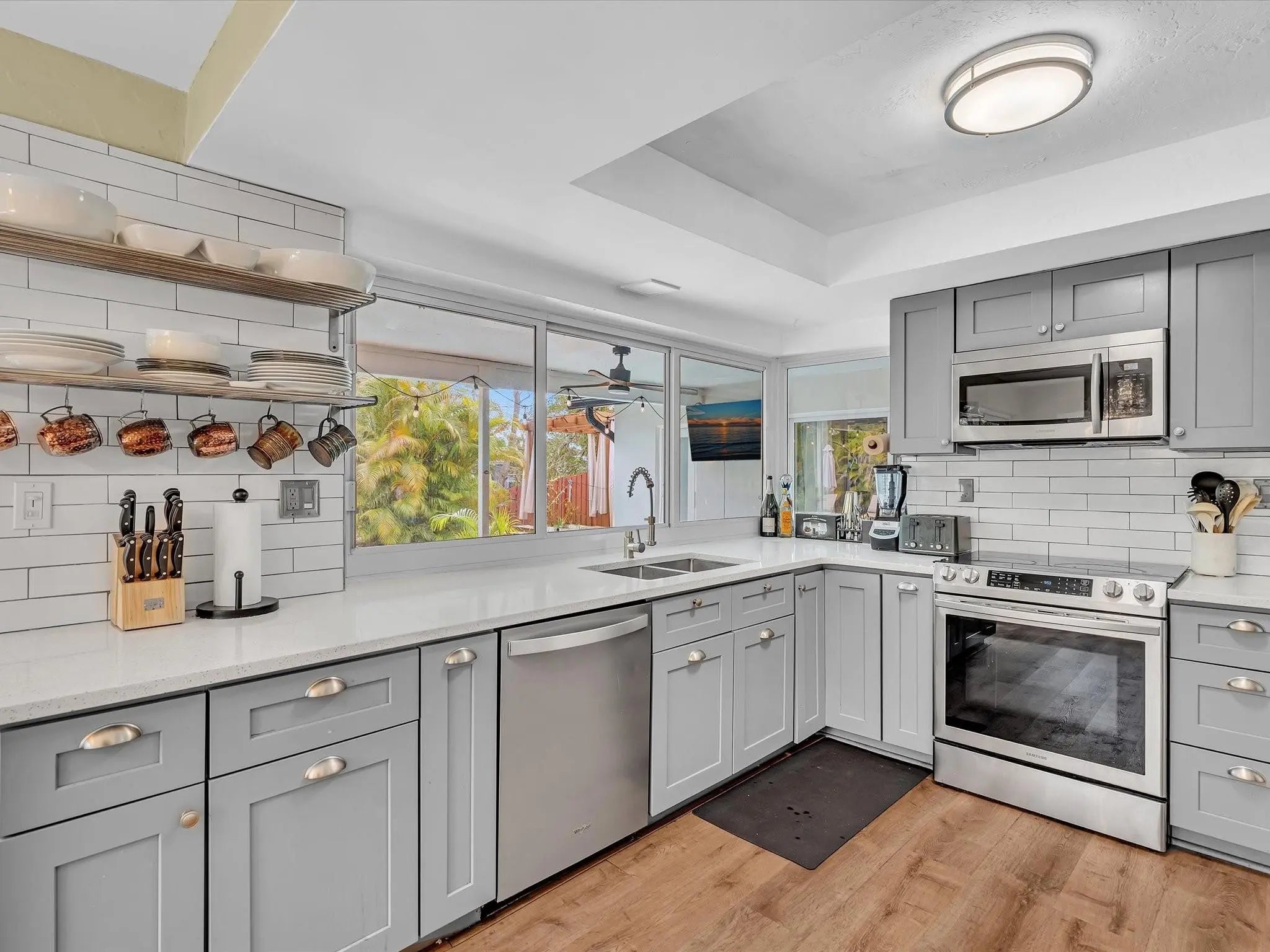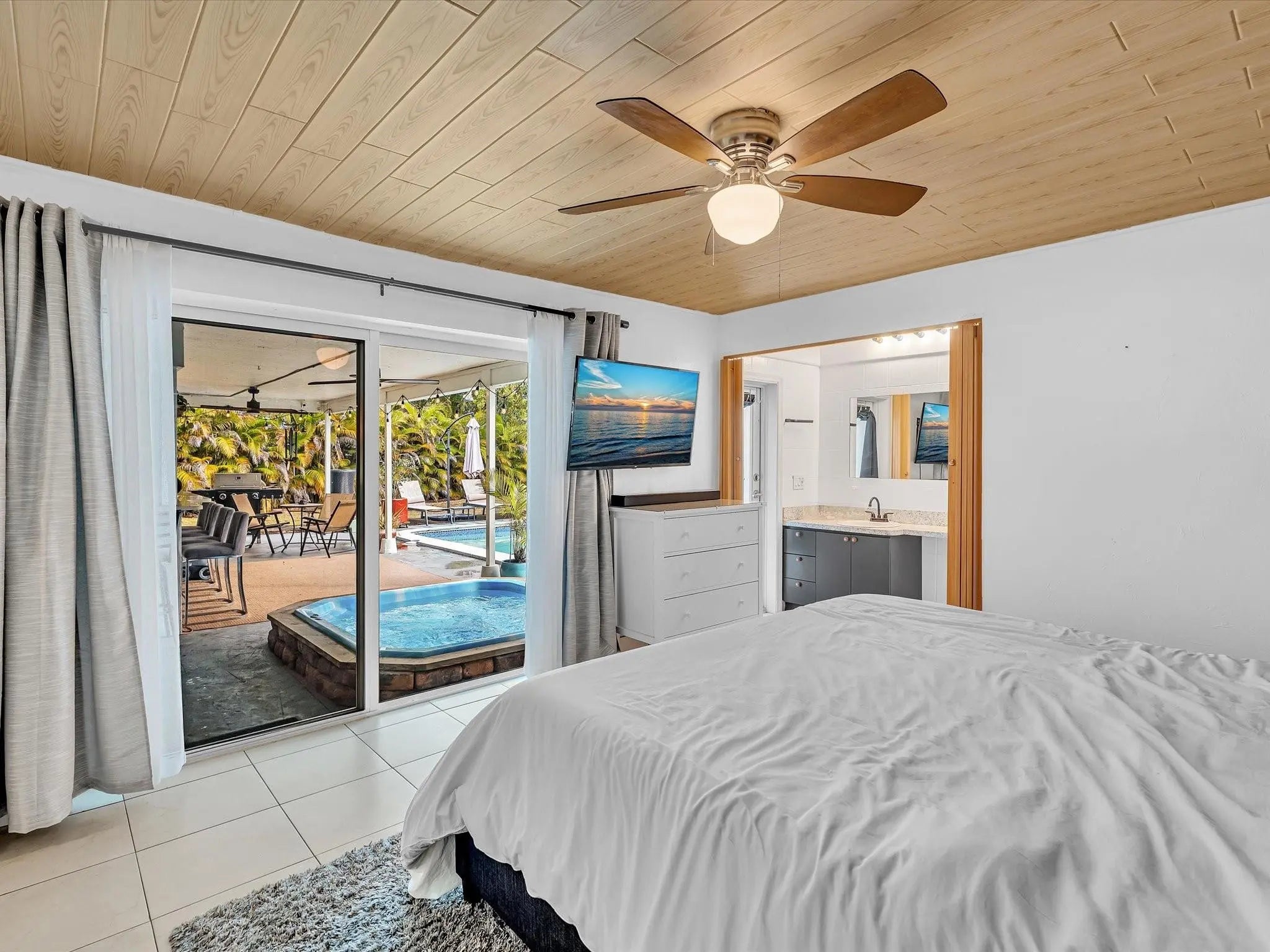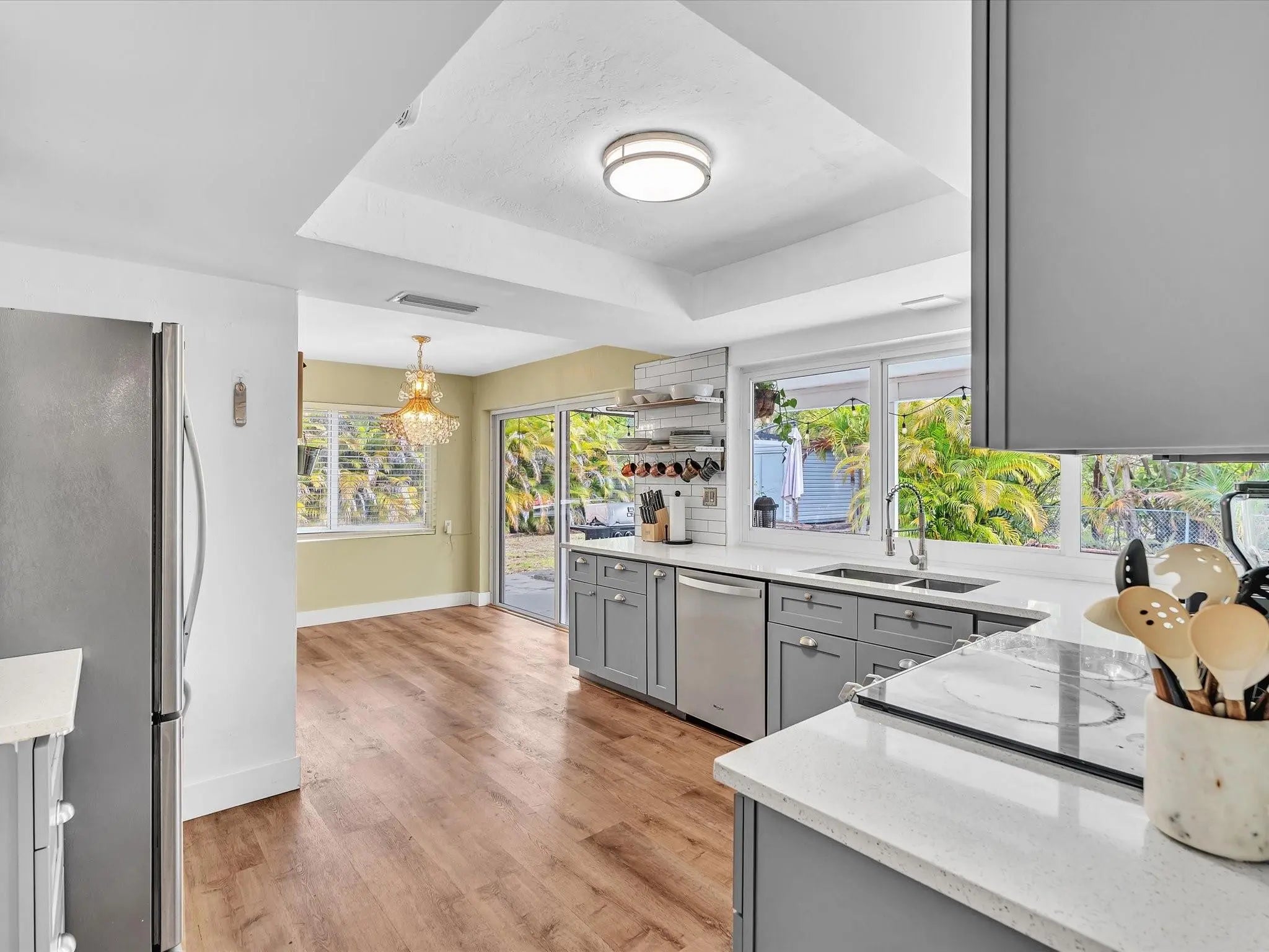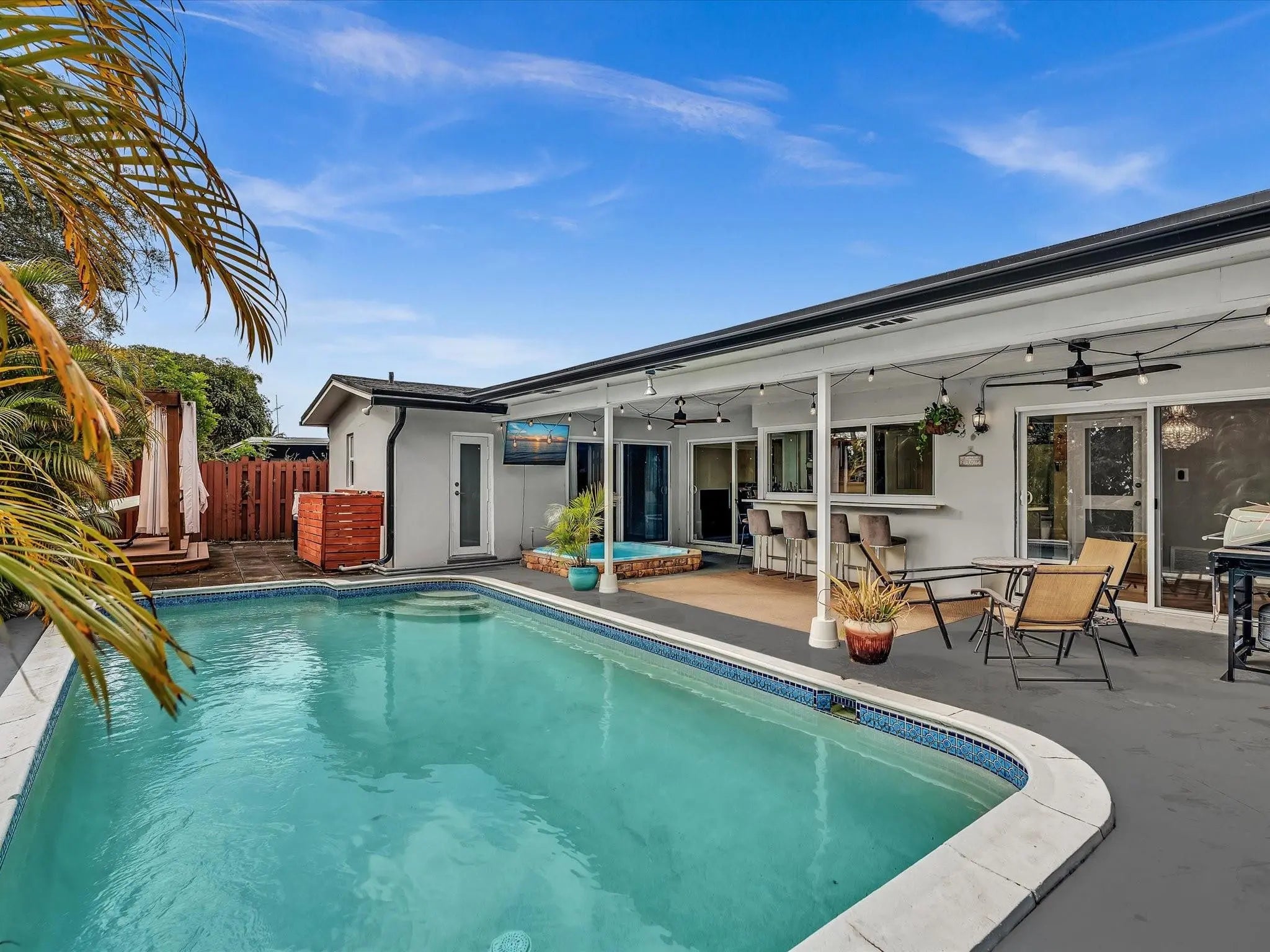 Beautifully updated South Florida home with no HOA, combining modern upgrades, energy efficiency, and exceptional outdoor living. The renovated kitchen features quartz countertops, stainless steel appliances, and a pass-through window perfect for entertaining. Both bathrooms are tastefully updated, and upgraded flooring runs throughout. Enjoy peace of mind with impact windows and doors, a new roof, and fully paid-off solar panels for long-term savings. Situated on an oversized lot with tranquil canal views, the private backyard is an entertainer’s paradise with a sparkling pool, relaxing hot tub, new pergola, mature avocado, mango, and lime trees, plus a shed for extra storage. A rare move-in-ready opportunity—schedule your private showing today.