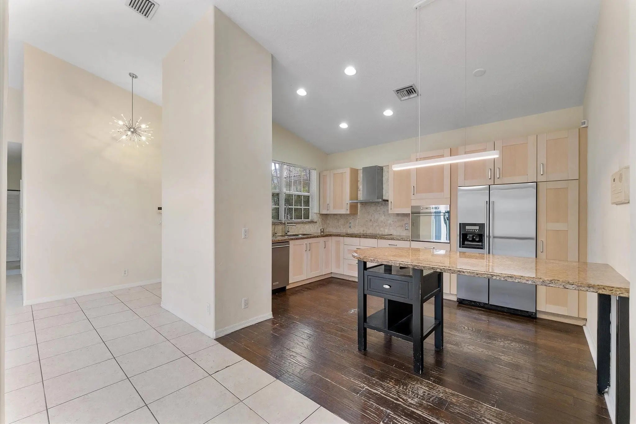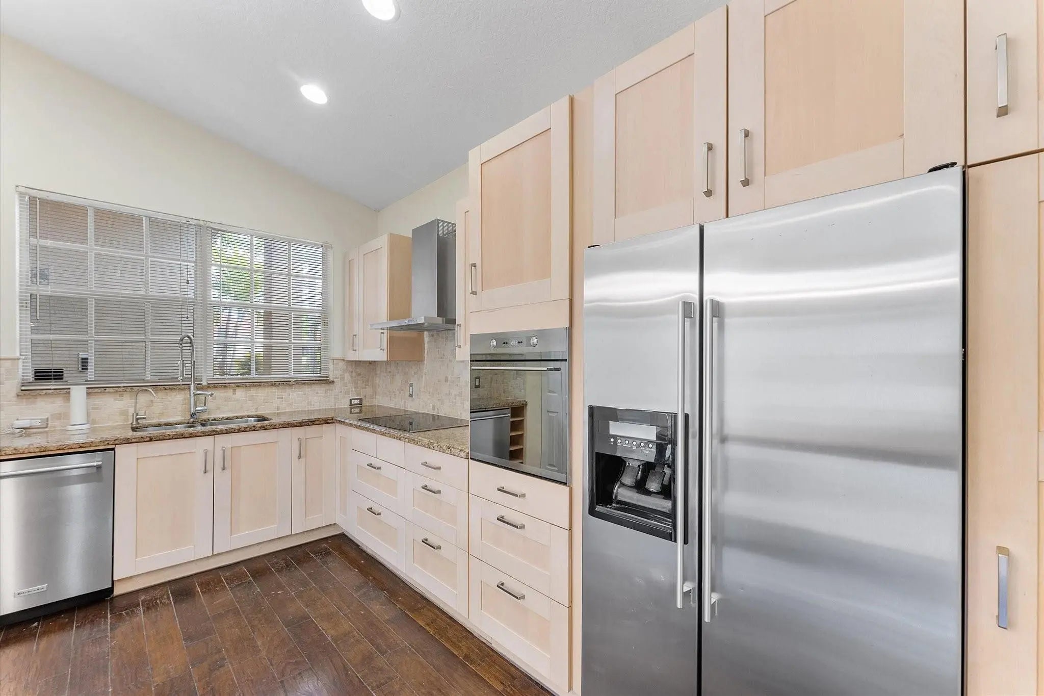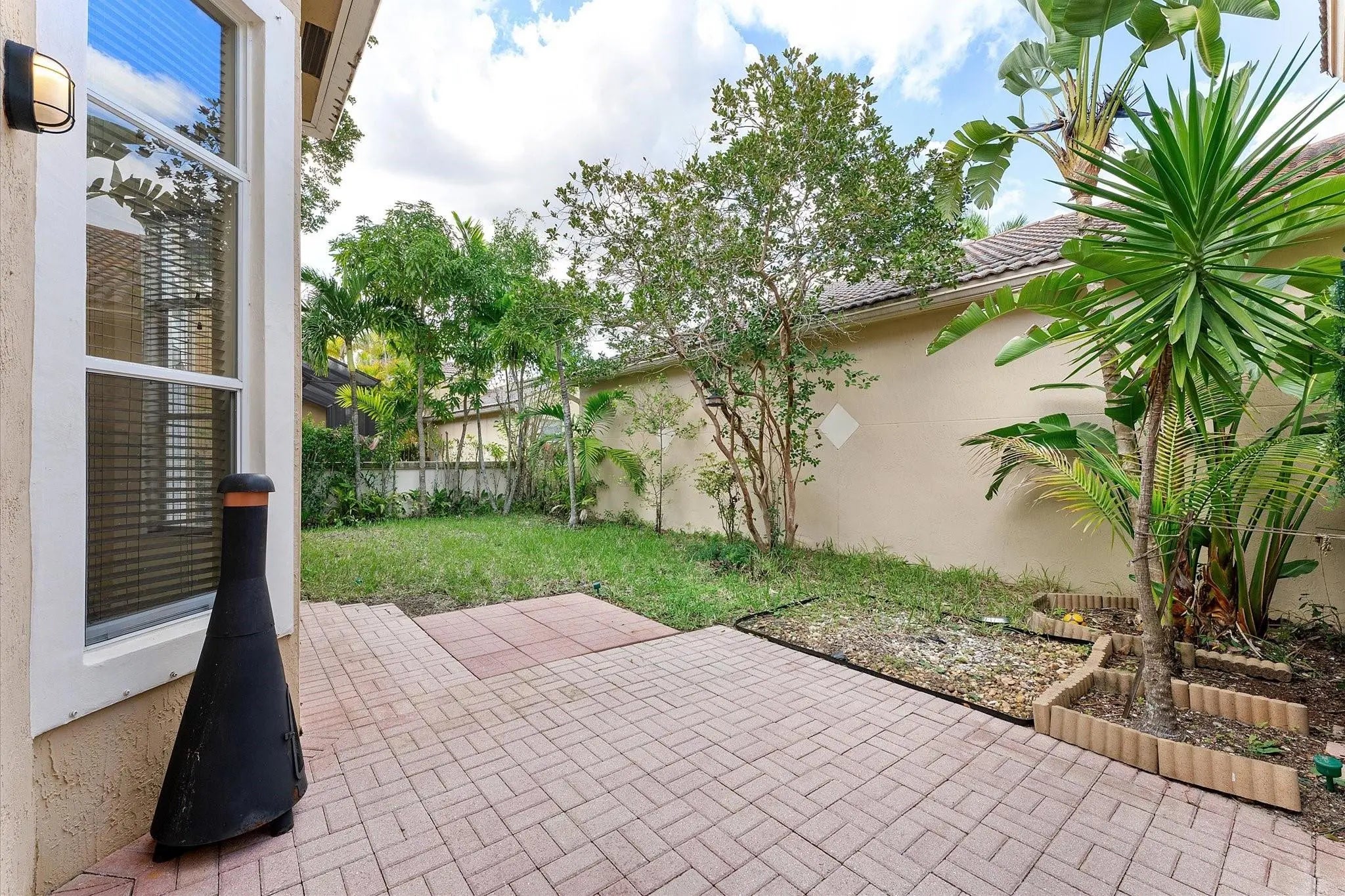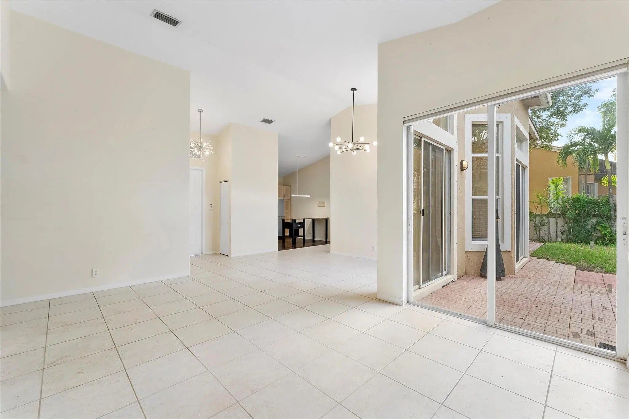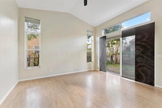 Welcome to this bright and open 3-bed, 2-bath single-family home in Villa Sorrento of Heron Bay, with vaulted ceilings and 8' sliding doors topped with transom. The custom Valencia model features an open kitchen overlooking a spacious family room, complete with light wood cabinetry, granite counters, wall oven, and chimney hood. A separate living and dining area offers added flexibility. Tall doors and expansive windows bring in natural light and open to a private yard with a paver patio. The split bedroom layout provides privacy, while recent updates include a new A/C, new water heater, and a refreshed bathroom. Additional features include an interior laundry room and a 2-car garage. The guard-gated community offers a range of amenities such as pools, a fitness center, and tennis courts.