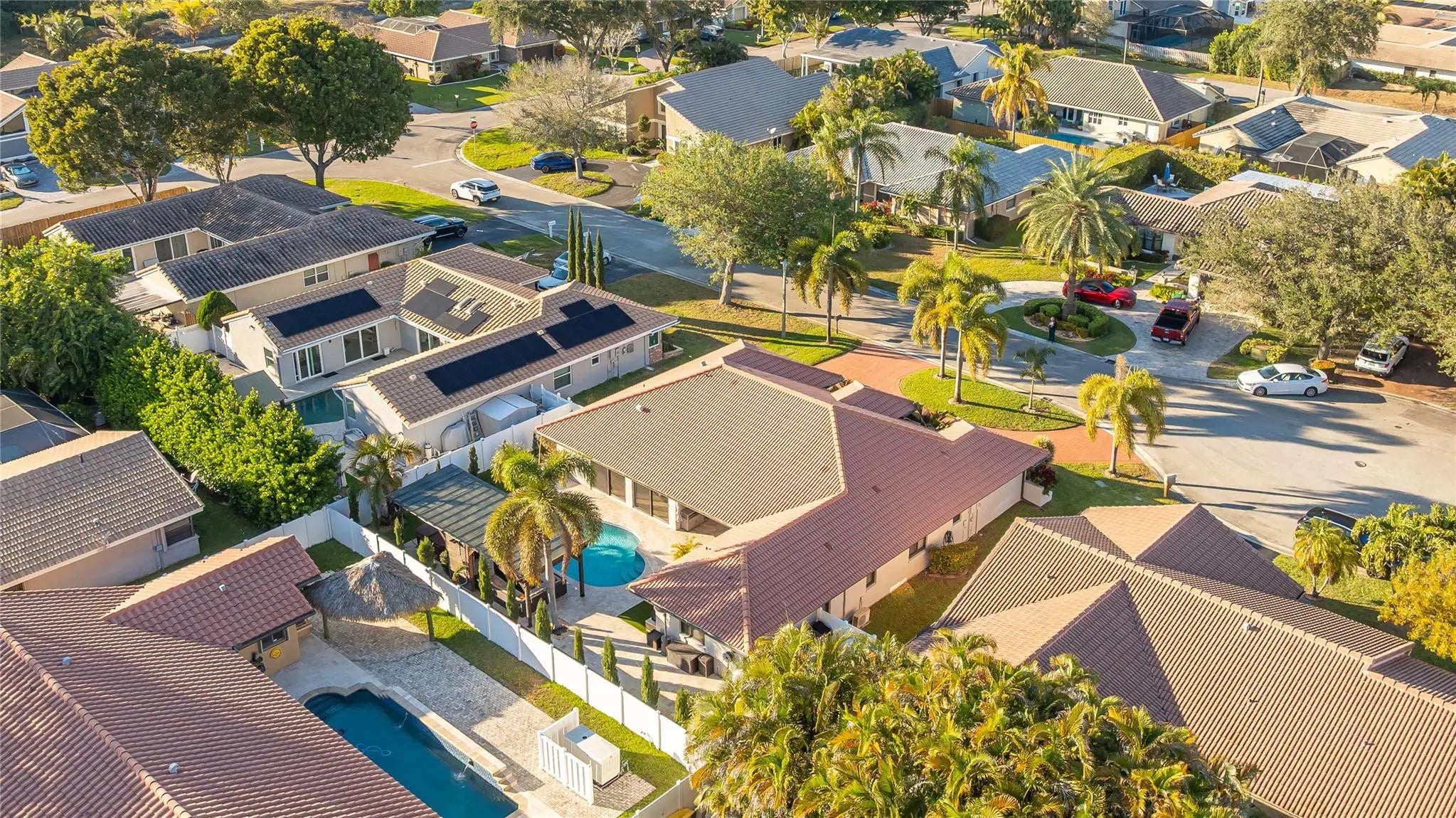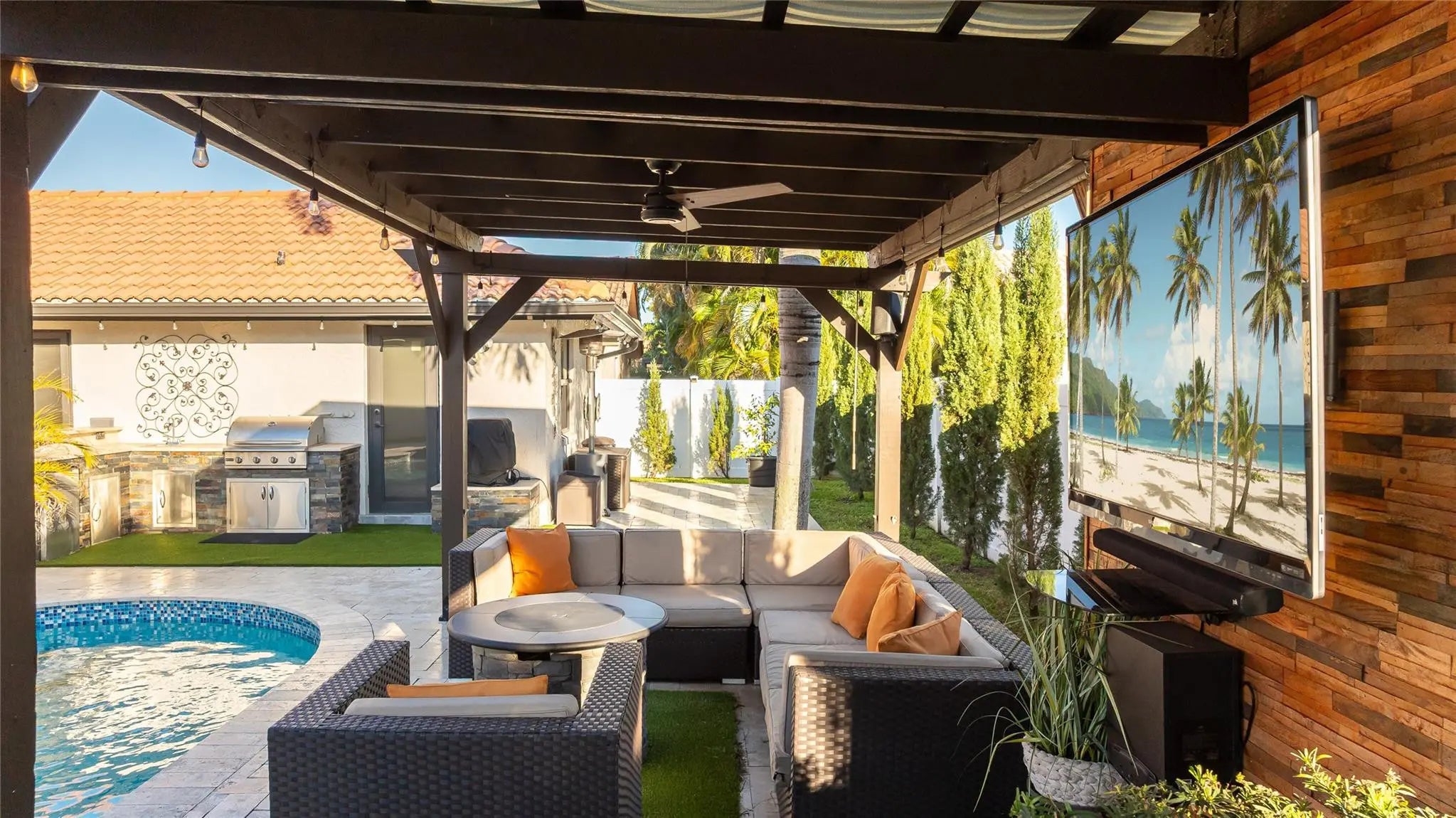 Gorgeous 4br/2.5ba/2cg home in the heart of Coral Springs. Meticulously remodeled 3 years ago. Spectacular custom kitchen featuring dual islands with exquisite butcher block & exotic granite countertops. New cabinets, top-of-the-line LG appliances, incl microwave/wall oven combo & top-tier refrigerator. New vinyl floors gleam beneath the freshly painted interior. Designer wall features in the living room & kitchen areas add a touch of elegance. New electrical panels & equipped for a 50-amp generator. The backyard is an oasis, with a refreshing saltwater pool, new hot tub, & new 14x26 pergola with roll-down screens on all sides. Enhancing your outdoor experience is a summer kitchen with a gas grill, perfect for entertaining. Impact windows & doors, new rain gutters, freshly painted, more!