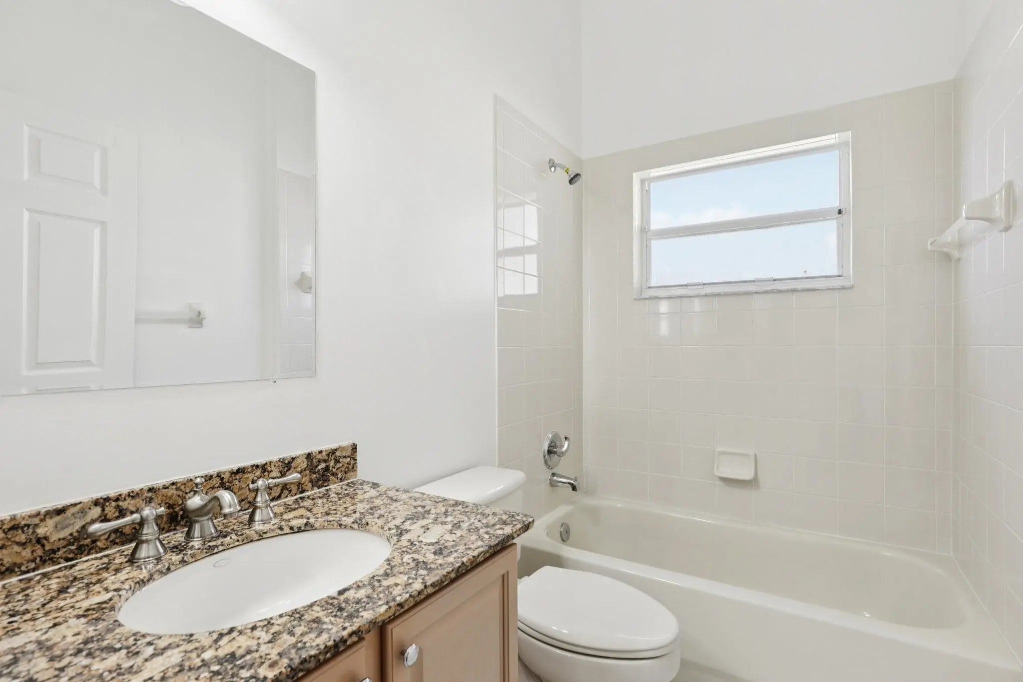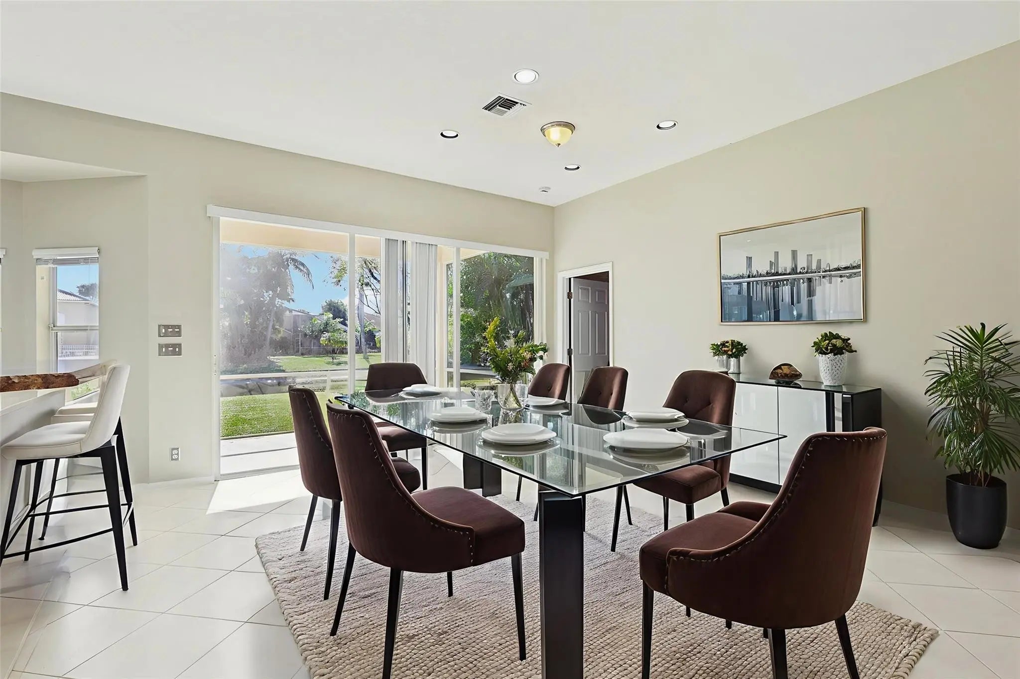 One or more photos has been virtually staged. Beautiful 1-story home featuring 3 bedrooms and 2 bathrooms with an inviting open floor plan. The kitchen offers a bar and accent lighting, flowing into a breakfast area with a charming bay window. The primary suite includes a double vanity with a separate tub and shower. Additional highlights include a laundry room with a utility sink, a screened back porch, and a convenient 2-car garage—perfect for comfortable everyday living.