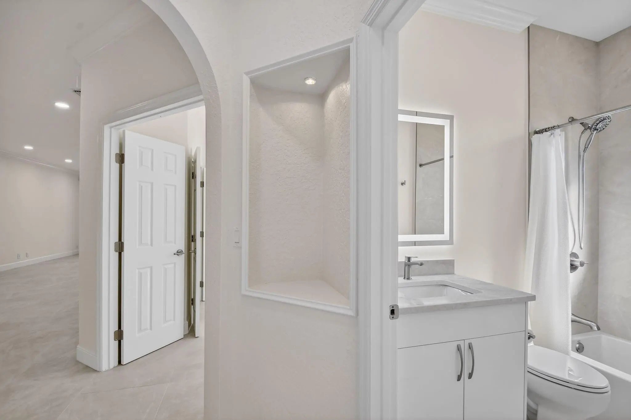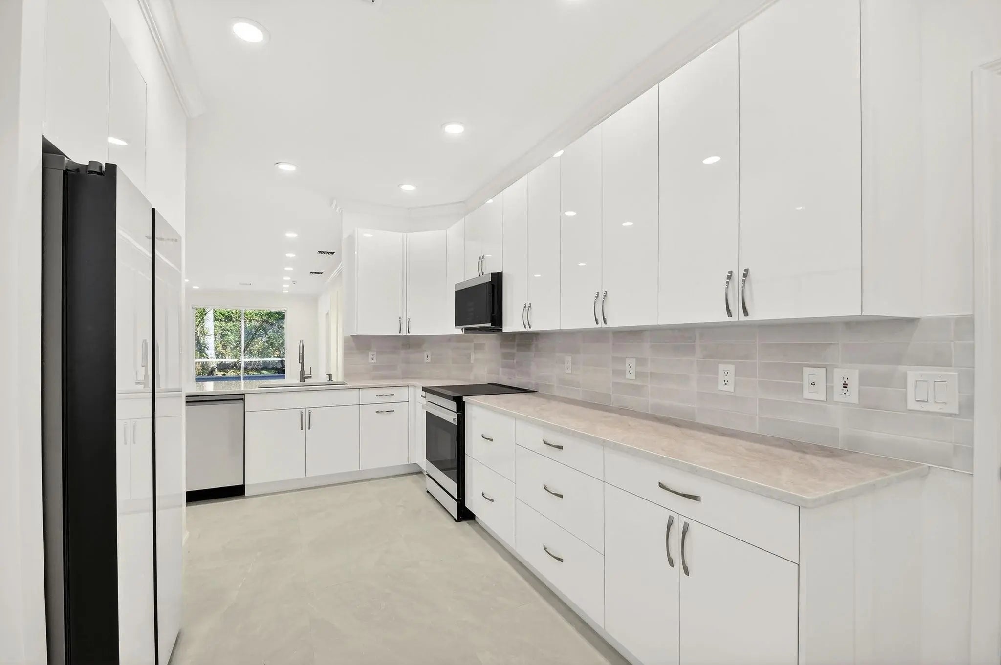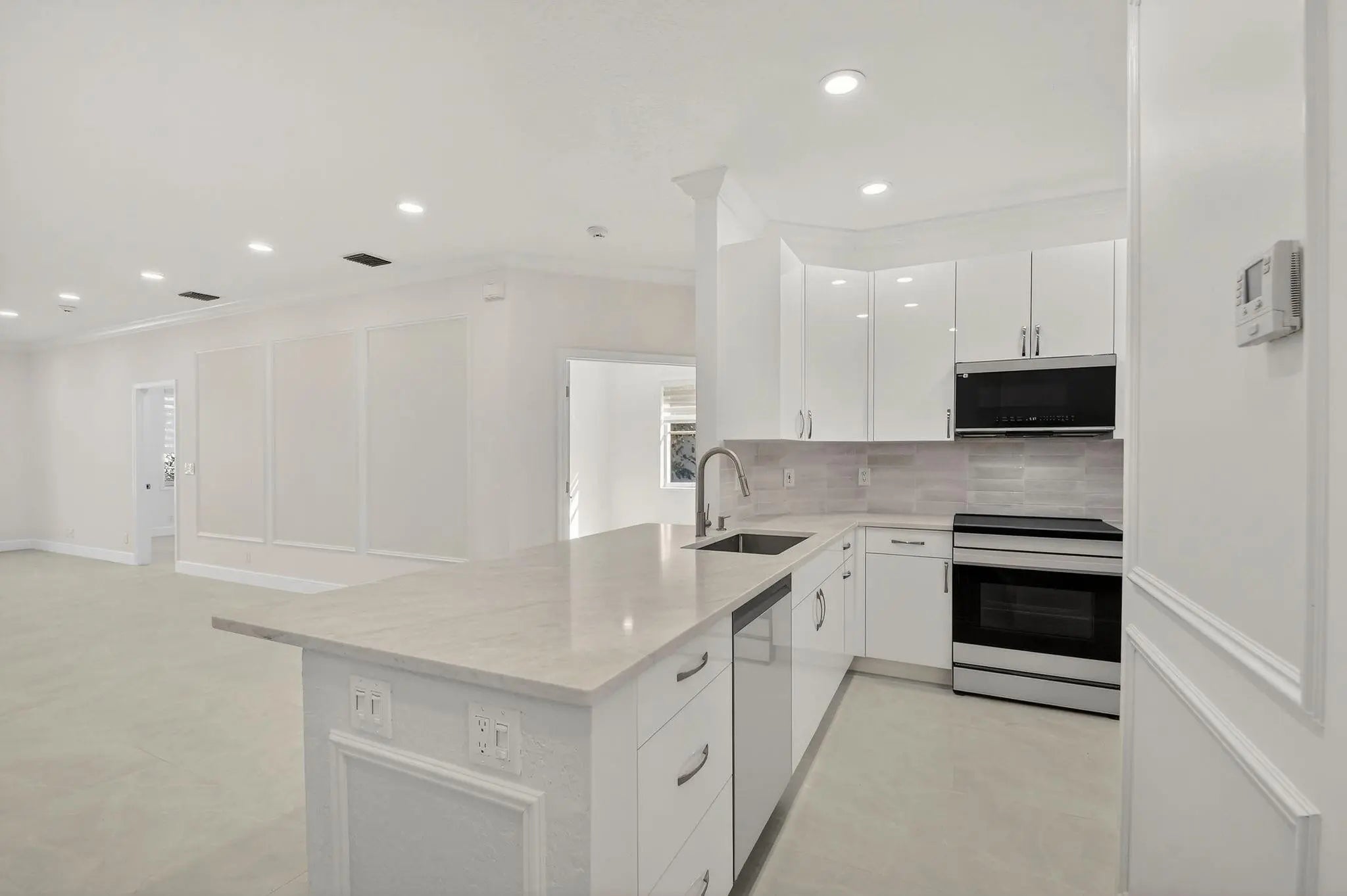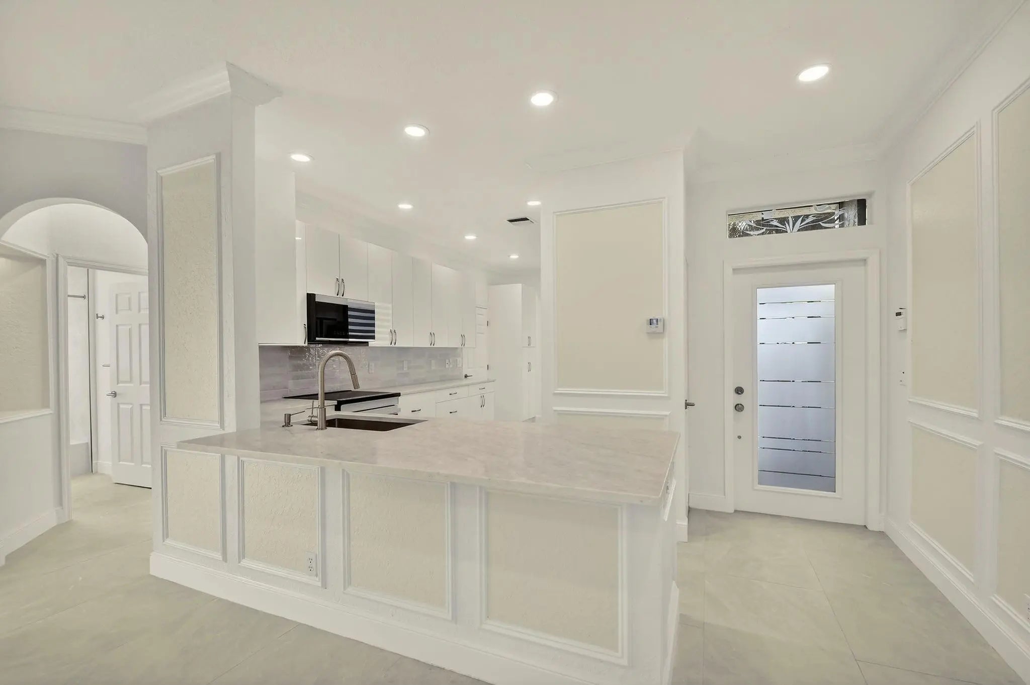 Stunning Fully Renovated Home (2026) in Majestic Isles – 3 Bed / 2 BathBeautifully and completely renovated in 2026, this light-filled 3-bedroom, 2-bath home is located in the highly desirable Majestic Isles 55+ gated community. The interior features elegant 24”x48” natural-tone porcelain tile throughout, high ceilings with crown molding, and designer picture molding in the living and dining areas. LED lighting with dimmers is installed in every room, enhancing both comfort and ambiance.The designer kitchen showcases 42-inch high-gloss white custom cabinetry with pull-out pantry drawers, quartz countertops with bar seating, and a full suite of high-end bespoke white glass Samsung appliances, including an induction cooktop. Premium designer hardware and fixtures complete the space. The spacious primary suite features a fully built-out walk-in closet with drawers and hamper, and a luxurious en-suite bathroom with double sinks, LED mirror, frameless glass shower, and linen closet. The second bathroom includes a modern low-profile tub and contemporary finishes. Additional upgrades and features include:• New roof and gutters (2026) with 7-year warranty • New water heater (2026) • Newer A/C system (August 2023) • Whole-house water filtration system • All new zebra blinds • Hurricane shutters and tinted windows throughout • Fresh interior paint in modern light tones • Two-car garage with extensive storage shelving • Large screened lanai offering complete privacy • Situated on a spacious lot with abundant natural light Majestic Isles is a gated 55+ community offering exceptional amenities including a resort-style pool, clubhouse, tennis courts, pickleball courts, fitness center, billiards room, card room, and more. The low HOA includes landscaping, cable TV, high-speed internet, security alarm monitoring, and 24-hour manned gate security.Conveniently located near houses of worship, shopping, dining, and major highways.