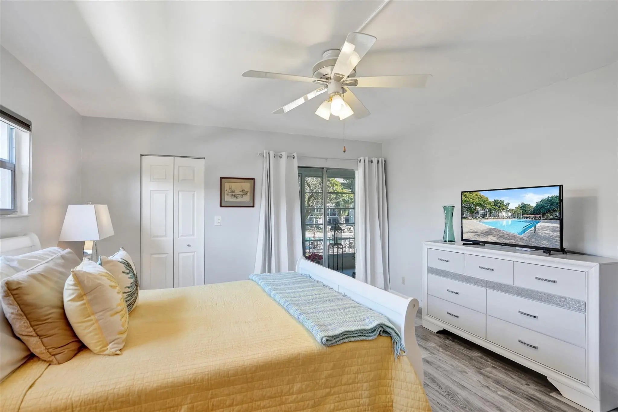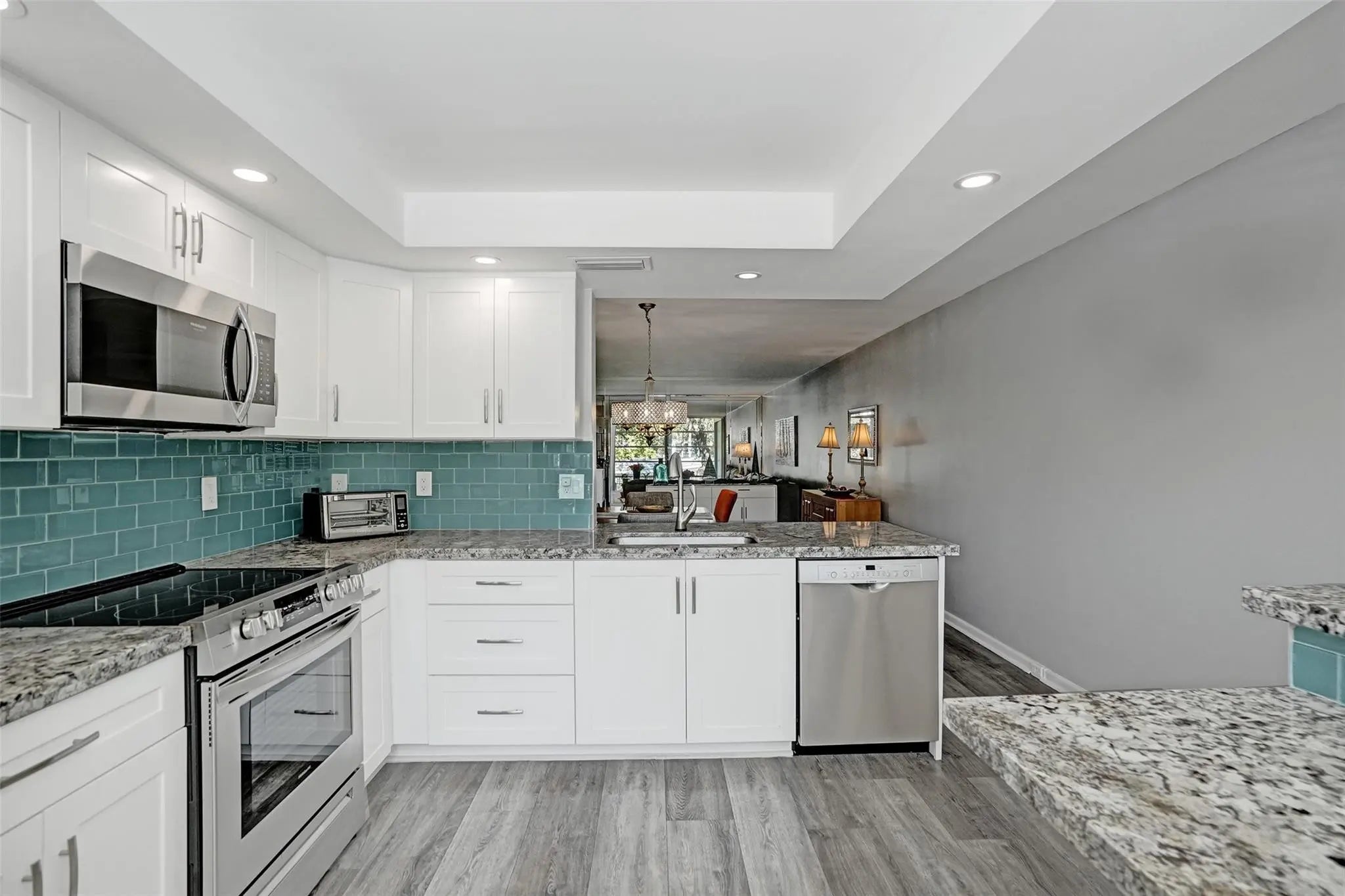 Renovated CORNER 2 bed/2 bath 1291 sq. ft residence located in the most desired Granada Village of Wynmoor -Gated Active Adult Community. Light filled condo offers updated kitchen featuring stainless appliances, white shaker cabinets & granite countertops. Stylish luxury laminate flooring. Impact windows, recessed lighting, updated electrical panel and no popcorn ceilings. Lg. Lani w/views of the renovated Granada pool & patio deck. Offered fully furnished/ turnkey. Washer/dryer in condo with plenty of storage. Building is upto date with required inspections. Wynmoor offers a vibrant resort -style lifestyle with an impressive array of amenities... pickleball, golf, theatre, walking & bike paths, gym, on-site restaurant, transportation, billiards, clubs & year round live entertainment.