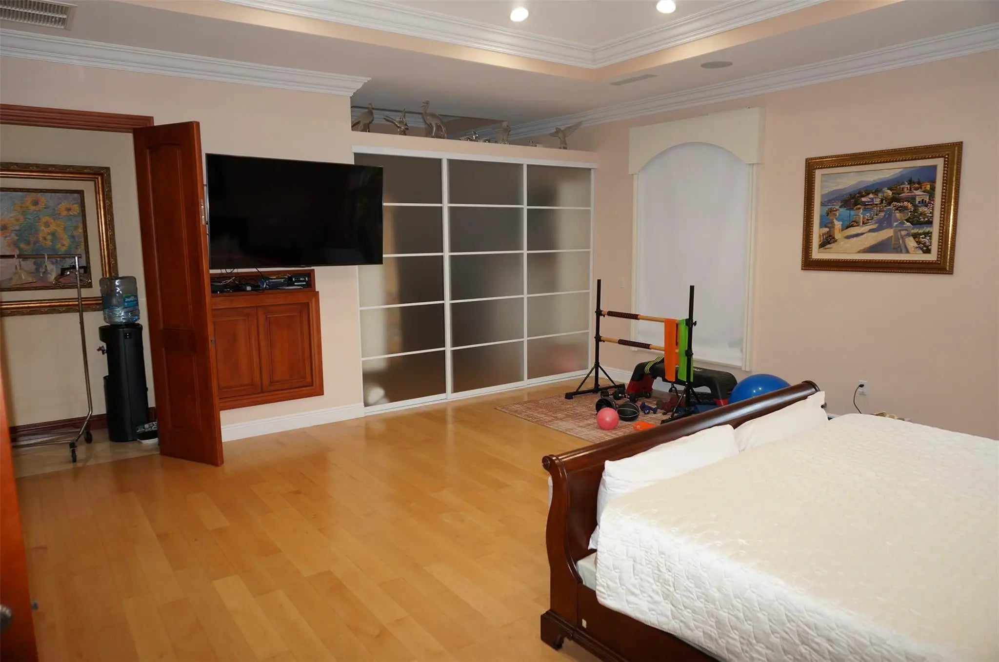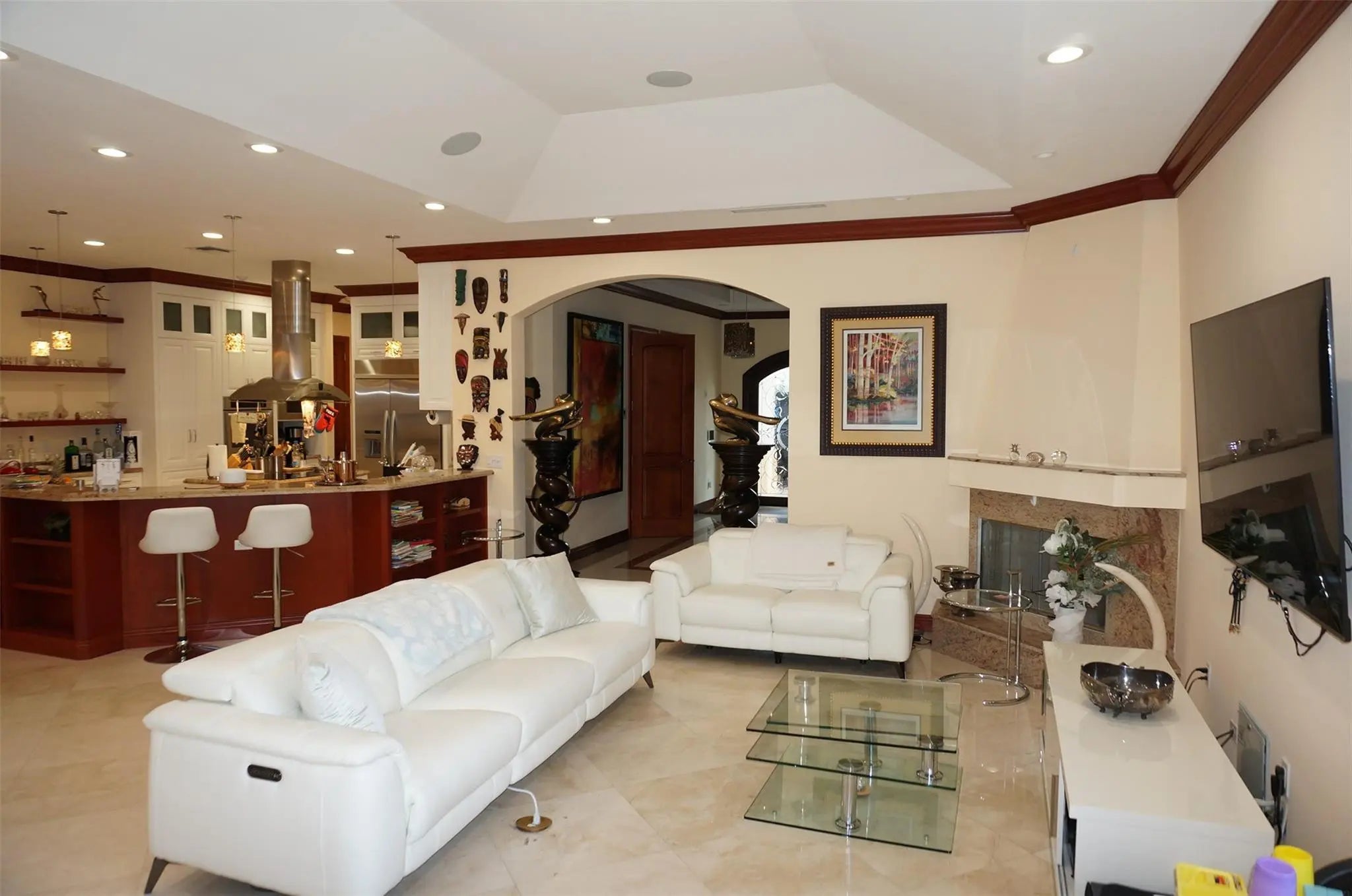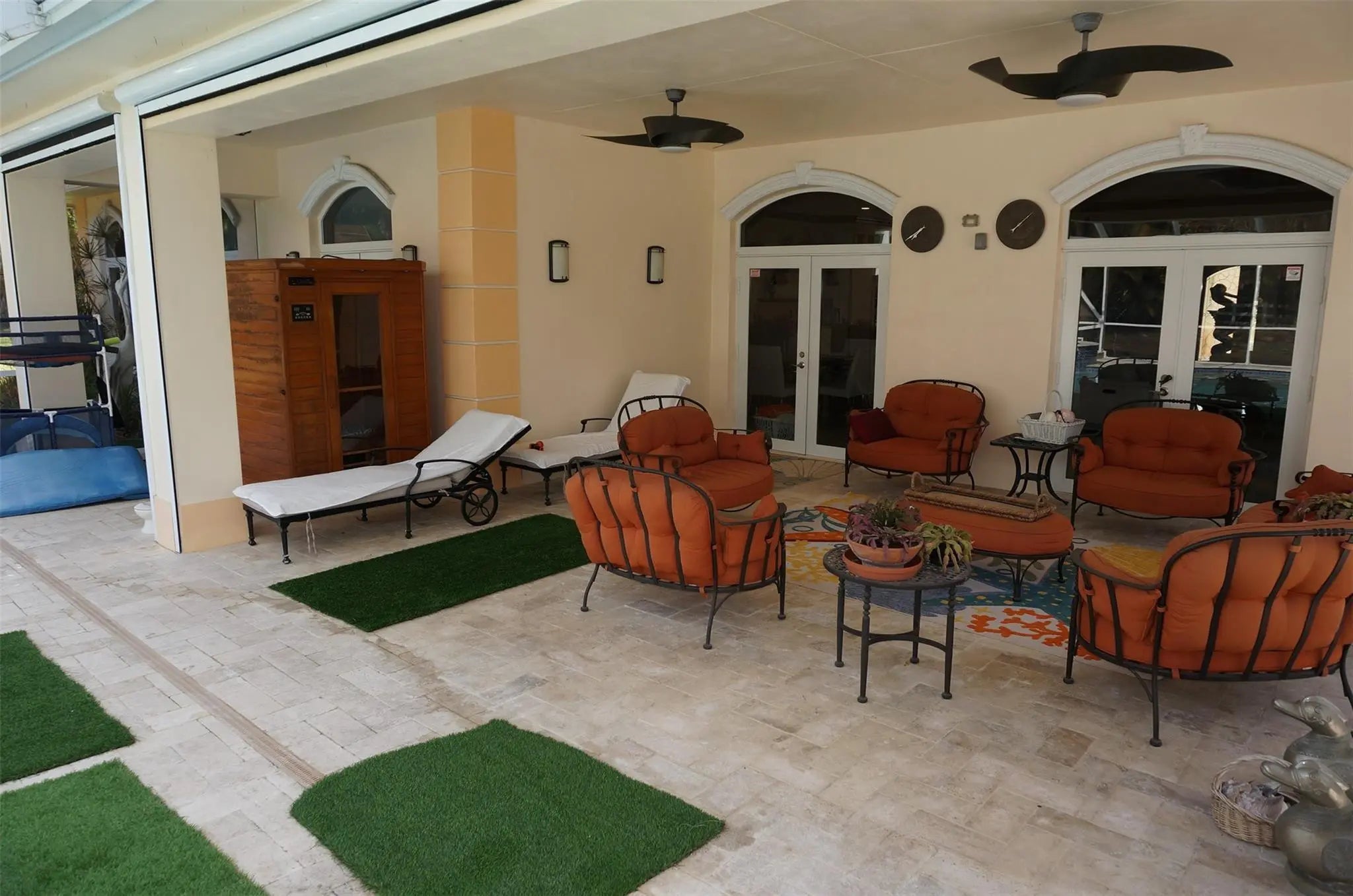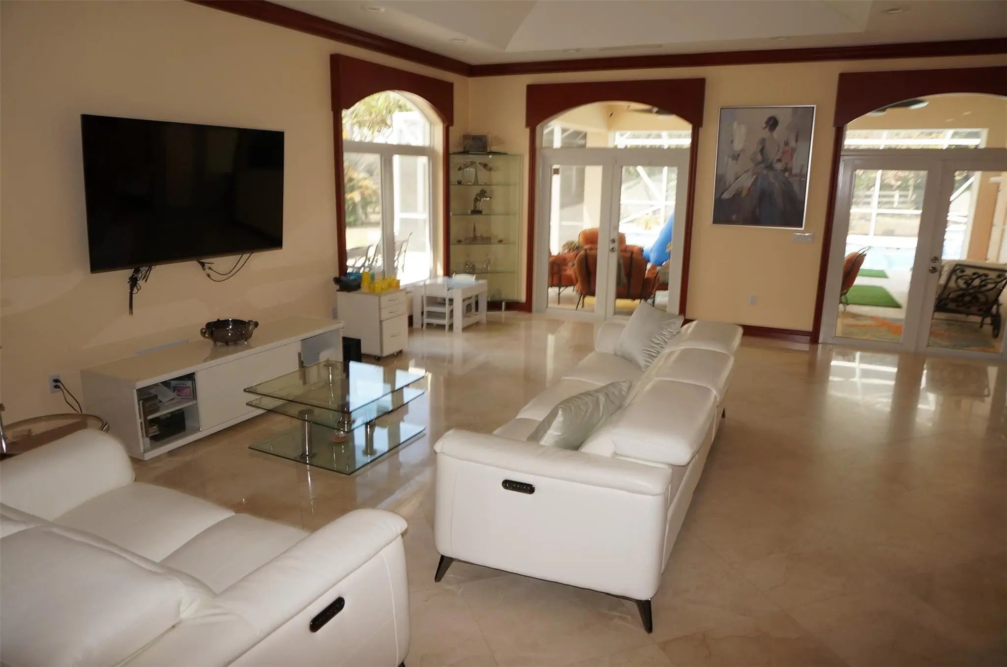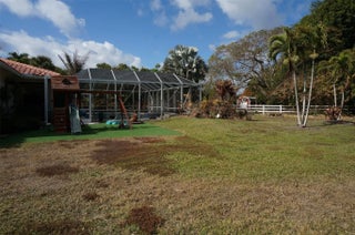 Luxury 3-suite estate on 2.04 acres with high-end finishes throughout. Features include an oversized master with two XL walk-in closets, office, 12 ft ceilings, marble floors, impact windows, motorized blackout blinds, and custom wooden impact doors. Gourmet kitchen with stainless KitchenAid appliances, farm sink, and granite counters. Outdoor oasis offers a 20x40 heated saltwater pool with spa and swim jet, infrared sauna, covered patio with motorized screens. Home includes paid-off solar, Tesla charger, 2 newer A/Cs, 2 tankless heaters, 2 wells with Kinetico system, barn with 2 stalls, fenced motorized gate, circular driveway, and avocado tree. Welcome to this exceptional luxury estate situated on 2.04 acres in a highly desirable corner lot location. Designed with elegance, privacy, and comfort in mind, this property offers an impressive blend of high-end finishes and modern conveniences. Featuring 3 spacious suites, an oversized master bedroom with two extra-large walk-in closets, and a private office, this home is perfect for those seeking space and sophistication.Step inside through the custom-made wooden impact front door and immediately appreciate the high 12 ft ceilings, marble floors, Swarovski chandeliers, and custom high wooden doors throughout. The home is equipped with impact windows, motorized blackout blinds, and a wooden fireplace, adding both style and functionality.The gourmet kitchen features stainless steel KitchenAid appliances, a farm-style sink, granite countertops, and ample space for cooking and entertaining. Two tankless water heaters, two newer A/C units, a paid-off solar system, and a Tesla charger add tremendous energy efficiency and peace of mind.Enjoy resort-style outdoor living with a massive 20x40 saltwater heated pool, complete with jets for lap swimming and a spa. Relax in the infrared sauna, or unwind on the covered patio with motorized screens. The fully fenced property includes a motorized front gate with keypad, a second rear gate for barn access, and a circular driveway with a covered entrance.Ideal for equestrian or hobby use, the property includes a barn with two horse stalls, additional storage, and space for a manure bin. The home offers two wells—one dedicated to full-property irrigation and the other supplying the residence with a Kinetico water softener system, plus an additional under-sink softener for kitchen use. An avocado tree adds a touch of nature and homestead charm.Additional features include:• Built-in overhead garage shelving• Custom craftsmanship throughout• Spacious grounds with endless potentialA true rare find—this estate combines luxury, privacy, and practicality in one spectacular package. Don’t miss this opportunity to own a masterpiece.