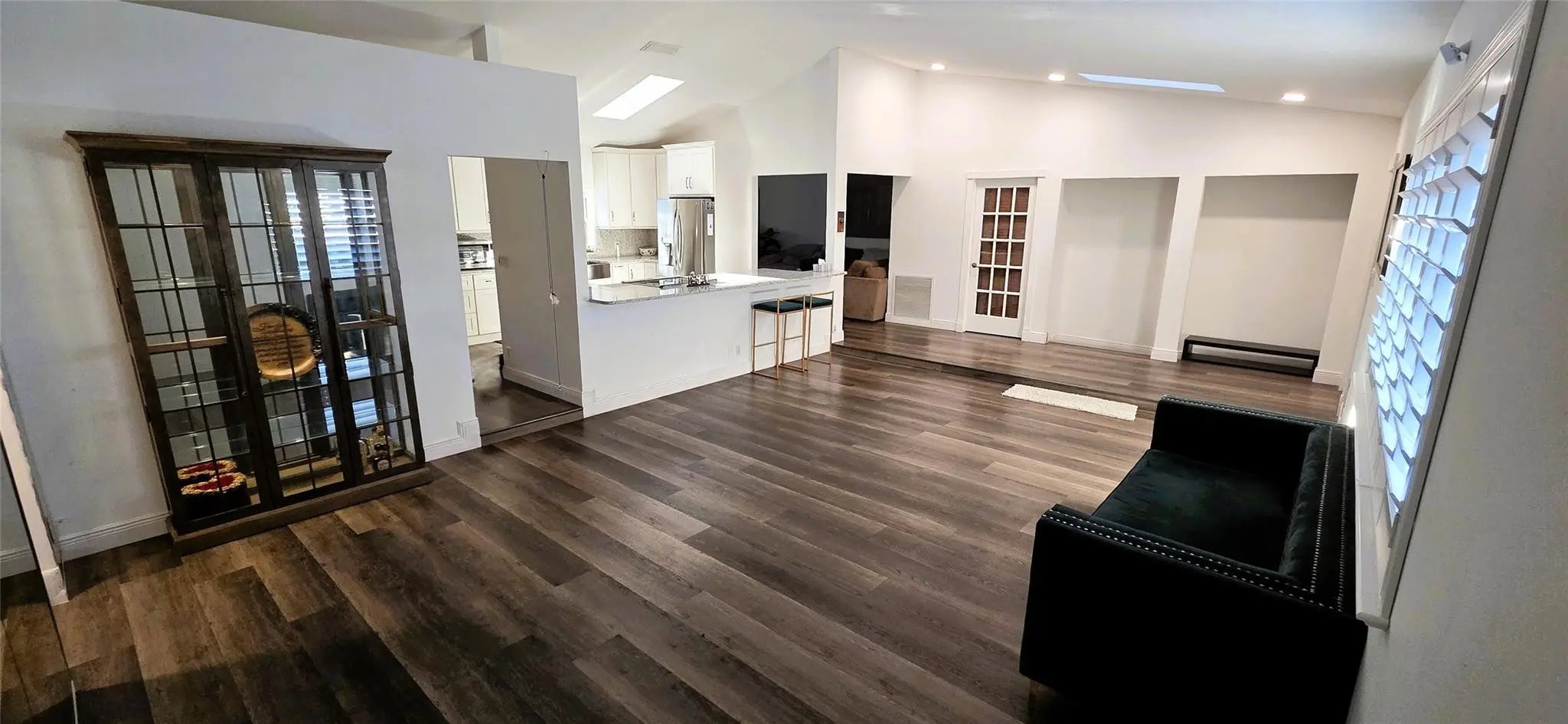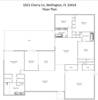 Stunning open-concept 4BR/3BA residence showcasing a generous 460-sq-ft home office/gym or creative studio. The elegant three-way split floor plan offers exceptional privacy, including two refined master suites with private baths. A beautifully updated kitchen features stainless steel appliances and expansive counter space. Impact glass windows enhance comfort and security, complemented by a reverse osmosis filtration system and two tankless water heaters for unlimited hot water. Step into a serene private backyard with a sparkling pool. NO HOA adds rare freedom and flexibility.