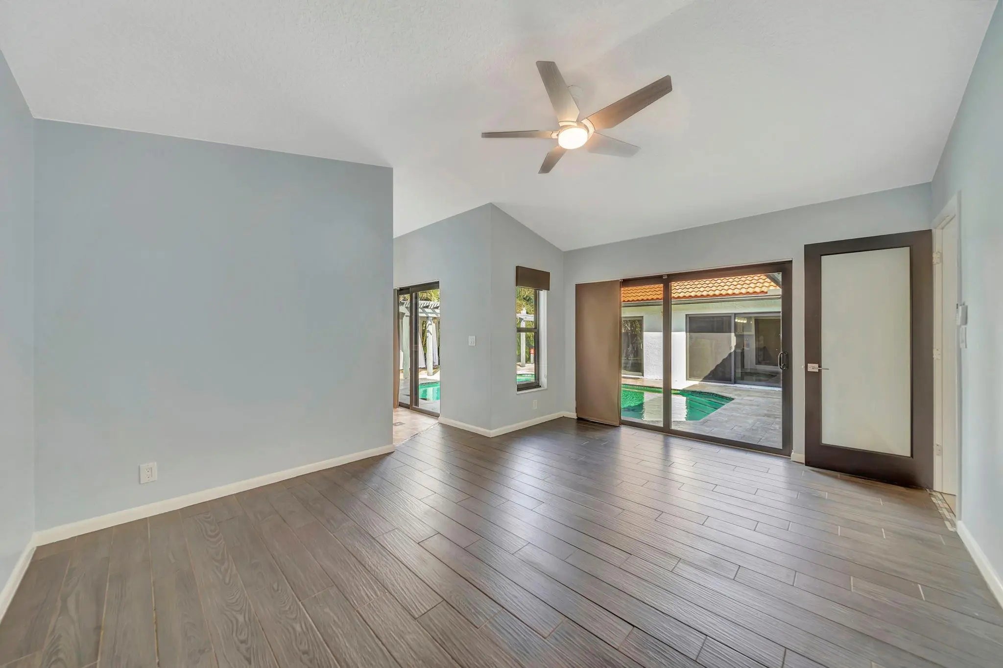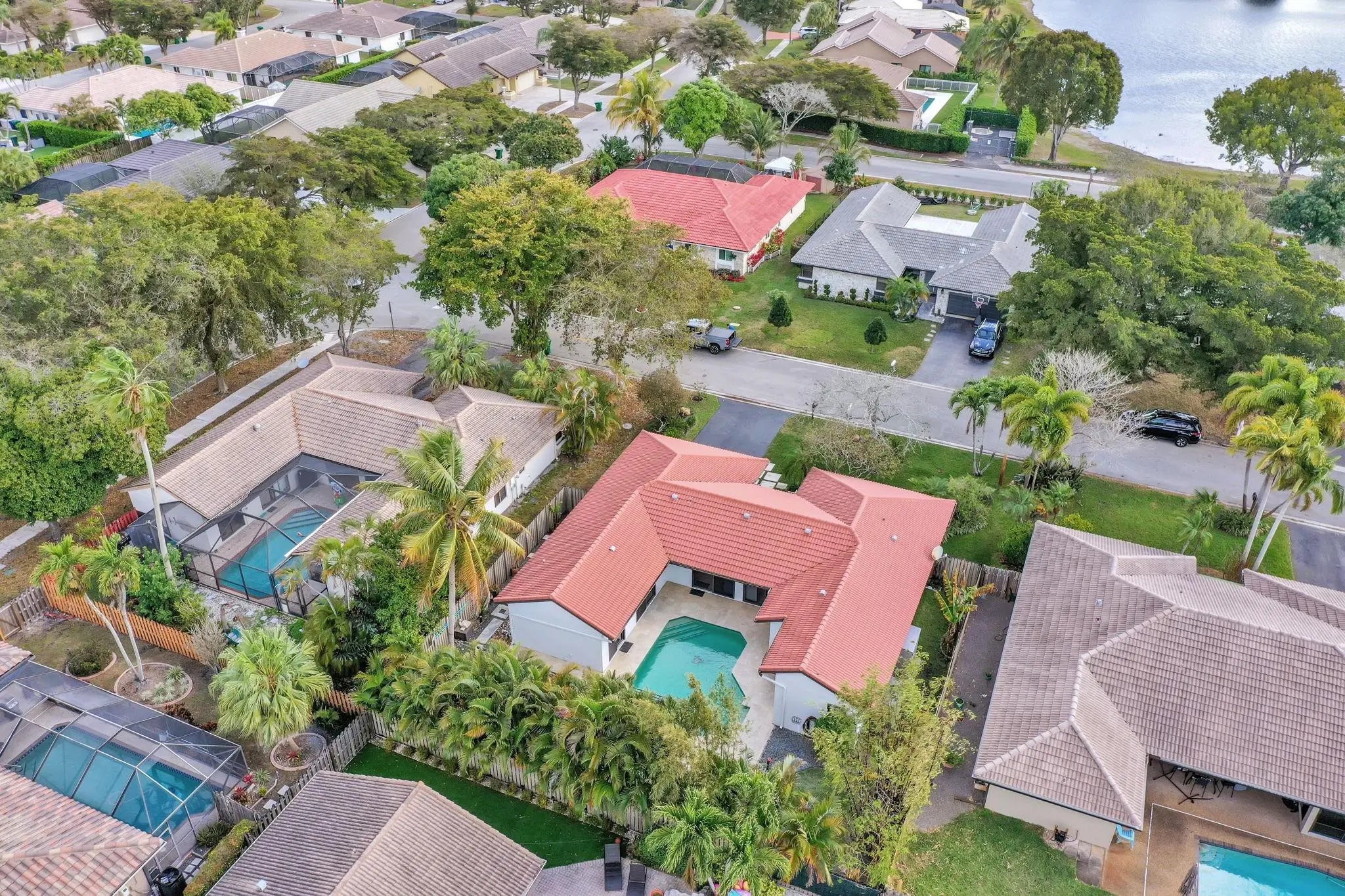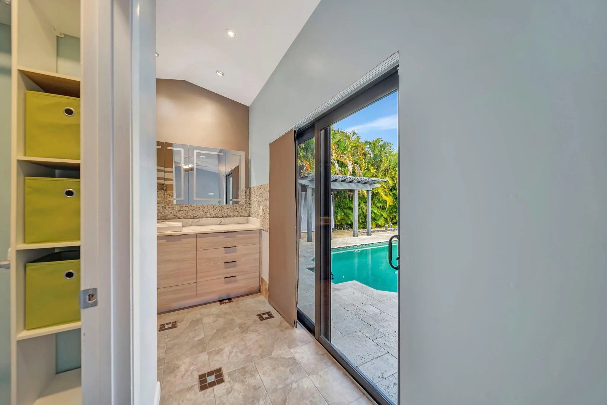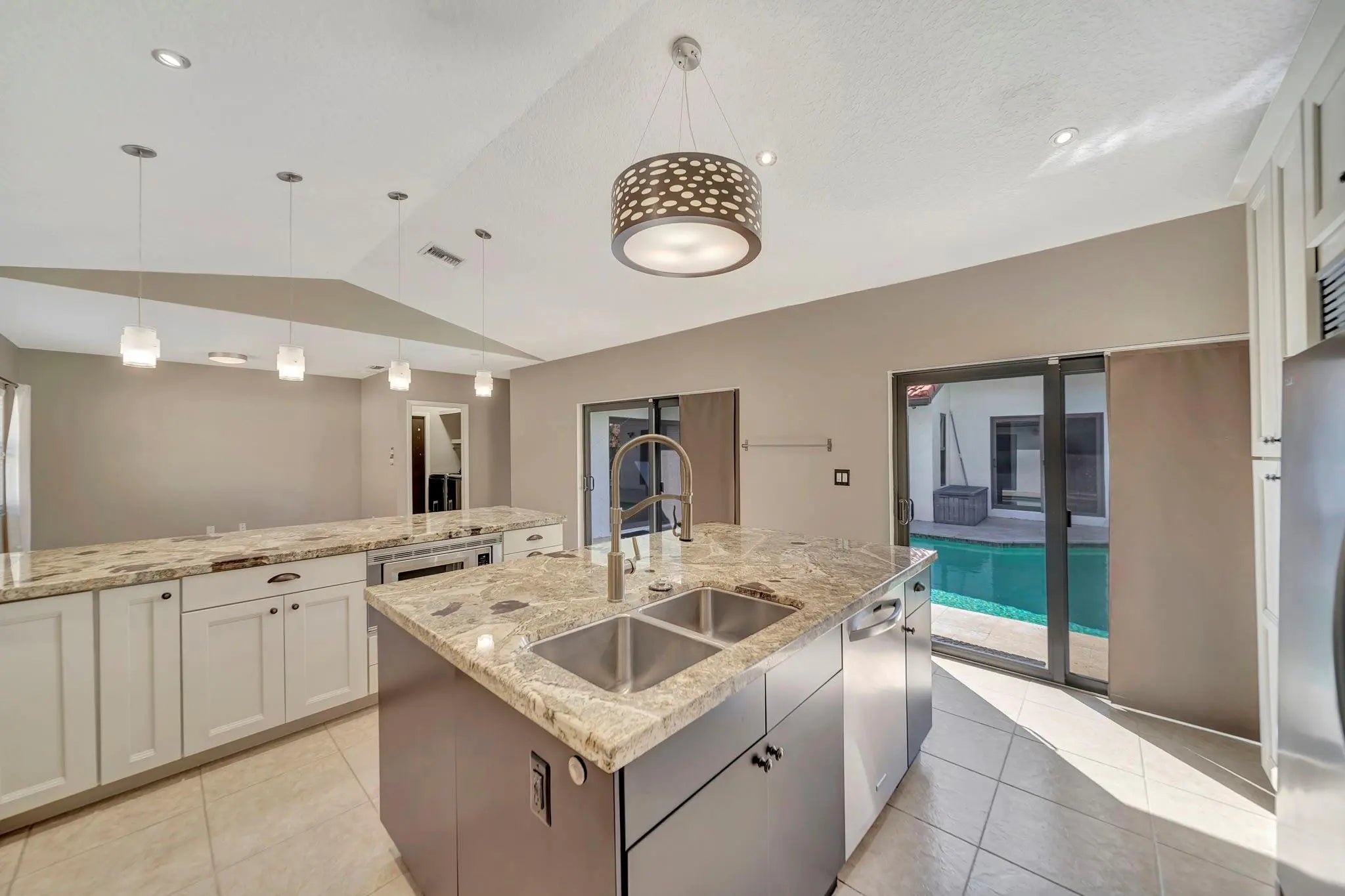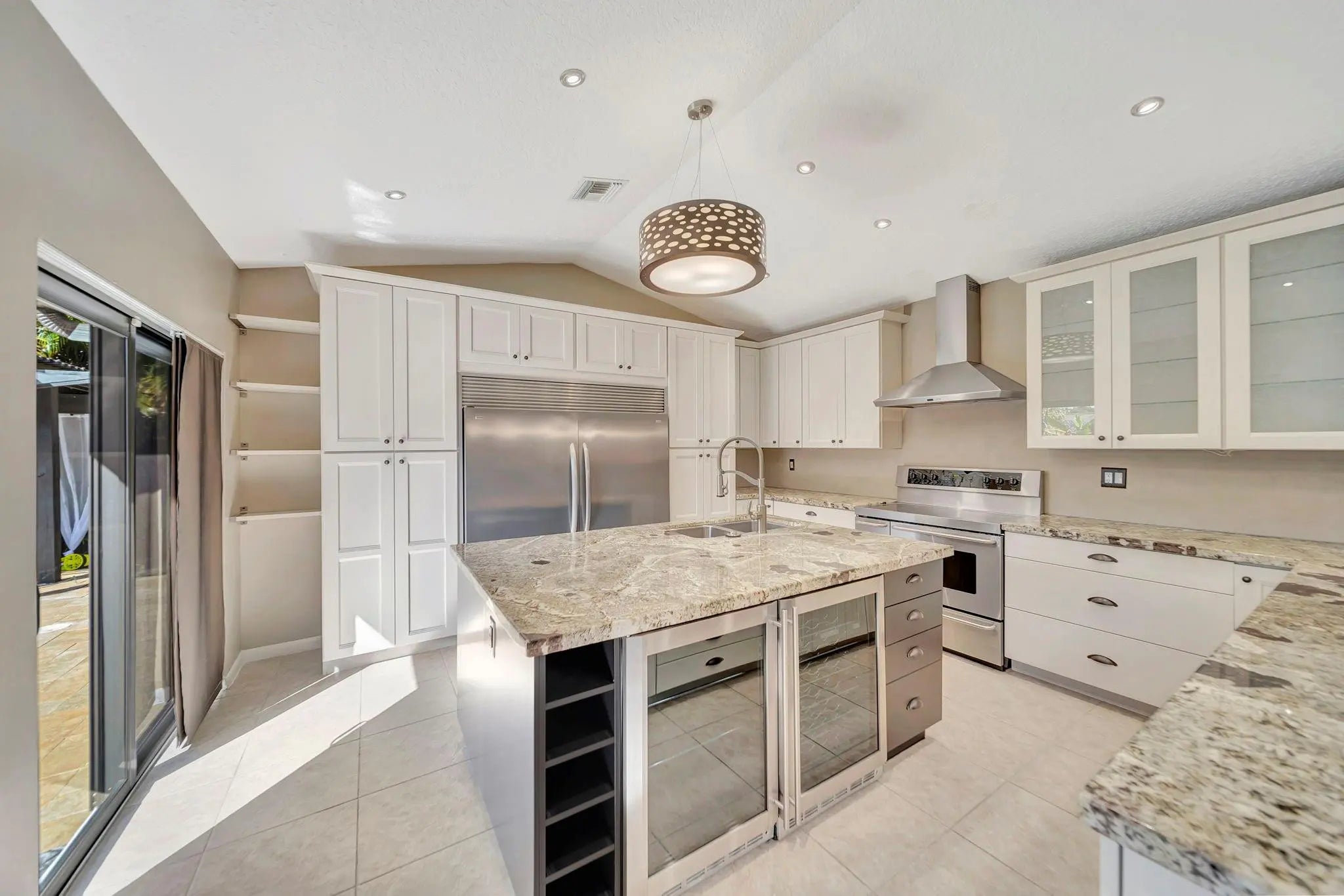 Beautiful 4/2 pool home on quiet cul-de-sac, offering perfect blend of style & functionality. Fully updated kitchen: open layout w/large center island, granite countertops, SS appliances, oversized double-door refrigerator, sleek oven w/vent hood & ample cabinetry. Tile throughout living area & new wood-like tile in bedrooms. Custom wet bar w/led lighting & ice fridge. Spa-inspired primary suite: stylish backsplash, designer vanity, led mirrors & seamless glass walk-in shower. Second bath updated: modern tile flooring, shower/tub combo & double-sink vanity. Travertine tile paved patio, resurfaced pool, stylish pergola & fruit trees creating outdoor retreat. Fully hurricane protected! Modern upgrades, thoughtful design & meticulous care make this home turnkey ready. Newer pool heater!