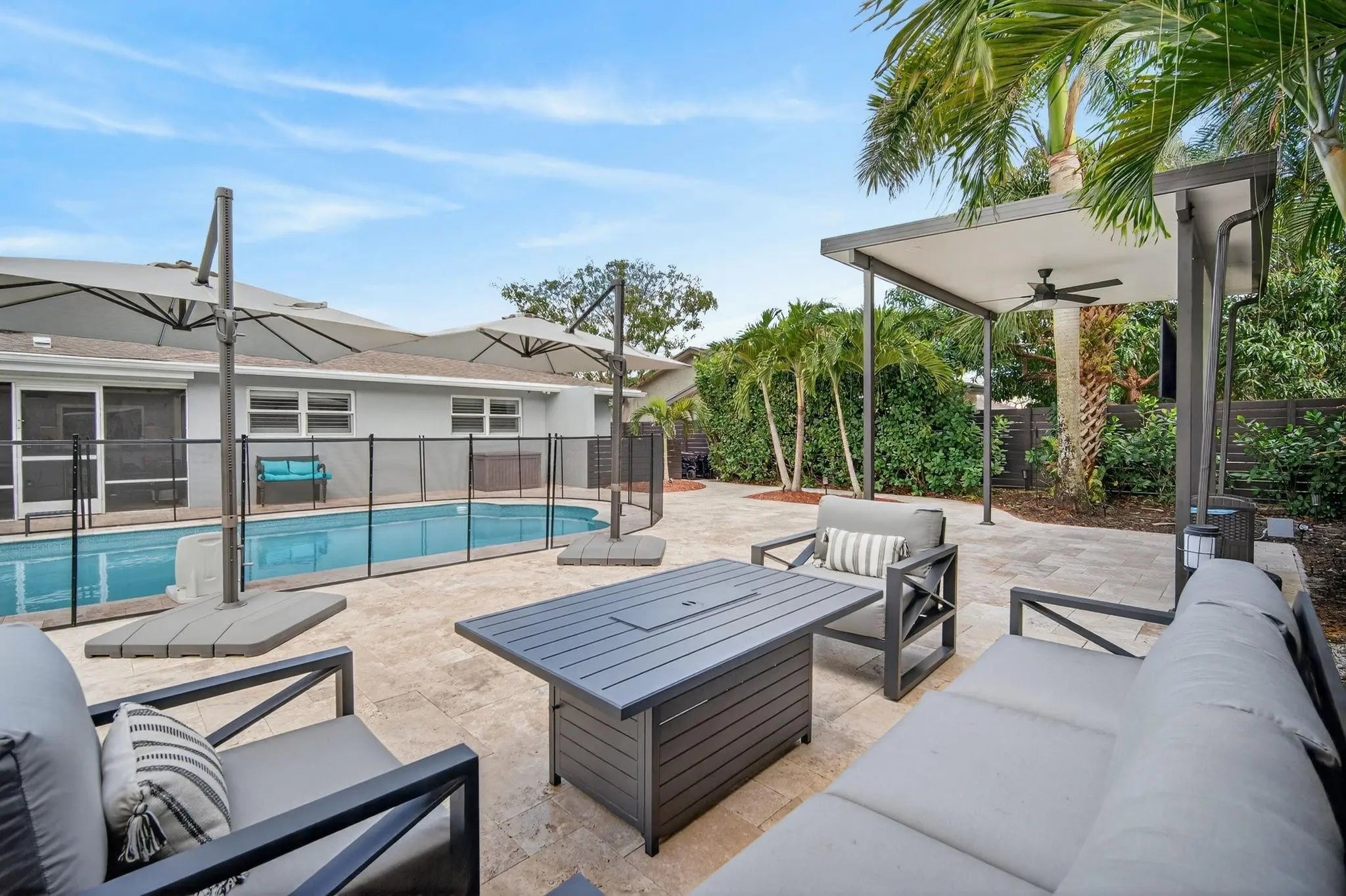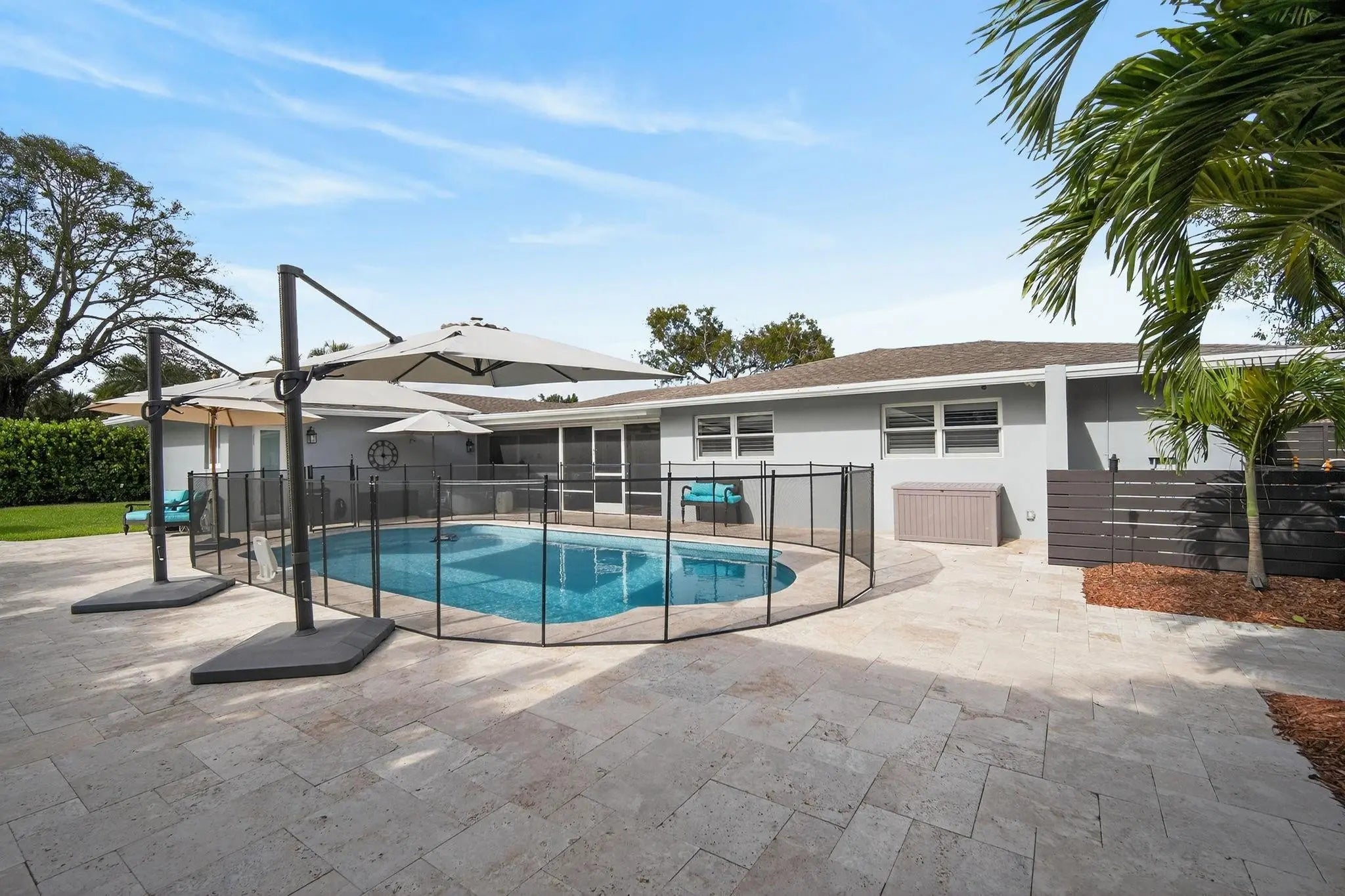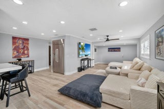 Meticulously remodeled 3 bedroom 3 bath home with 2 flex spaces features smart home integration controlling lights climate security appliances & more. The chef’s kitchen with custom cabinetry elevated Quartz counters premium SS appliances Advantium cooking system & French-door oven designed for effortless entertaining. The primary offers a spa inspired suite w/jetted soaking tub & separate rain shower all bathrooms showcase luxury fixtures lighted mirrors & silent exhaust systems. The private resort style backyard with heated salt pool expanded travertine patio lighted pergola separate lounging areas and additional green space for your pleasure. Impact windows & doors newer roof water filtration system 2 zone AC. Large Lot No HOA A TRUE TURNKEY OPPORTUNITY not to be missed...