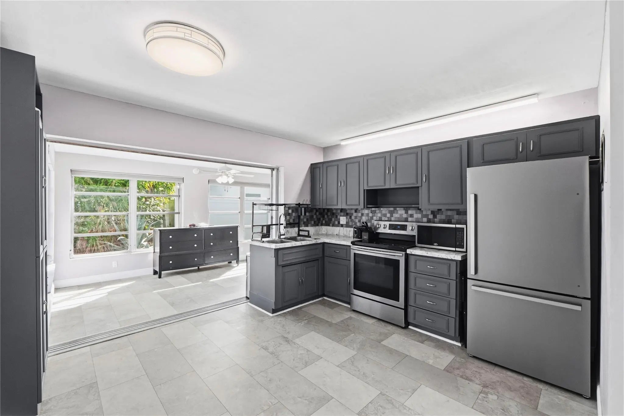 More Photos Coming Soon! Located in the All-Ages community of Tamarac Lakes, this well-maintained 2 bed, 1 bath single-family home offers practical updates and future flexibility, including the ability to add a second bathroom. Interior features include tile flooring, carpet in bedrooms, large family room, living room, and a primary bedroom w/ a walk-in closet. Remodeled eat-in kitchen includes new refrigerator. Separate laundry room w/ full-sized washer & dryer plus additional storage. The covered screened porch overlooks the private backyard, ideal for relaxing. Additional improvements include a NEW Roof only 3 years old and a NEW 2025 A/C. Accordion shutters provide storm protection and an extended driveway allows for multiple vehicles. Close to highways, dining & shopping!