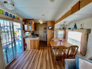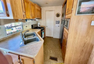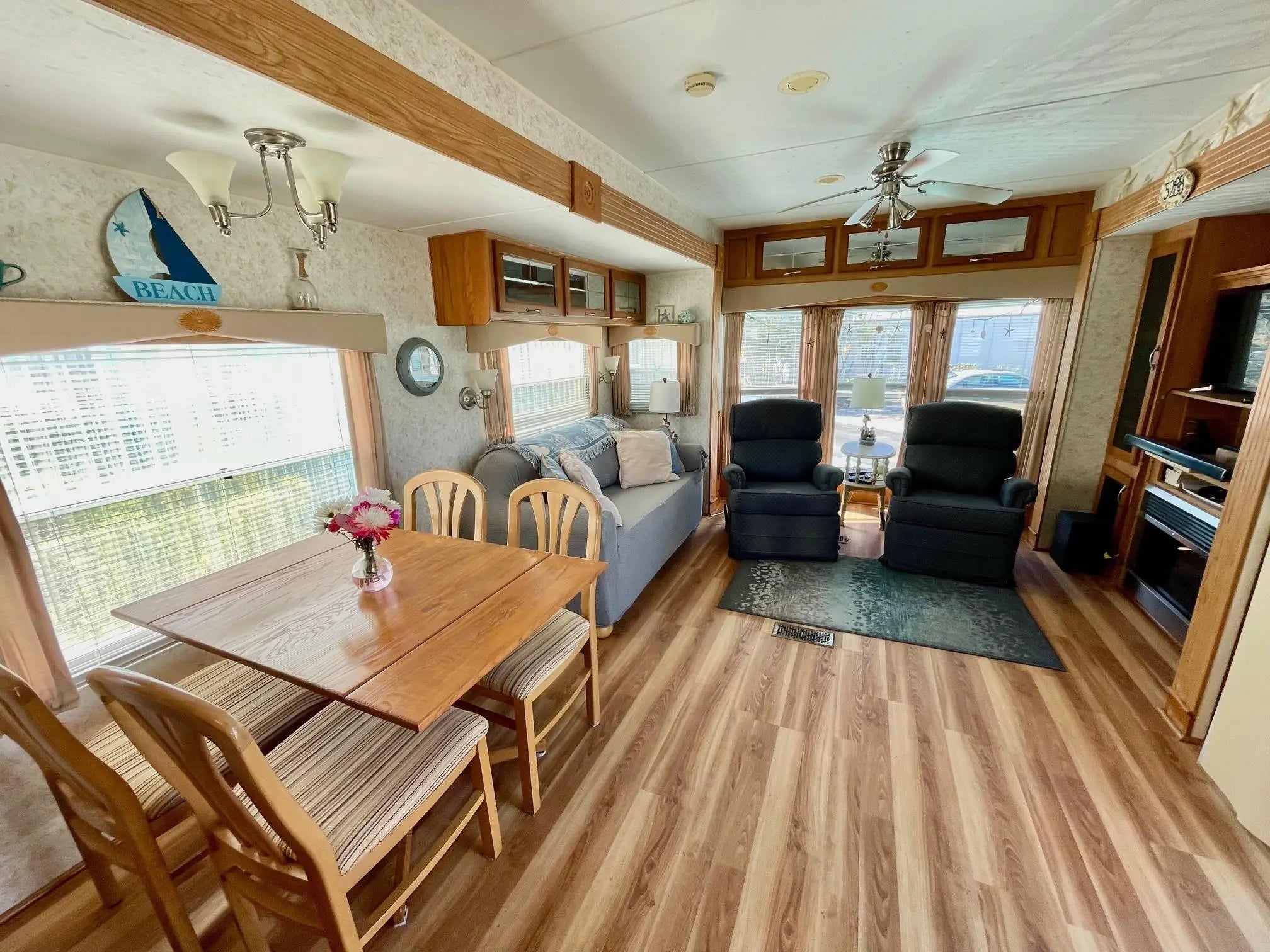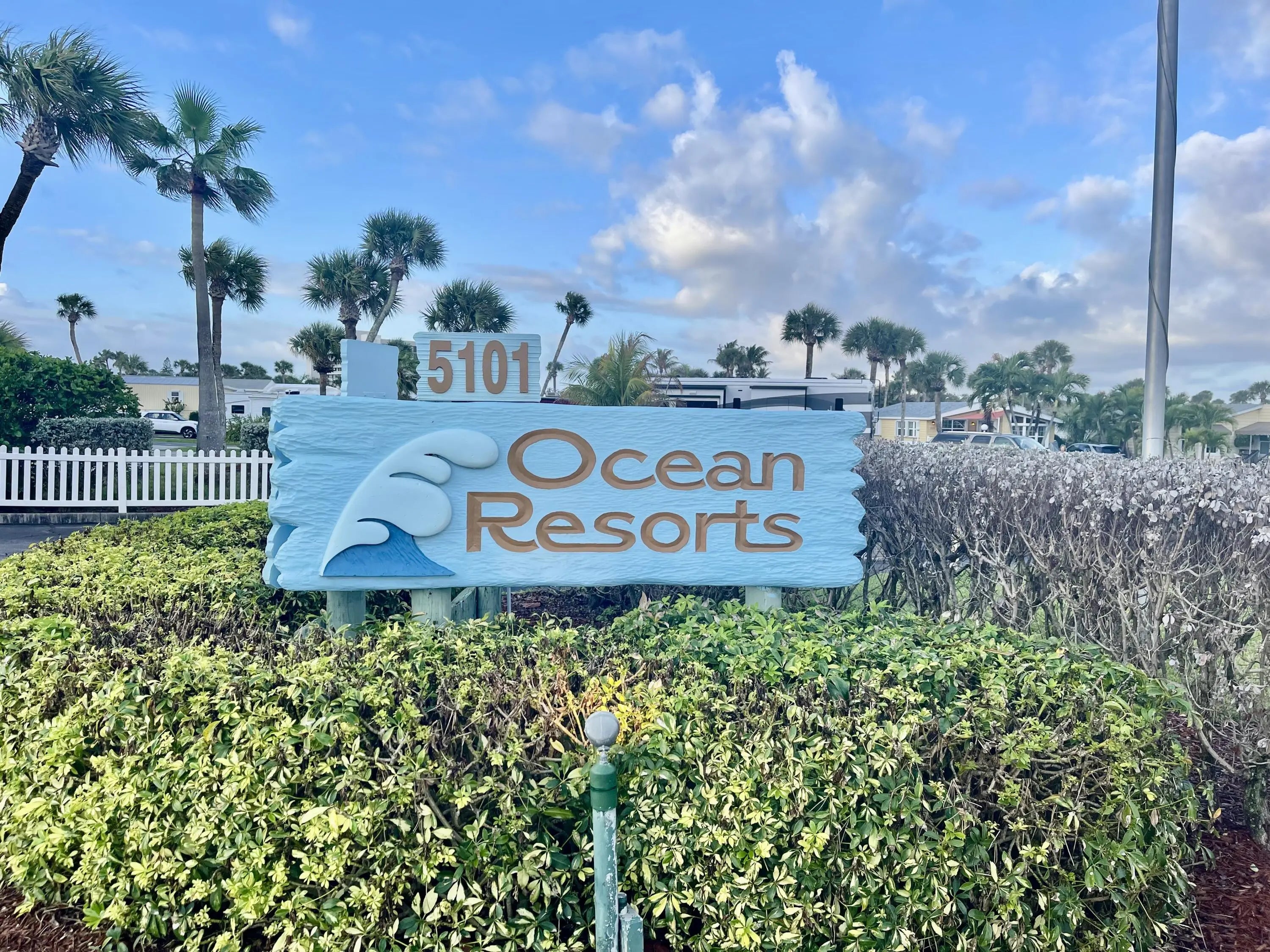 Coastal living under $200K offers sunshine, comfort, and exceptional value. This charming home features upgraded flooring, newer appliances, central A/C, and an extended paver driveway with room for a boat or golf cart, plus shed and under-home storage. Located in a gated Co-Op community where you own a share of the park, quarterly fees of approx. $1,300 include electric, water, and trash. Enjoy a private beach, marina with free boat slips, heated pool, tennis, pickleball, and bocce. Ocean Resorts provides private ocean access and Intracoastal marina with no bridge access to Ft. Pierce Inlet. Flexible options to keep the existing home, remove and park your own RV or build a new home. Ideal for full-time, seasonal, or rental use.