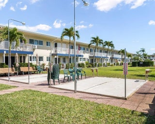 Renovated, well-kept 1st-floor unit in all- age community of Sunshine Villas, Dania Beach. Ceramic tile throughout, built-in cabinetry, and a seamless open concept layout. Spacious bedroom and living area with a pristine, charming bathroom. Enjoy courtyard views and front-row access to shuffleboard in a bright, airy space perfect for contemporary living within a welcoming community. A serene retreat in a well-maintained community. Come see this unit, and make it your very own.