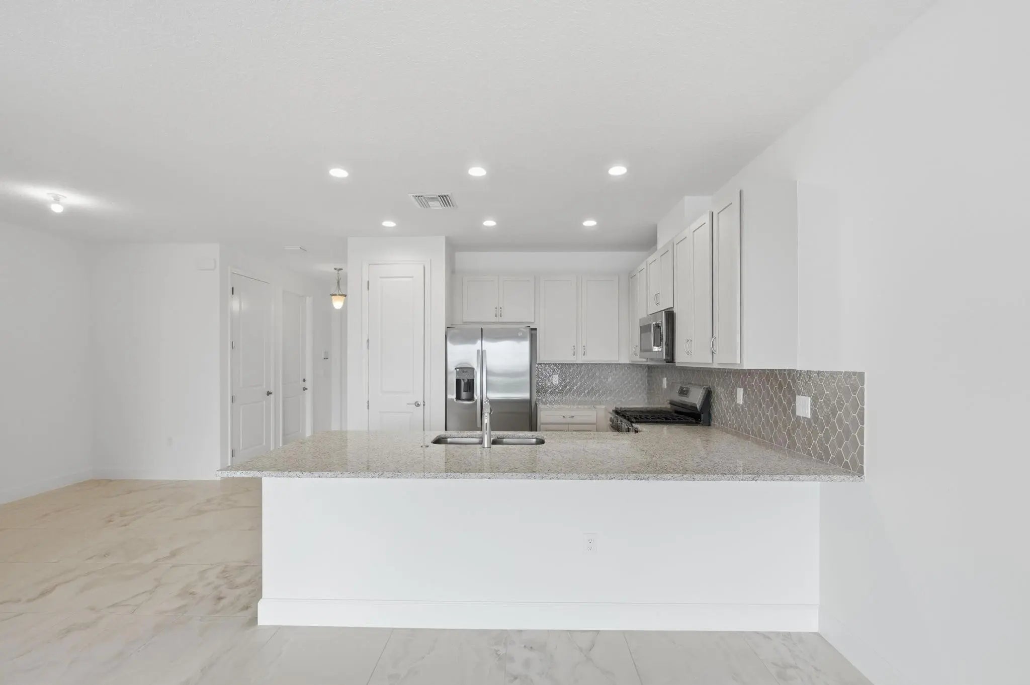 Experience luxury in this brand-new Areca model on a premium waterfront lot in Valencia Parc at Riverland. This never-lived-in 2BR/2BA villa features over $25k in designer upgrades, including sleek Onyx 24x24 matte rectified tile throughout—no carpet! The gourmet kitchen boasts granite countertops, soft-close cabinetry, GE gas appliances, and a Geoscape Diamond backsplash. Relax on your screened patio with slate pavers and serene southern-exposure water views. Built for peace of mind, the home includes full impact windows/doors and a concrete S-tile roof. Along with a 1-car garage and dedicated golf cart garage, rent includes access to Riverland’s 51k sqft Wellness Center, 50+ pickleball courts, and resort pools. This vibrant 55+ community happily welcomes residents as young as 40.