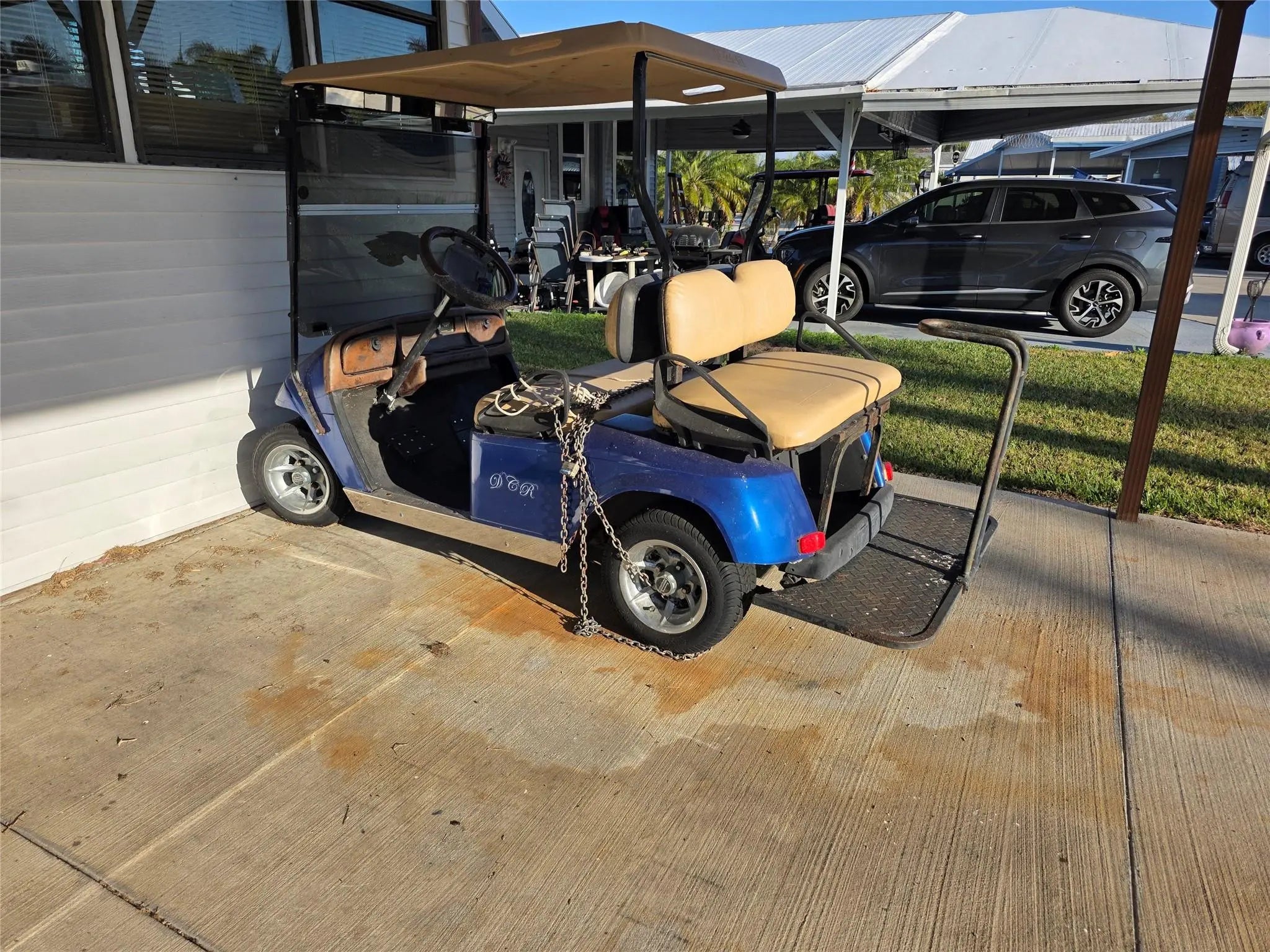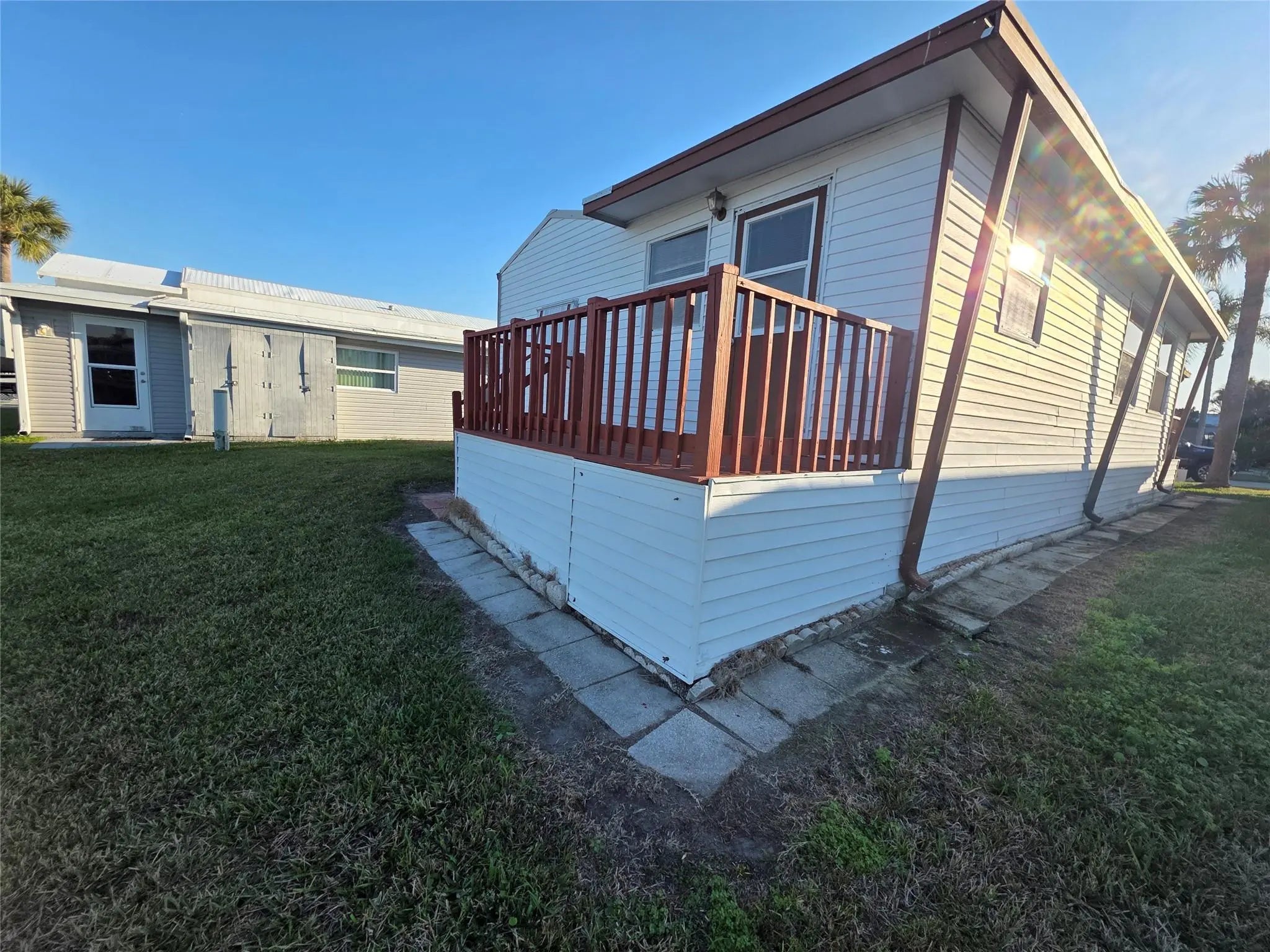 Best Buy on The Big Lake in Ancient Oaks, ideally Located on a 2 way street, is a Vinyl sided mobile home with Metal Roof, maintained AC, hurricane shutters, full attached carport & golf cart! Two (2) bedrooms, full size washer/dryer located inside the home, Fully furnished, Bright Open Fkoor plan with lots of living area, Home has been consciently maintained through the years,