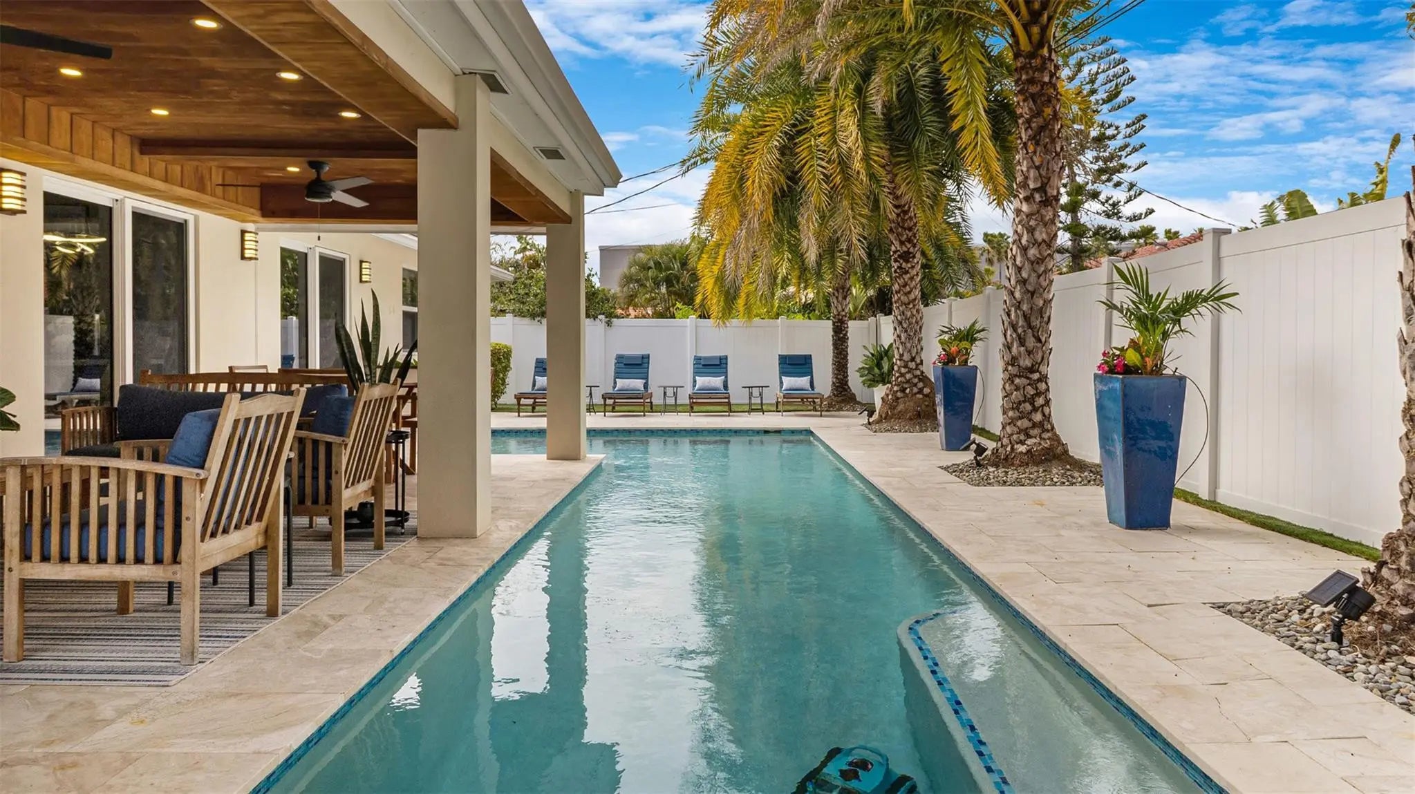 Experience the ultimate Florida lifestyle in this meticulously maintained home. Situated just minutes from the award winning Deerfield Beach, this home offers that "new construction feel" without the new construction price tag. Featuring soaring vaulted ceilings and an expansive open floor plan that lives much larger than its footprint. The beautifully updated kitchen serves as the centerpiece, with a massive island, solid wood cabinetry & premium stainless appliances. The Outdoor Oasis (Completed 2020) is a private paradise featuring a Heated Pool, travertine pavers, Pro-Grade Turf and a private putting green. Lush Landscaping lined with Canary Palms.Completely turn-key with LED lighting, updated bathrooms, tankless water heater and full impact windows and doors for total peace of mind.