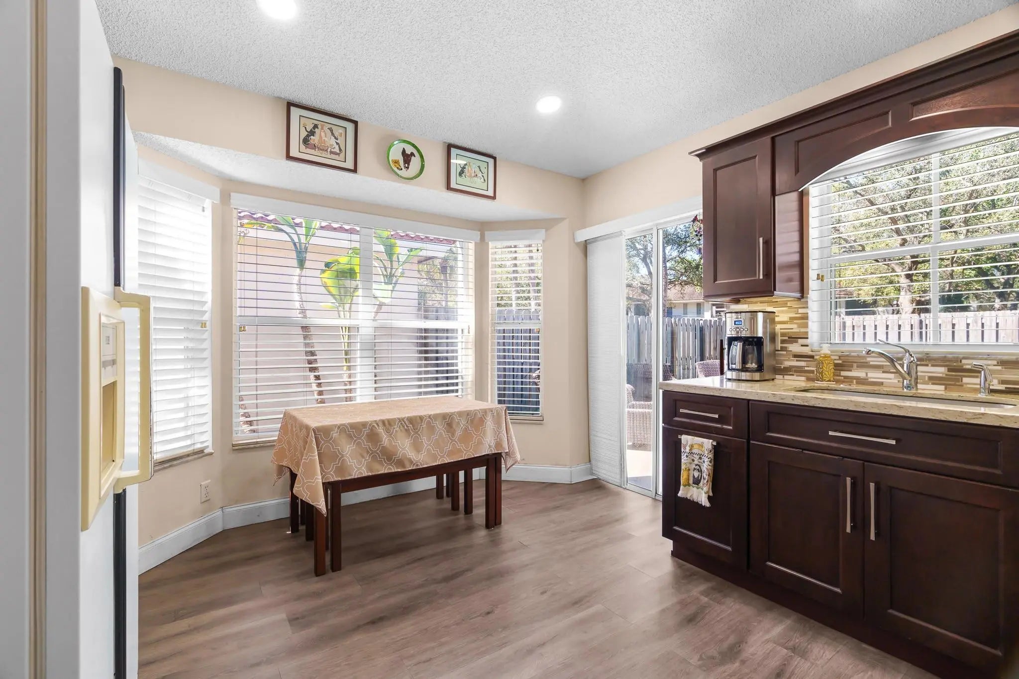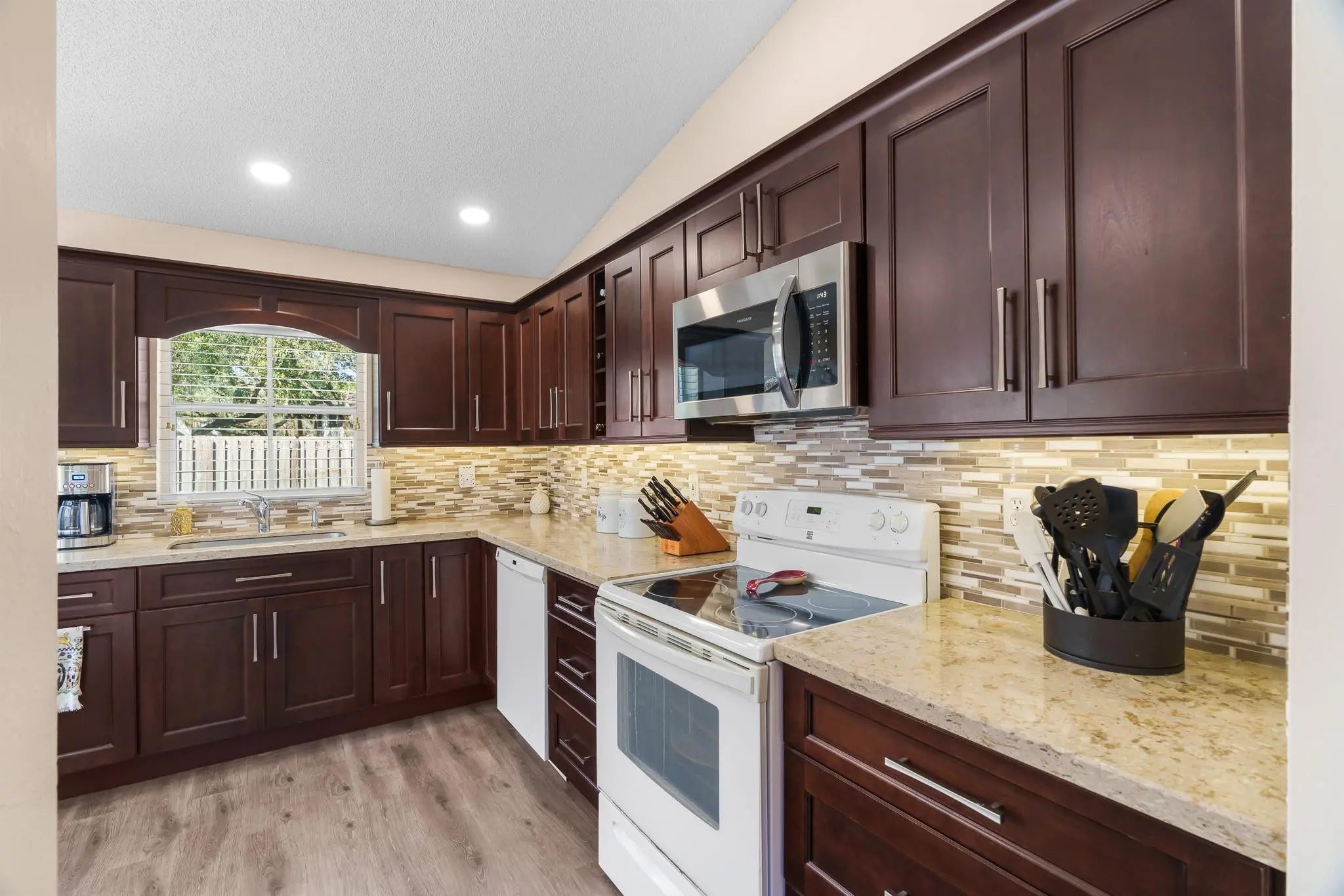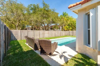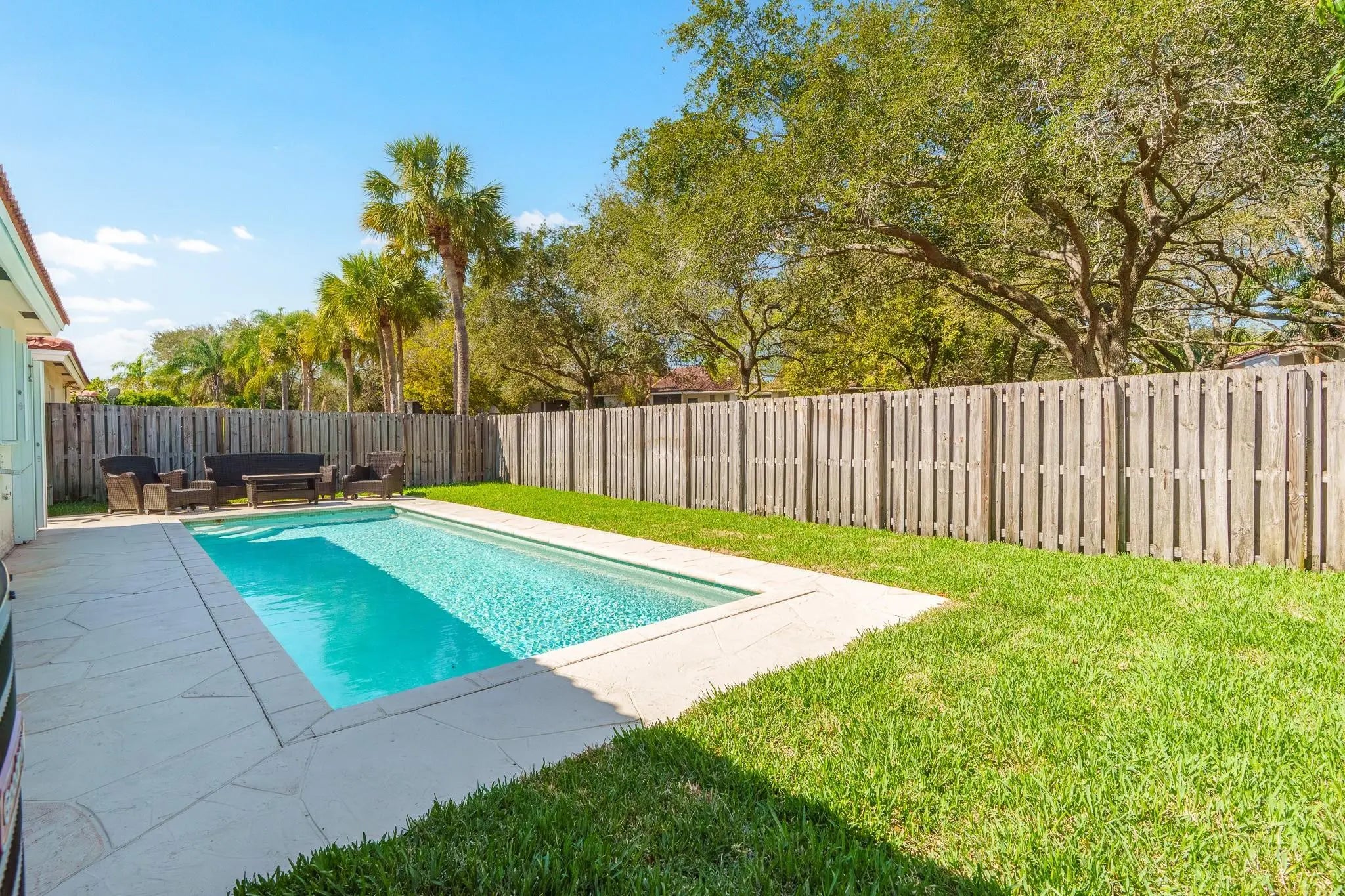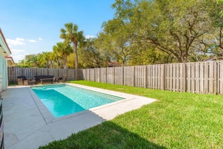 ***Rarely available*** Step outside to your private backyard retreat featuring a spacious patio, generous back & side yards, and of course, a gorgeous sparkling pool completing the perfect space for entertaining friends and family. Fully fenced for privacy and to let the dogs roam. This immaculate single story has perfectly manicured landscaping all around including two stunning palm trees that welcome you at the driveway. Upgraded kitchen w quartz counter tops!! Master bath completely renovated!! 2025 A/C!!! 2018 Roof!!! Tankless hot water heater! Accordion Shutters!! 2025 pool pump! LOW HOA fee only $97 per month!! Windmill Park within walking distance offers pickleball courts, tennis courts, sand volleyball, basketball courts, kids playground + a dog park!! Short drive to the beach!!