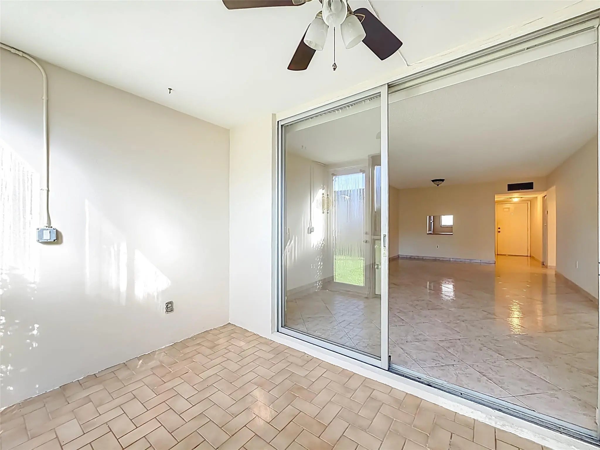 Welcome to Water Bridge 55 + Community. This spacious first floor condo offers a bright open layout with neutral tile flooring and abundant natural light. The living and dining area flows to an enclosed patio with floor to ceiling windows and peaceful garden views. The kitchen features ample cabinets and space. The bathroom includes an oversized vanity and generous storage. Located in a quiet, well maintained community near Sawgrass Mills, Amerant Bank Arena, major highways, shopping, dining, and parks.