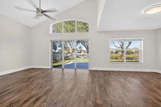 Breathtaking sunset views await from this stunning 4-bedroom (Loft closed in for 4th}, 2.5-bathroom Nairobi Model, perfectly situated on a quiet cul-de-sac overlooking an amazing lake. Boasting over 2,000 sq. ft. of light-filled living space, this home features dramatic vaulted ceilings and a modern, open floor plan. Major updates provide peace of mind, including a NEWER ROOF (2022)! - The interior showcases a spacious family room and a chef-inspired kitchen with white shaker cabinets and stainless steel appliances. Enjoy a formal dining room, breakfast nook, and a dedicated laundry room. Additional perks include 2-car garage, accordion shutters, and a guard-gated community with top-rated schools and low HOA fees. Experience lakeside living at its finest in this move-in-ready gem! Breathtaking sunset views set the tone for this beautifully updated 4-bedroom (loft enclosed for the fourth bedroom), 2.5-bath Nairobi model, ideally positioned on a quiet cul-de-sac overlooking Keystone Lake. Offering over 2,000 square feet of bright, open living space, the home features dramatic vaulted ceilings, abundant natural light, and luxury vinyl flooring throughout for a clean, modern look. The open floor plan includes a spacious family room and a chef-inspired kitchen with white shaker cabinetry and stainless steel appliances, along with a formal dining room and breakfast nook for everyday living and entertaining. Recent updates provide peace of mind, including a newer roof (2022). Additional highlights include a dedicated laundry room, two-car garage, accordion shutters, and location within a guard-gated community with a low HOA. Move-in ready and perfectly suited for relaxed lakeside living, this home offers comfort, style, and a truly special setting.