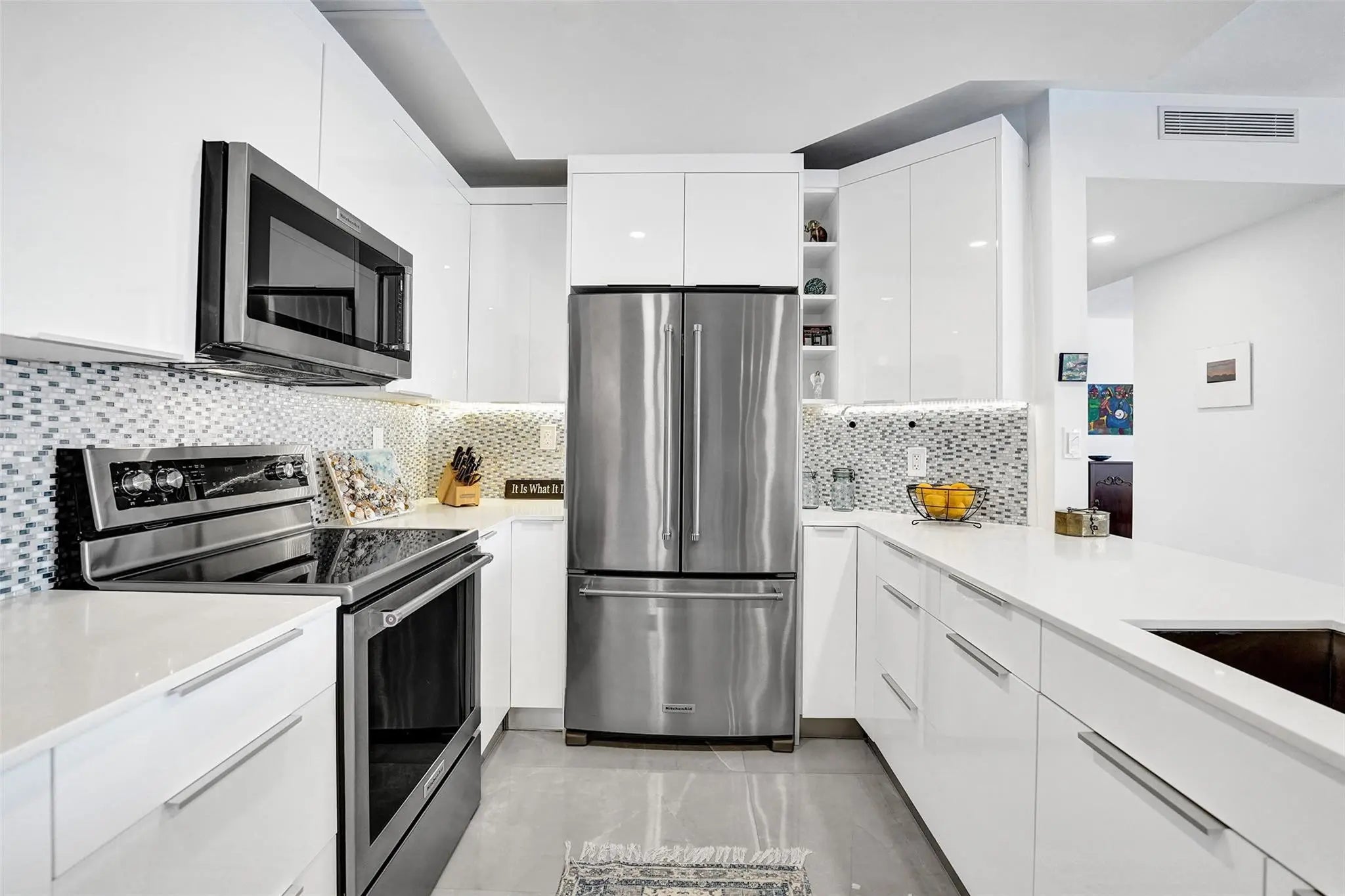 Fully updated with high end finishes - Rarely available 15th-floor SW corner residence with nearly 2,000 sq ft of living space and sweeping ocean & Intracoastal views. An abundant amount of natural light throughout. The open floor plan is ideal for entertaining, featuring a bright kitchen with stainless steel appliances, wine fridge, ample counter space, and generous storage. The expansive primary suite offers a spa-like bath and large custom walk-in closet. Move-in ready with in-unit laundry, impact windows, and seamless flow. Full-service building with doorman, onsite manager, covered parking, gym, heated pool, and storage. Minutes to the beach, Las Olas, dining, and enjoy scenic waterfront walks through the charming Idlewyld neighborhood.
