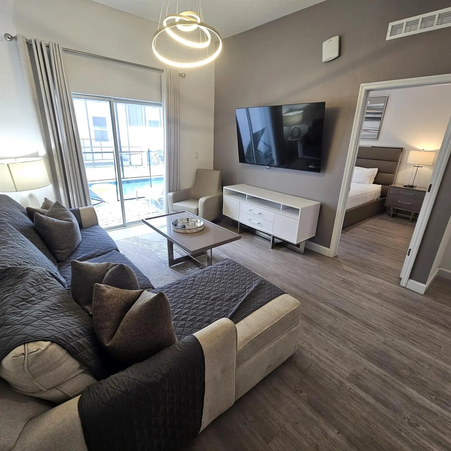 Turnkey 5BR/4BA pool home in Azur Resort priced at $375,000. Fully furnished and rental-ready at closing with 1,671 heated sq ft (1,736 total). Private screened splash pool and 5-bedroom layout align with strong-performing short-term rental profiles in the Champions Gate/Davenport corridor. Comparable long-term rentals average approx. $2,800/month. Zoned for short-term rental use with Airbnb/VRBO flexibility. Gated resort-style community with clubhouse, pool, fitness center, and minutes to Disney, dining, shopping, and I-4 access. Ideal for cash investors seeking immediate income potential. Agents: If your buyer is comparing multiple units in Azur, note this property is competitively positioned relative to current and anticipated inventory. Encourage buyers to act accordingly.Financial projections are estimates only and not guaranteed. Buyer to conduct independent due diligence on HOA, rental performance, and operating costs.