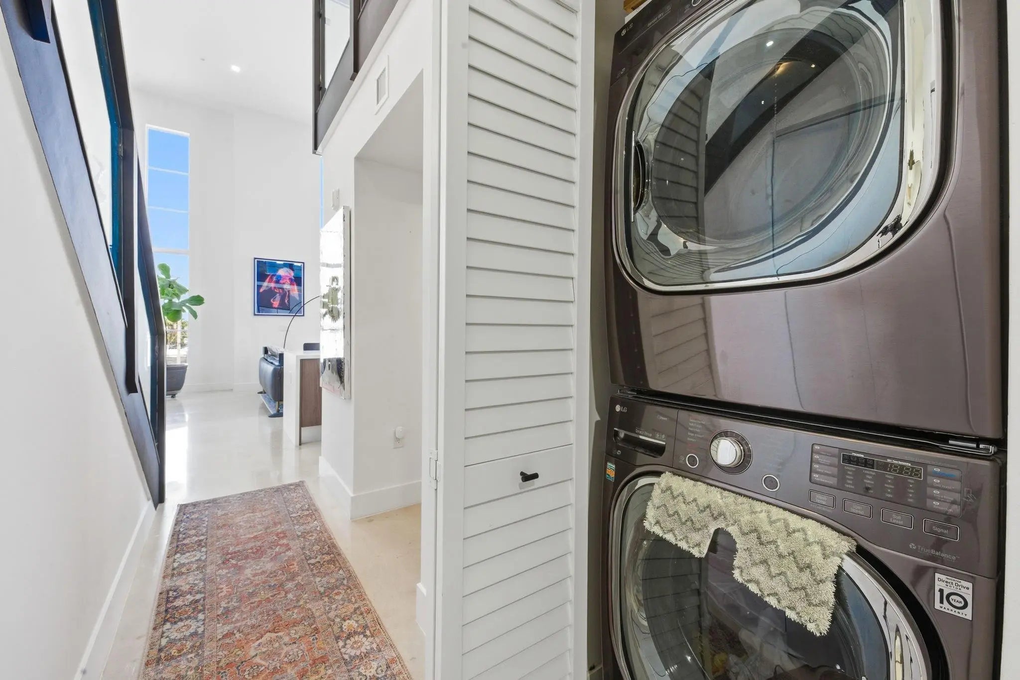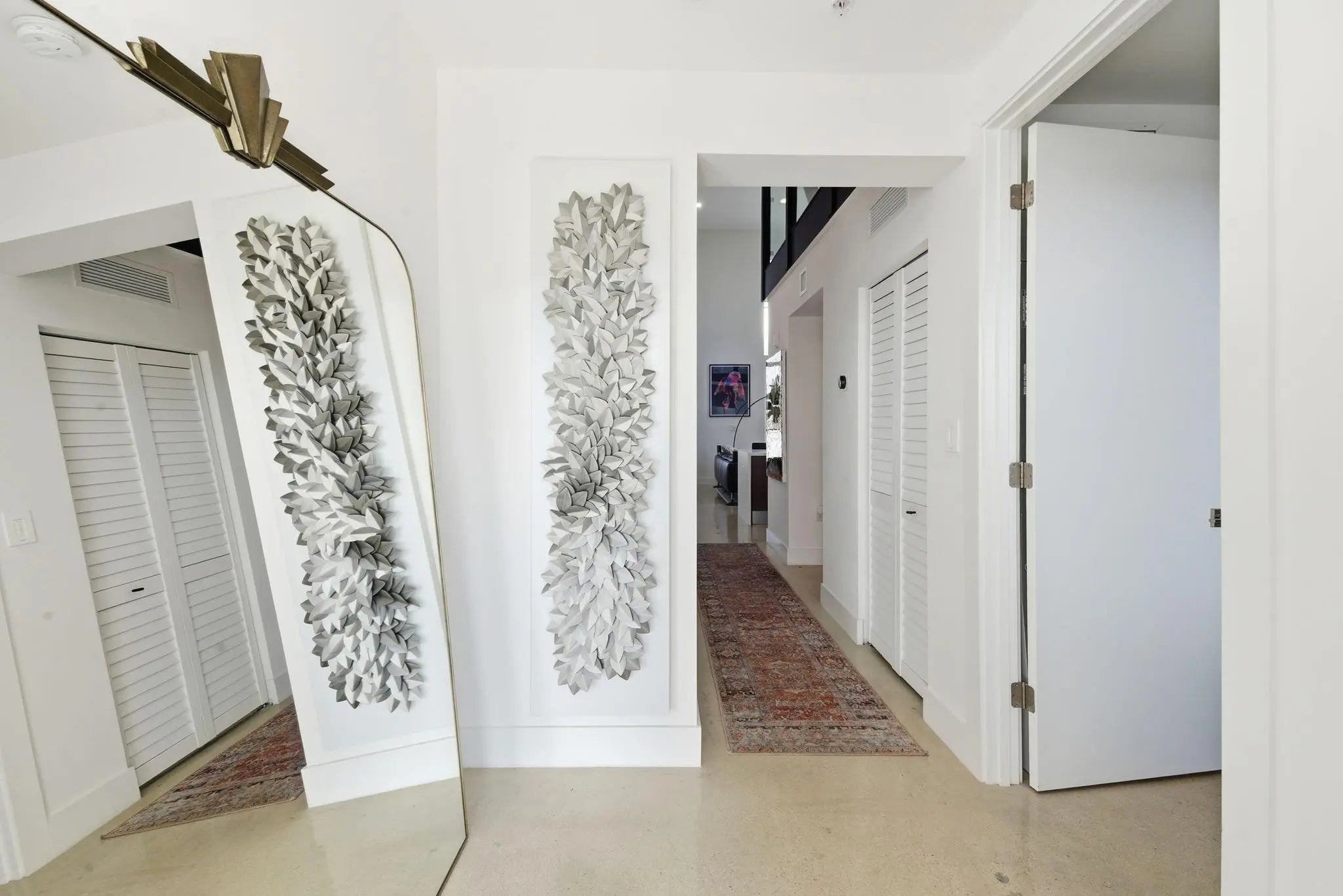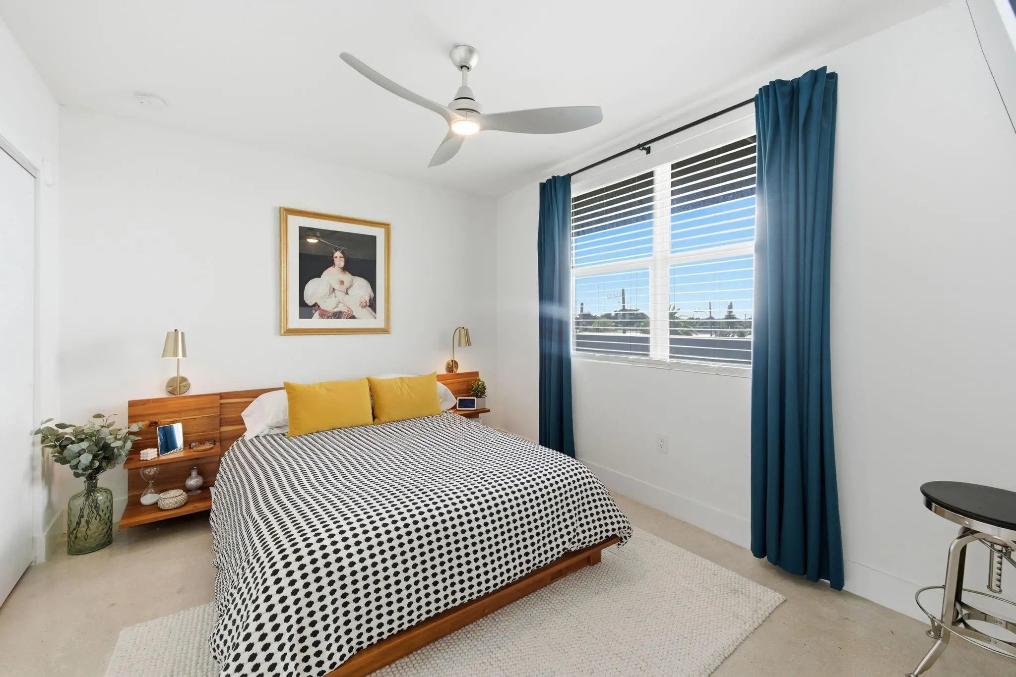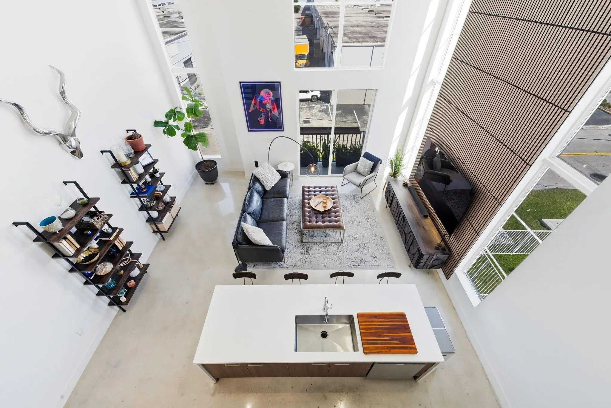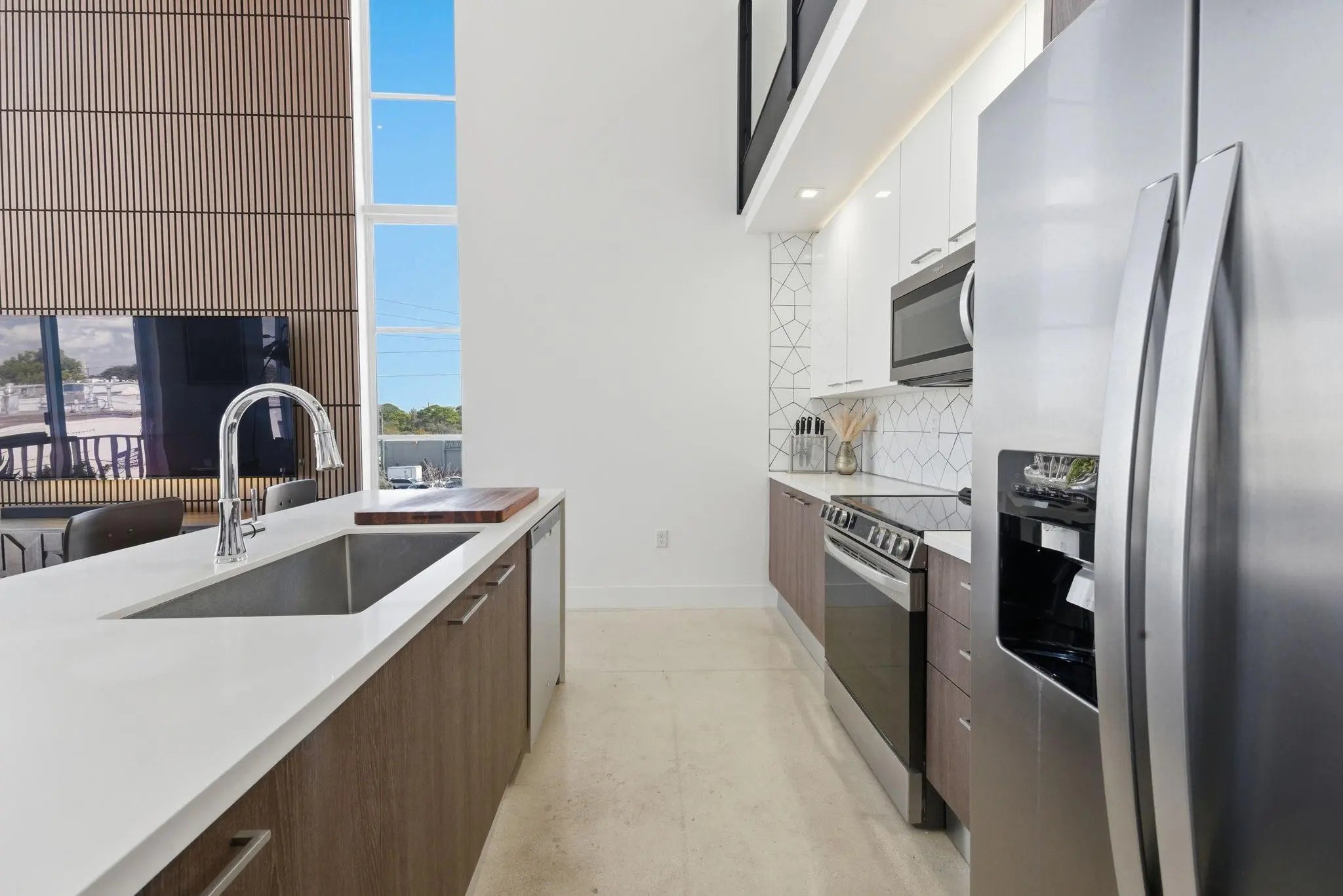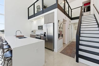 Fall in Love with this designer NYC-style corner loft at URBN Village at 5th Ave, with a low $260/mo HOA. Built in 2020, this 2BR/1BA stuns with 18-ft ceilings, oversized impact windows, & polished concrete floors. The showpiece kitchen features waterfall quartz counters with thicker slab detail, ceiling-height two-tone cabinetry, upgraded backsplash, oversized island, & stainless appliances. A dramatic accent wall, sleek black stairs, & glass railings create a bold, modern vibe. Primary suite offers sleek black LVP floors & a custom closet. Smart switches & thermostat, frameless shower, & resort-style pool. Location is unbeatable! Minutes to Wilton Manors, Federal Hwy, Beach, & the Culinary Arts District. Don't miss this amazing condo!
