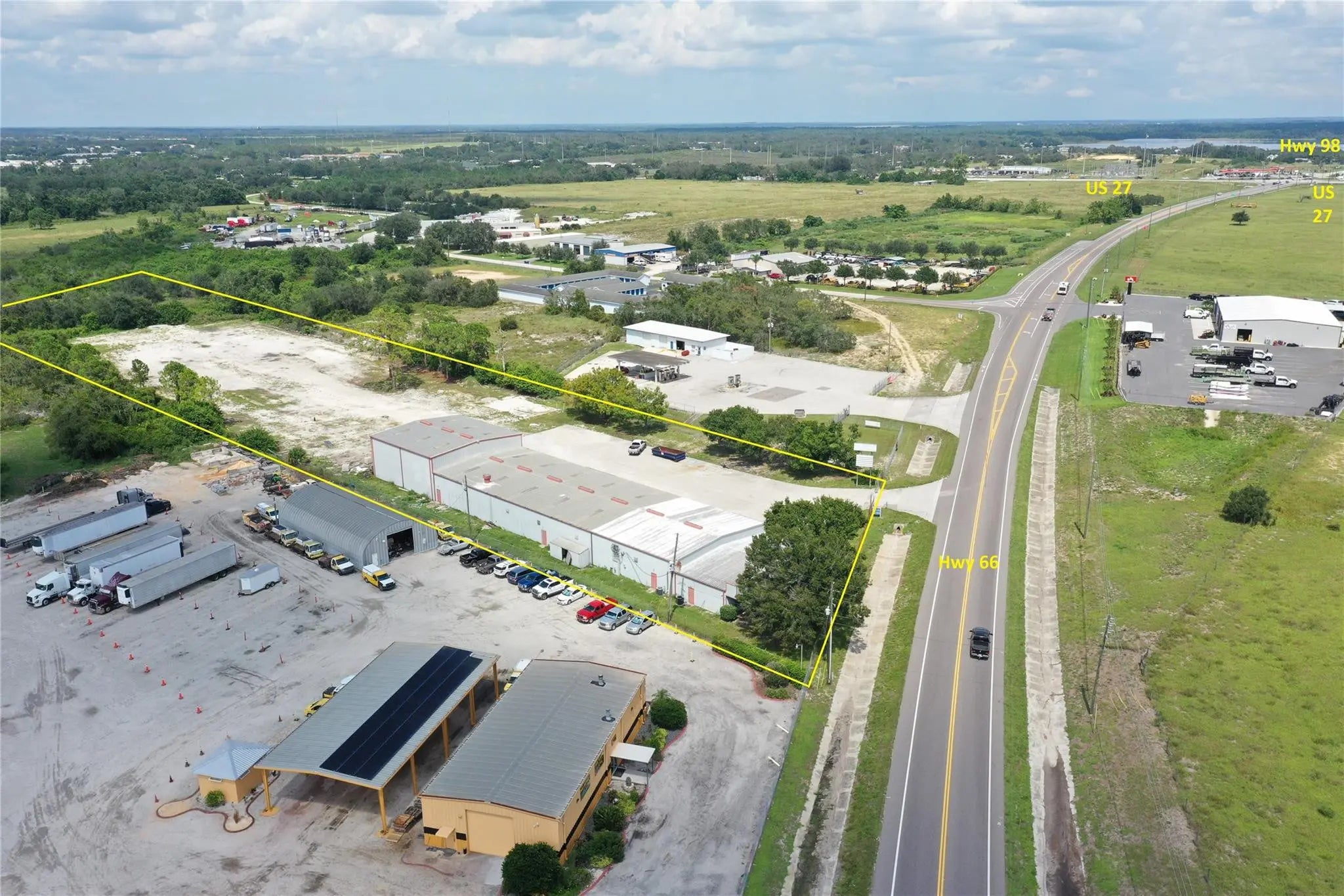 15,900+-SQ/FT INDUSTRIAL WAREHOUSE/OFFICE SPACE FOR LEASE IN SEBRING Close to Major Intersection US 27/Hwy 66/98 For Easy Distribution! 7 High Roll Up doors, 3 Phase Power, Clear Span High Ceilings. 13,300+/-sf Warehouse with 2,600+/- sf of air conditioned offices and a generous 4.6+/- acre property located just west of the crossroads of US Hwy 27 and SR 66/98, at just $12/sf **Zoned I2, property is fenced w/security gate. Features expansive parking area designed to accommodate trucks of all sizes. The large warehouse offers easy access through 5 roll-up doors (four 12'wX14'h, and one 12'wX16'h) that open to the main portion of the facility. Plus 2 12'X14' roll-up doors open to a separate warehouse area that is seamlessly linked to the 2,600+/- square feet of air conditioned office space.