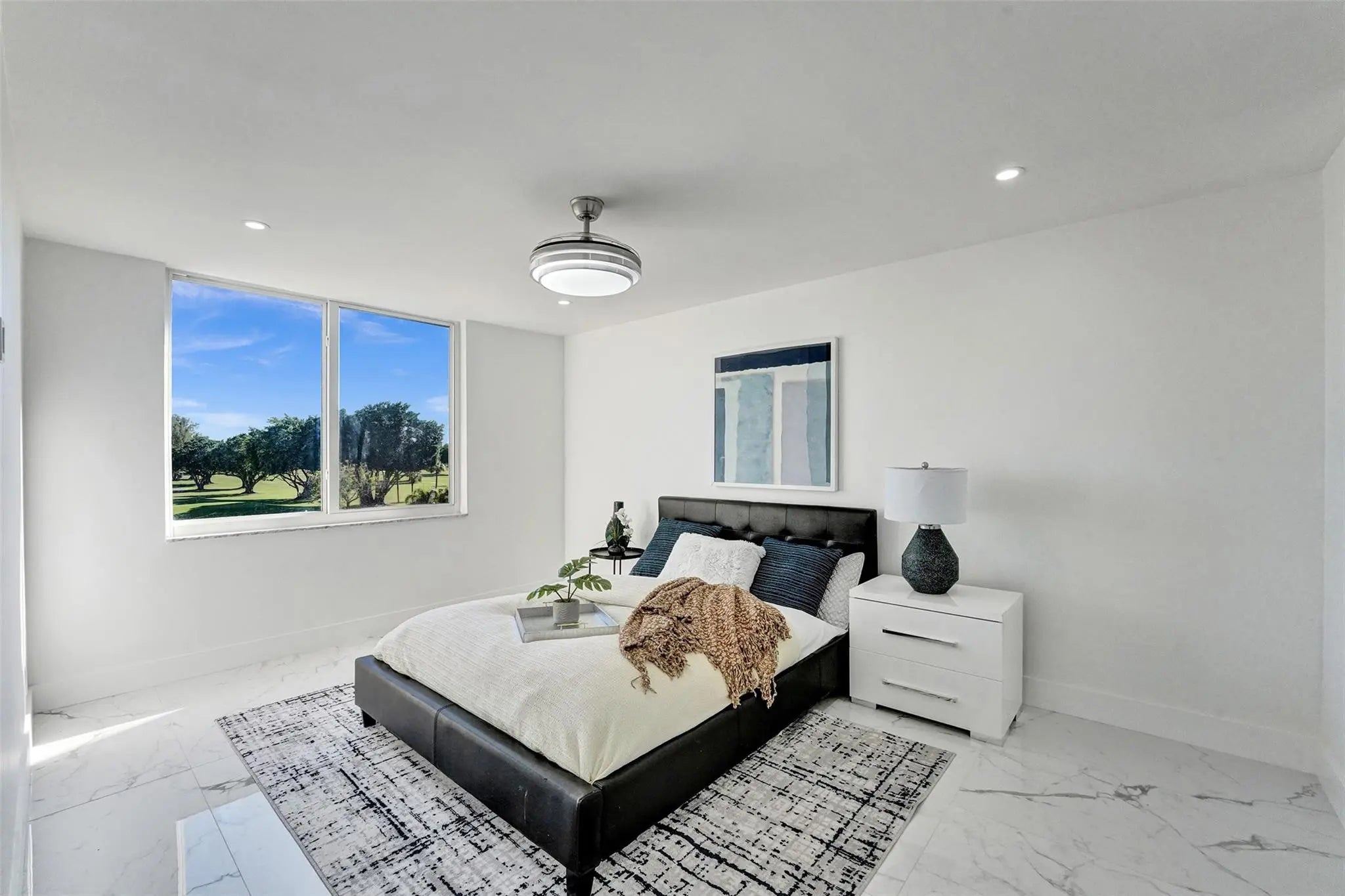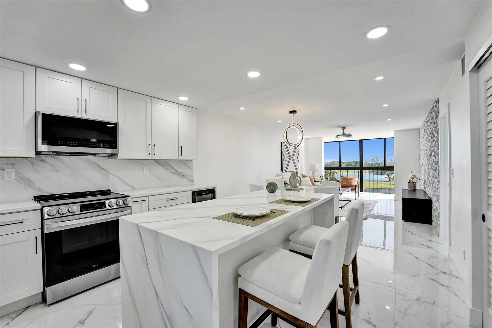 REC LEASE PAID AND 50 YEAR INSPECTION COMPLETED! RENOVATED and READY TO MOVE-IN! This condo boasts STUNNING GOLF, LAKE, TENNIS, AND POOL VIEWS. Features open floor plan, granite countertops, new flooring, updated cabinetry, stainless appliances, wine cooler, spa-like bathrooms, impact windows/doors, and in-unit washer/dryer. Enjoy year-round sunsets from the impact-enclosed balcony. Community offers FREE golf (cart fee applies) on PGA & Par-3 courses plus resort-style amenities: heated pools, sauna, fitness center, tennis/pickleball, putting green, shuffleboard, clubhouse, library, billiards, BBQ area, EV charging, car wash, courtesy bus, and on-site restaurant. Guard-gated 55+ community. HOA requires 700+ credit and income/net worth guidelines; refundable HOA deposit required.