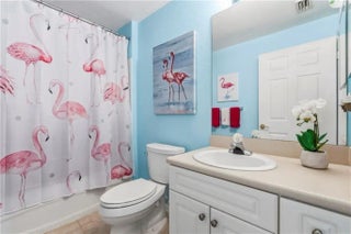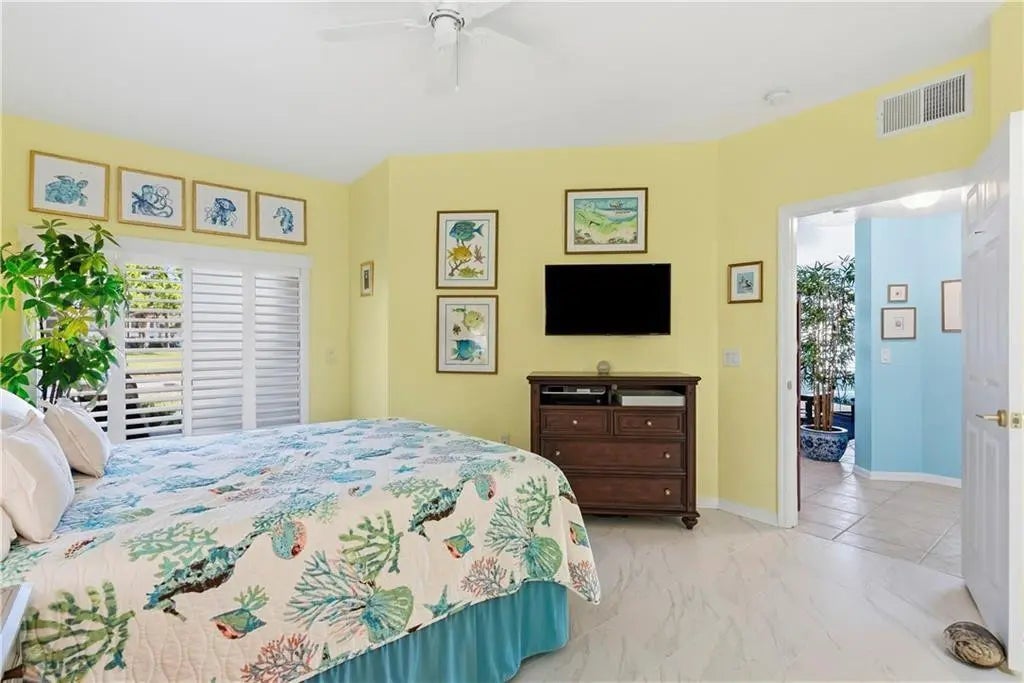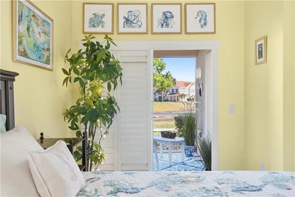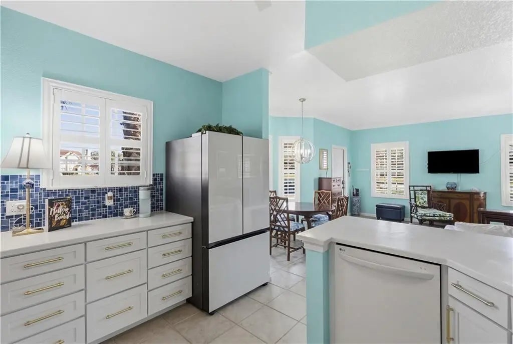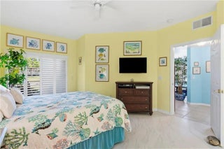 Experience effortless Florida living in this beautifully appointed open-concept condo. The cook’s kitchen features 42-inch soft-close cabinetry, Corian countertops, and a stylish coffee bar, perfect for relaxed mornings or entertaining. Brushed gold fixtures and designer lighting add warmth and sophistication throughout. Plantation shutters provide timeless charm and abundant natural light. Step onto the screened patio to enjoy peaceful coastal breezes year-round. Steps away from the pool and clubhouse featuring expansive gym. Enjoy elegance and the easy Florida lifestyle.