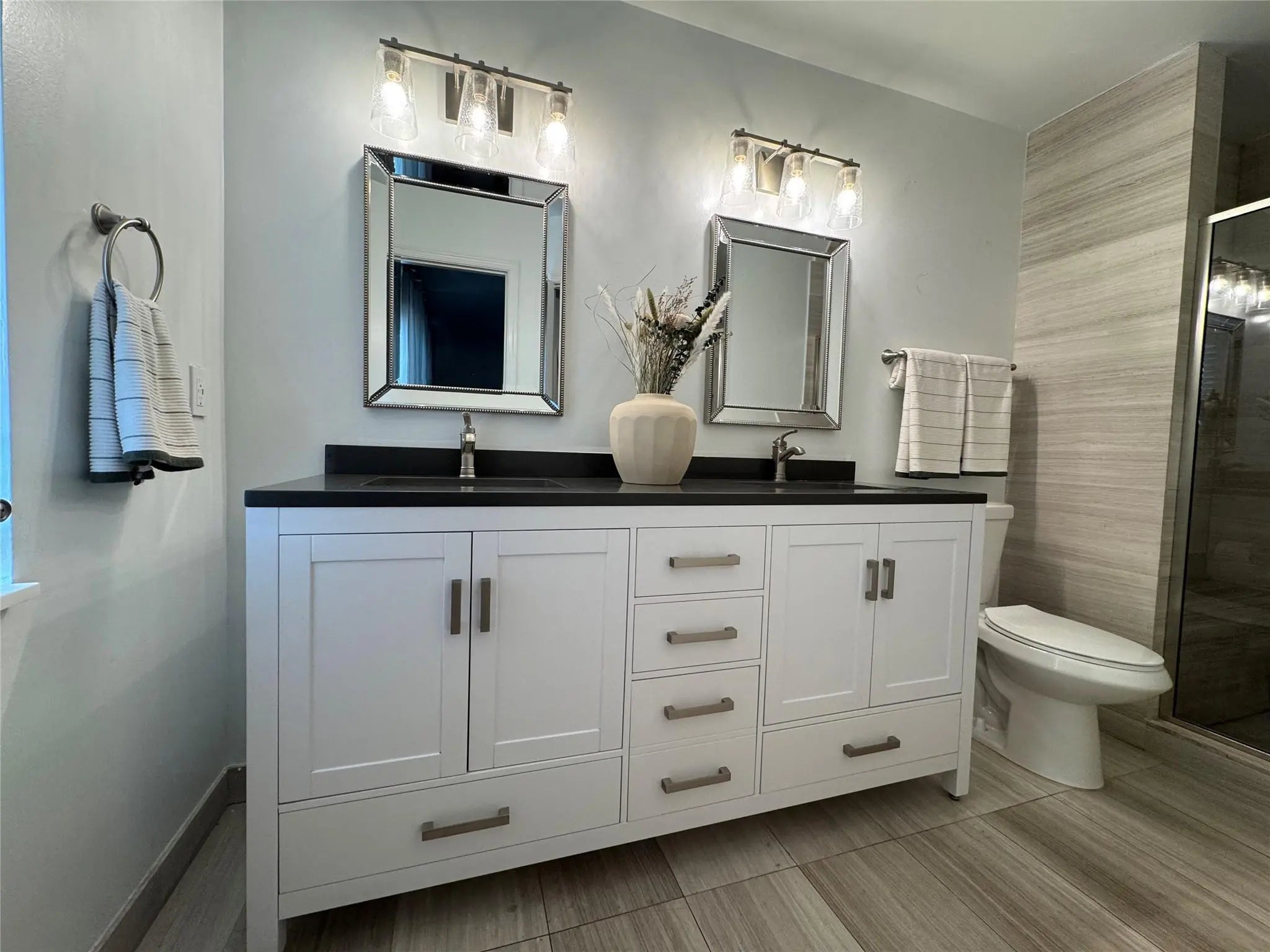 Beautifully renovated townhome in the desirable neighborhood of Plum Harbor. Porcelain tile throughout home including fully tiled garage. Marble floor and walls in the master bathroom, travertine on exterior patio and entrance walkway. Built in cabinetry in both bedroom walk in closets. Fenced in backyard with lake view.