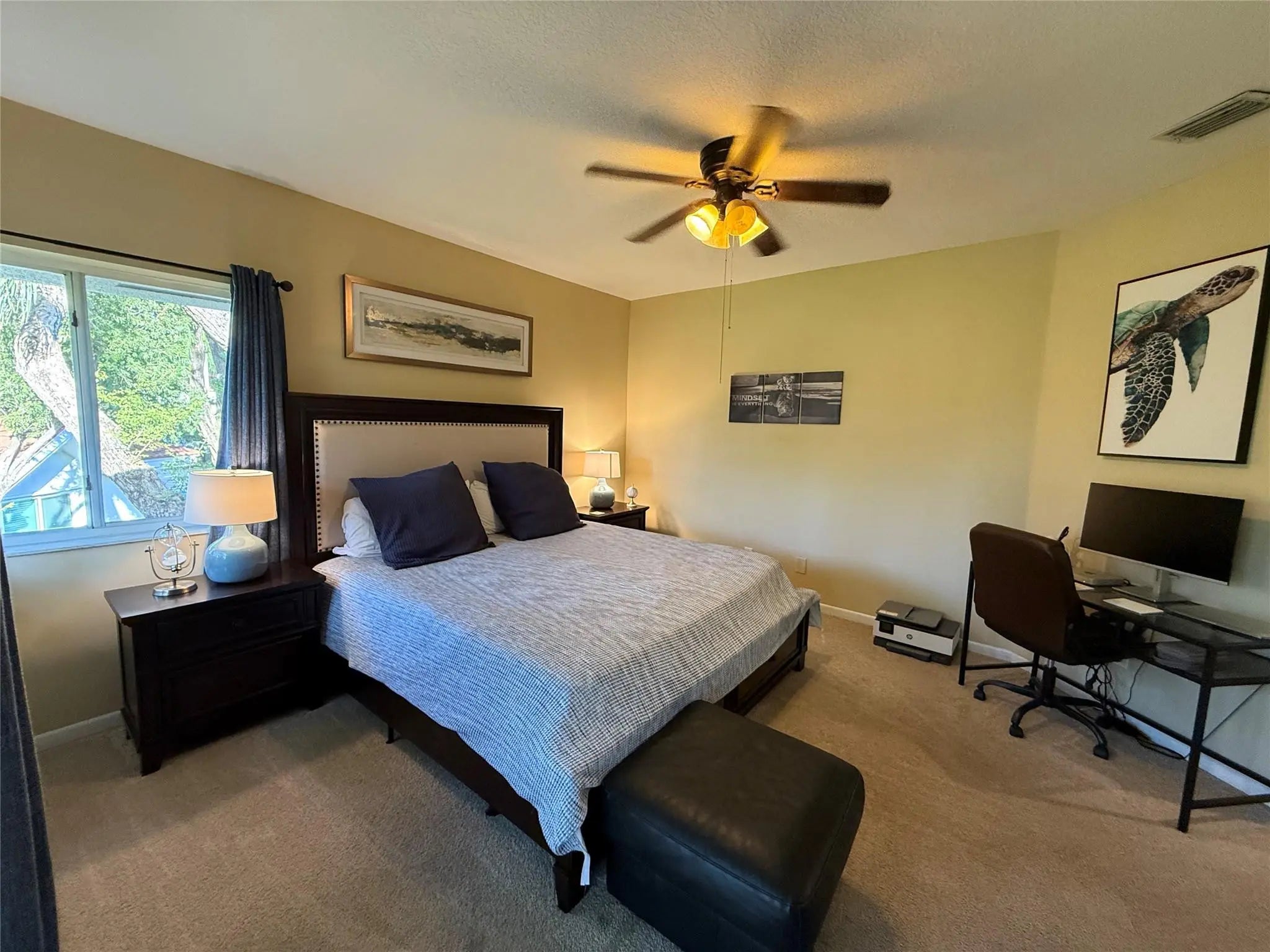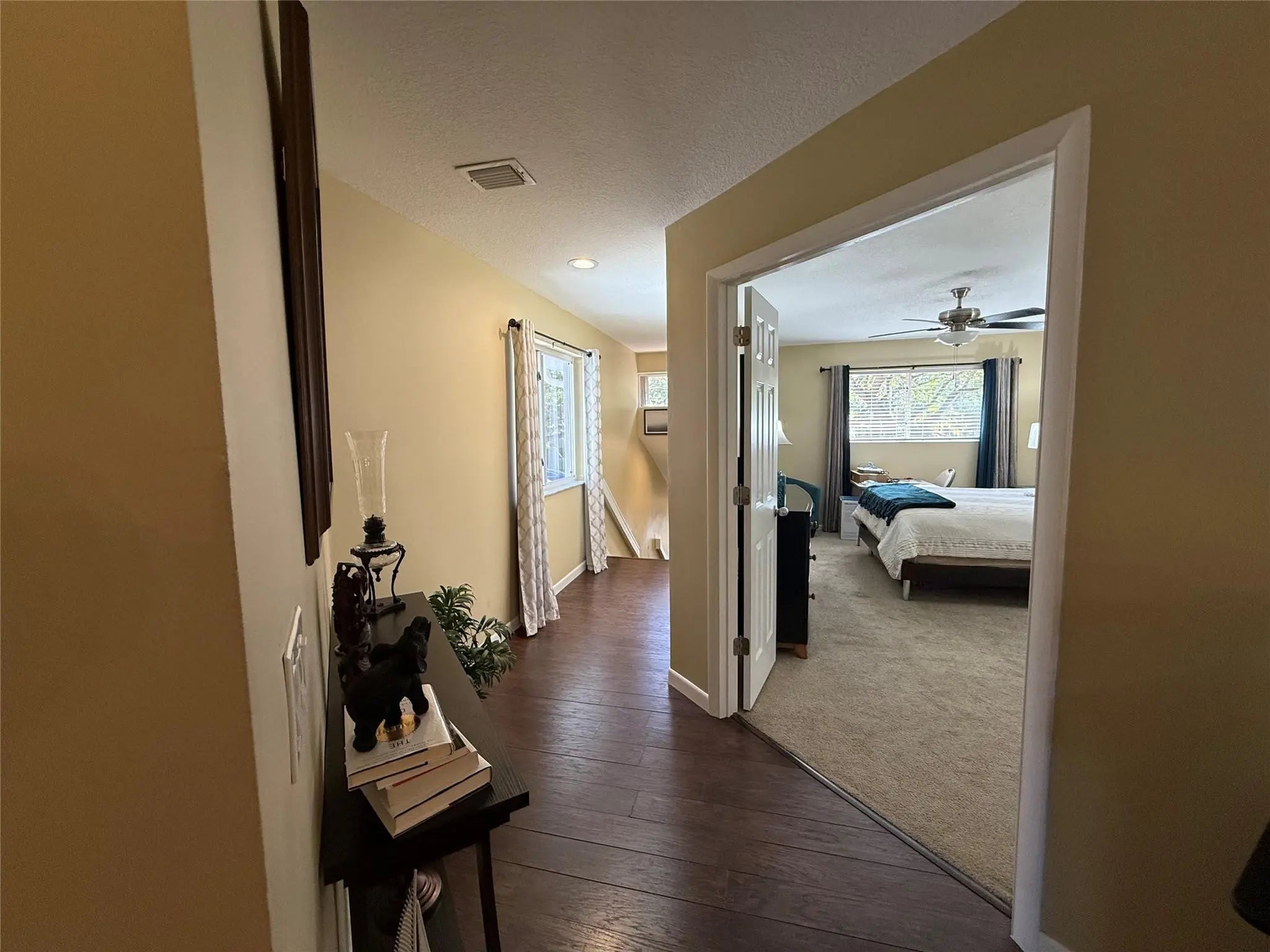 This 2-bedroom, 2-bath townhouse offers modern upgrades, vaulted ceilings up to 13 ft and serene PRIVATE canal views in a lush community. This well-maintained neighborhood of 205 units features a pool, lounge area, and walking paths for pets. The home includes a freshly painted ground-floor garage with stairs leading to the living area, an updated private balcony, NEW knockdown ceilings (no popcorn), wood floors, large tiles in the kitchen, granite counters, NEW Samsung stainless appliances, and soft-close cabinets. Smart features include an Alexa-compatible patio light and patio fan plus the garage door opener. NEW A/C, NEW updated PEX plumbing, and a NEW garage door opener providing comfort and efficiency. Appliances approx. 3 years old (Samsung stainless steel). A/C approx. 1.5 years old. Plumbing updated with PEX approx. 3.5 years ago. Brand new garage door opener. All ceiling fans and light fixtures have been replaced. Interior freshly painted; ceilings updated from popcorn to knockdown. Lots of new additions for a 30+ year old home!