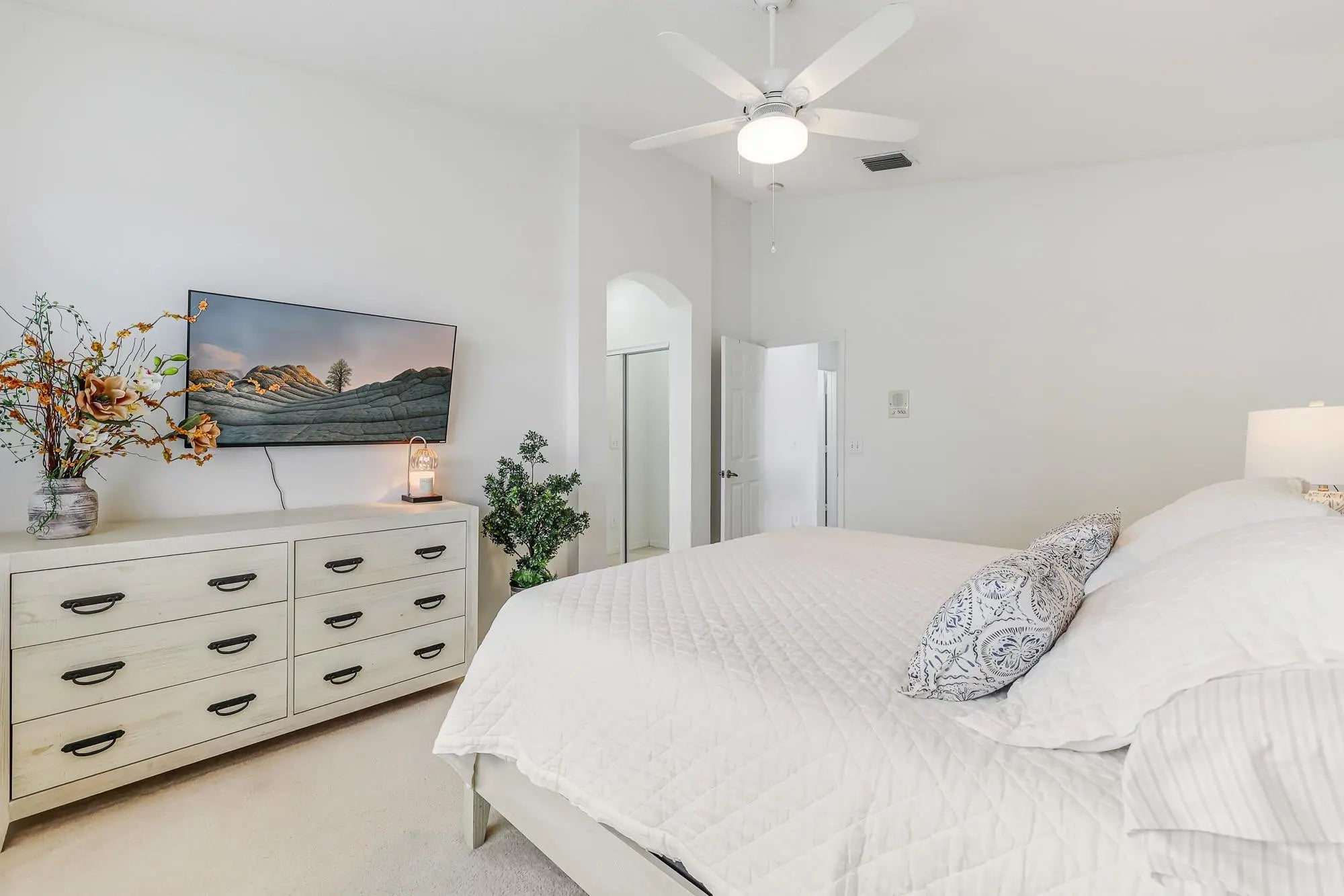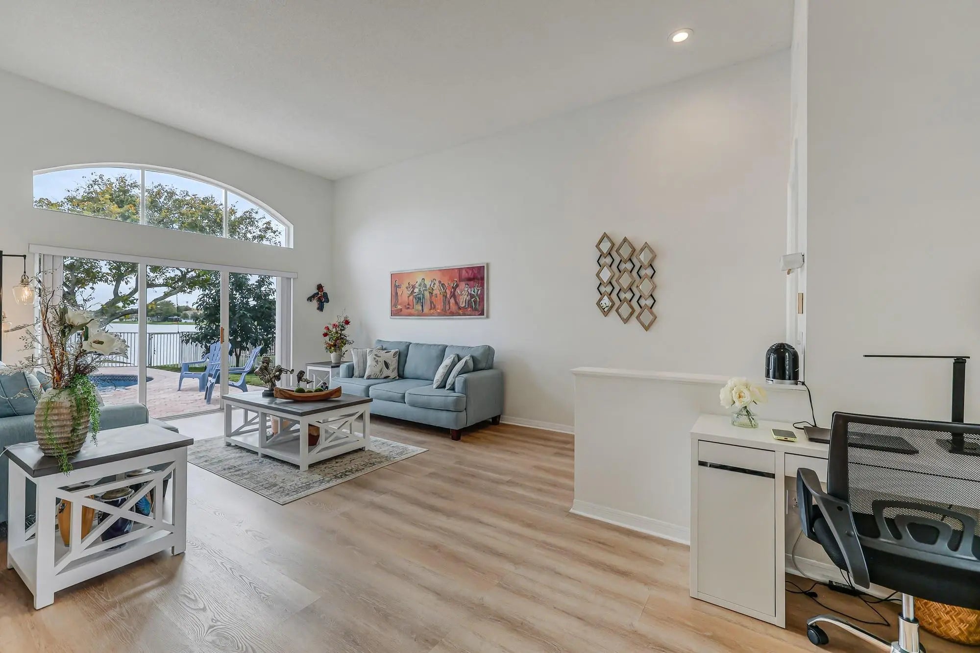 Rare opportunity in sought-after Coco Lakes! This stunning 3BR + den, 3BA pool home offers breathtaking views of a 55-acre navigable lake. Bright, open, and designed for modern living, it features a first-floor den with full bath, perfect for guests or a private office. The spacious kitchen offers stainless steel appliances, abundant cabinetry, and seamless flow into the main living areas. Retreat to a luxurious primary suite with dual vanities, soaking tub, and walk-in shower. Step outside to your private pool oasis and enjoy serene waterfront sunsets.