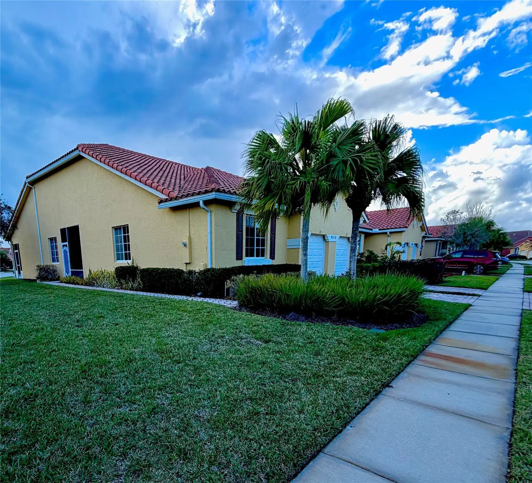End unit with vaulted ceilings, plant shelves, tile flooring throughout. Oversized master suite with walk in shower, custom closet built-in in system. Unbelievable kitchen with cabinets galore, stunning granite countertops. Breakfast nook off the kitchen! Full size washer and dryer, split bedroom plan. Walking distance to Clubhouse.