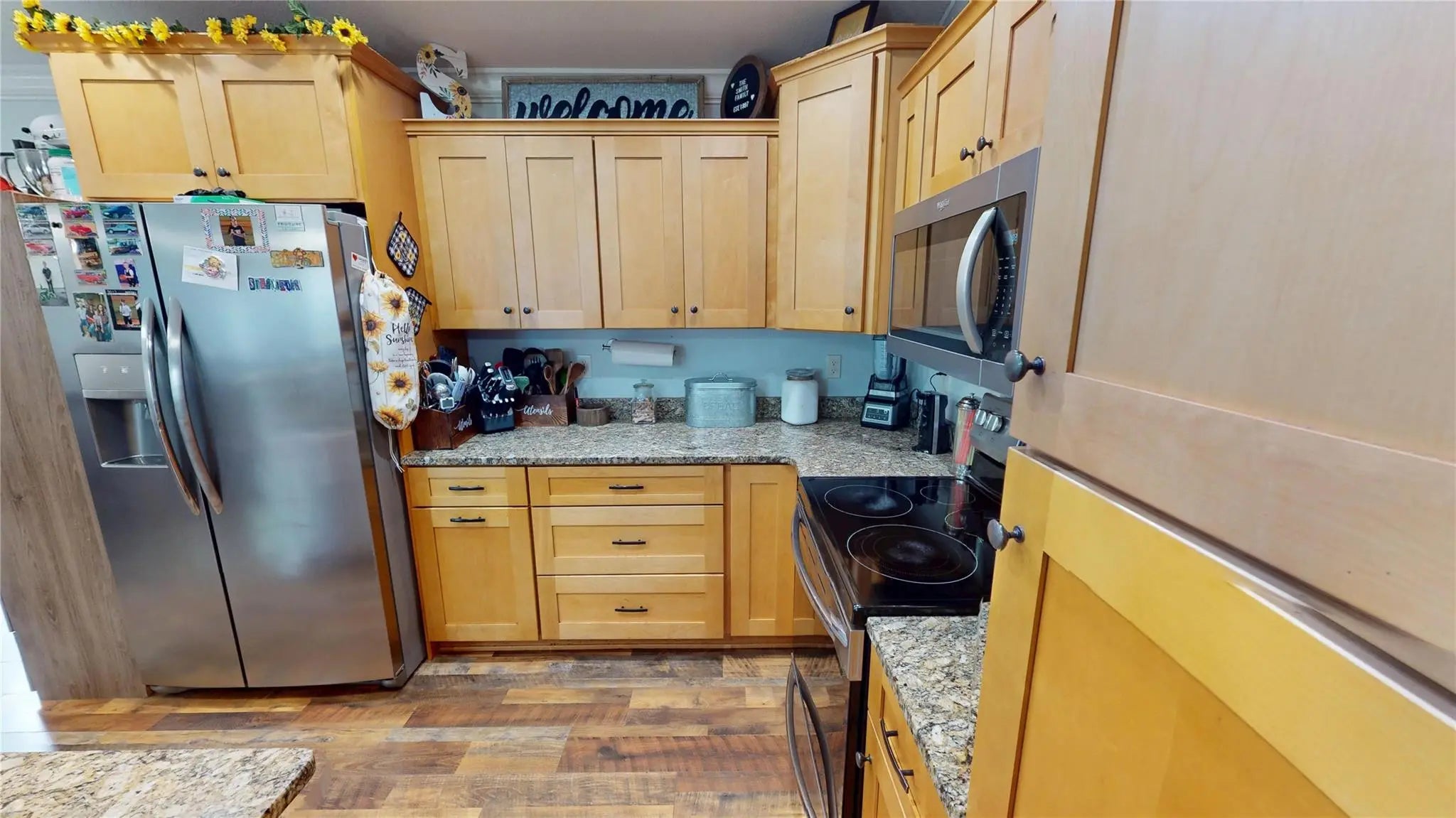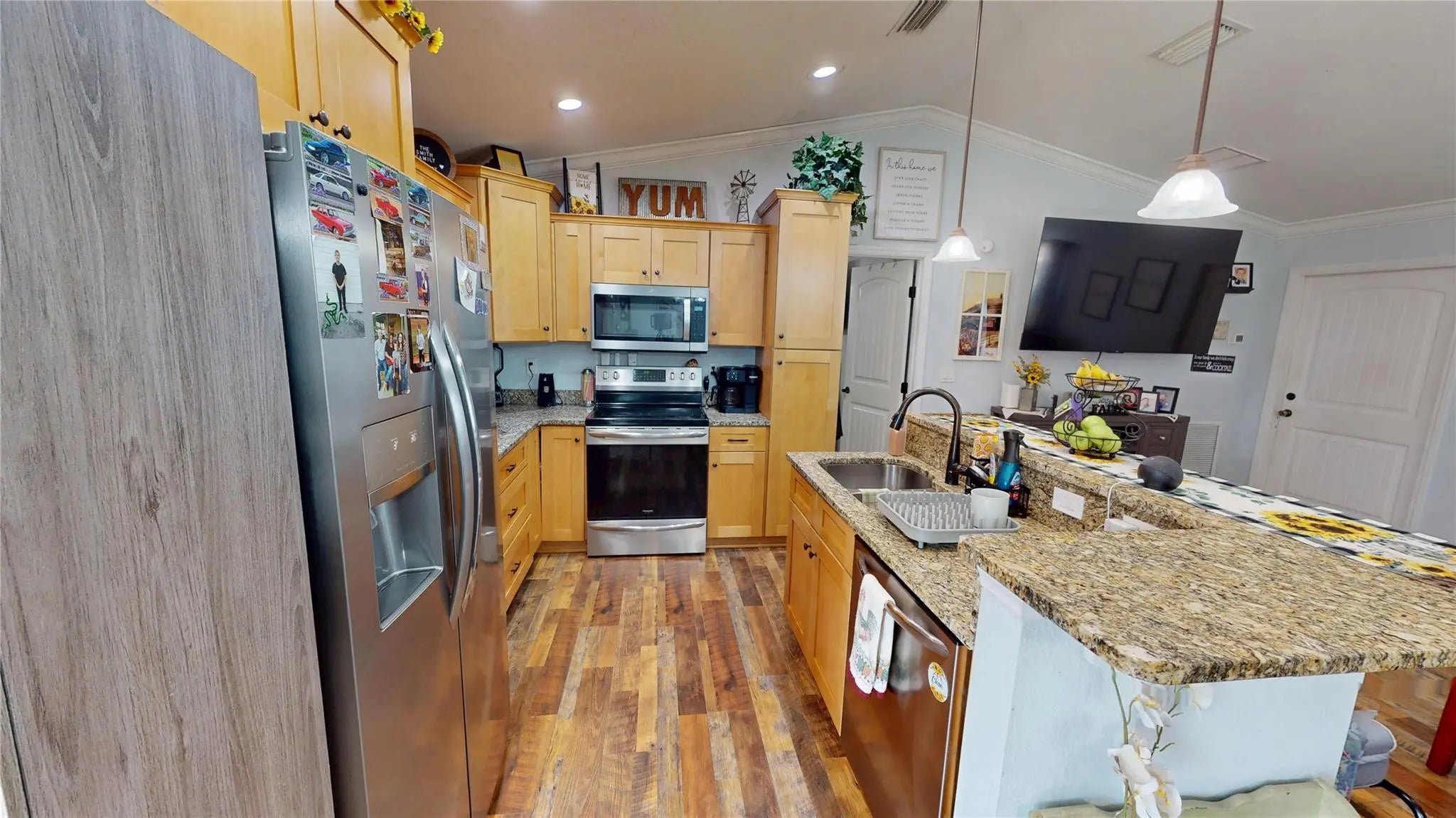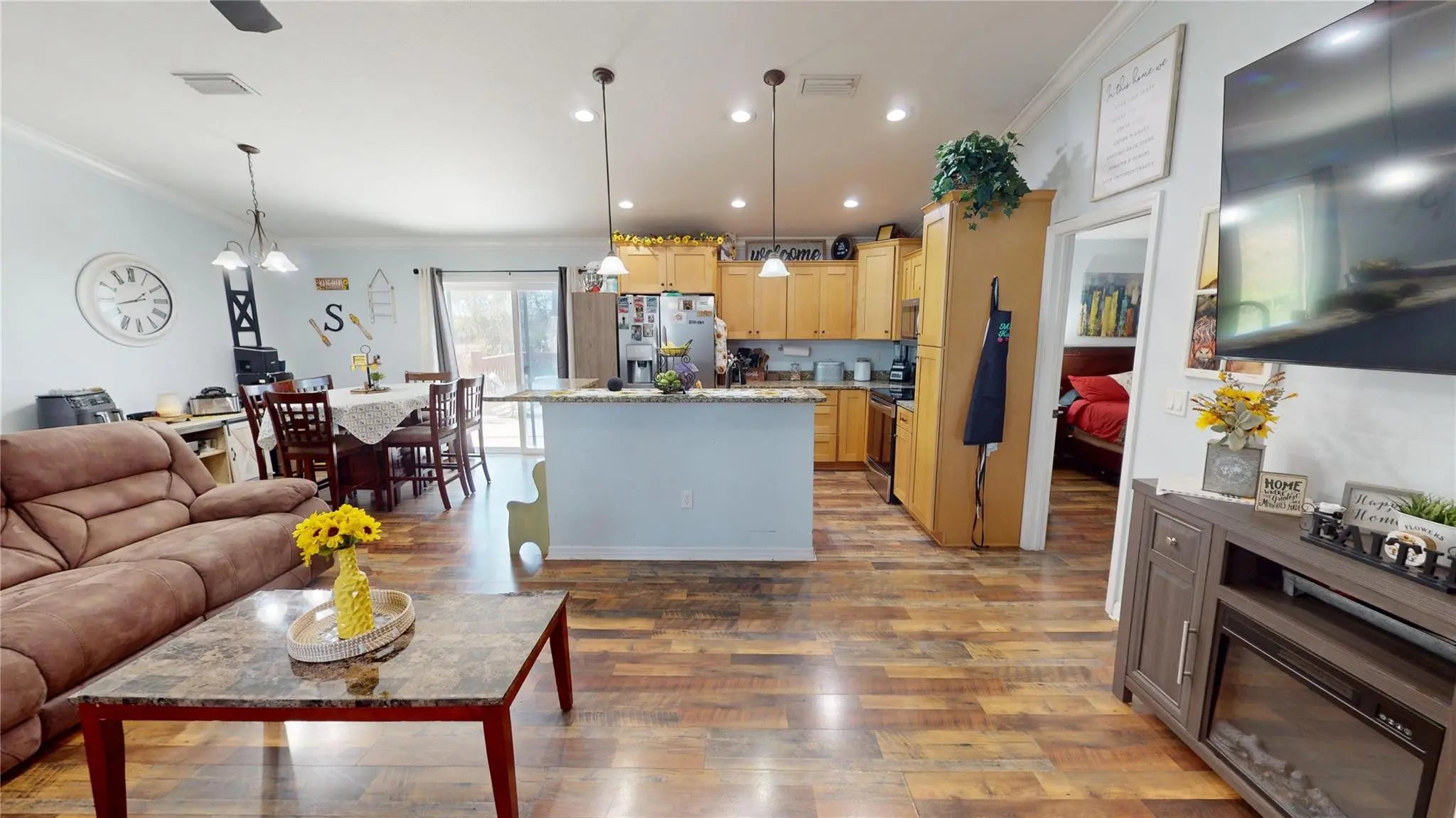 PRICED TO SELL. MOTIVATED SELLER, Bring all offers. NO HOA.Beautiful 2019 build 3-bedroom, 2-bathroom home with a 2-car garage situated on a 0.21-acre lot. Roof replaced 2023. This well-maintained property features wood flooring throughout and an open-concept layout. The kitchen offers a spacious island and granite countertops, with matching granite surfaces in both bathrooms for a cohesive finish.The primary suite includes a renovated bathroom with a glass-enclosed shower. Step outside to enjoy a wood patio deck surrounded by mature pine trees, offering privacy and a peaceful setting. Property has irrigation.Ideal as a primary residence, seasonal home, or investment property. Excellent opportunity for short-term rental potential. Bring your offers.