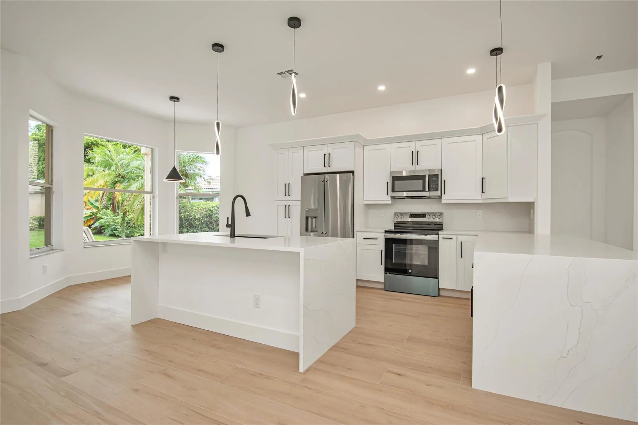 This is your dream house! Modern, contemporary and spacious living at its finest! Be the first to move into this stunning, fully renovated 2026 home located in a vibrant 55+ community! Designed with elegance and comfort in mind, this home features wood like tile flooring thruout, a chef inspired kitchen with white quartz counters w/soft grains running thru, sleek white cabinetry and contrasting black hardware for a bold, modern look. The luxurious master bathroom has an oversized walk in shower, a separate tub, and designer tile finishes that exude sophistication and style. Did I mention a New Roof on the loveliest cul de sac, quiet street! Big Yard!Enjoy resort style living in this new clubhouse offering, pickle ball, tennis, cafe,and a wide variety of social clubs and activities.