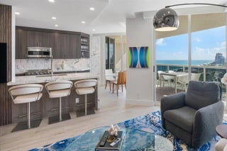 Stunning 17th-floor residence at L’Hermitage remodeled by internationally recognized designer Perla Lichi. Fully renovated home offers sweeping Southeast Ocean/Coastline views with sun-filled exposure throughout the day. Architectural upgrades include raised and terraced ceilings, recessed lighting, and MiaCucina doors. Chef’s kitchen features waterfall Statuario Venato marble island/backsplash with Viking/Sub-Zero appliances. Spa-inspired bathrooms include Brizo fixtures, porcelain flooring, soaking tub, and frameless glass showers. Lutron lighting and new AC complete this turnkey residence. L’Hermitage is 10+ acres of beachfront resort amenities including concierge, clay tennis courts, pools, fitness center, Finnish saunas, spa, and private beach service. Minutes to Las Olas. Pets OK