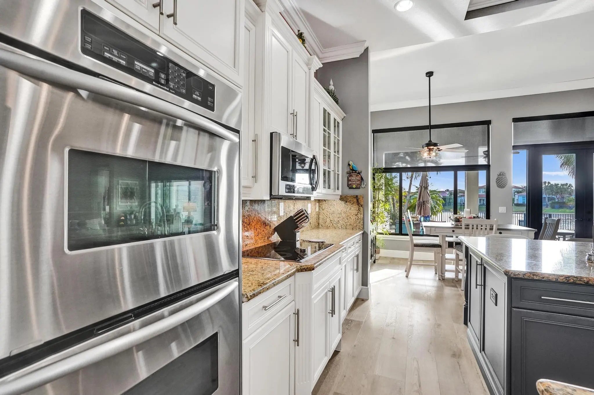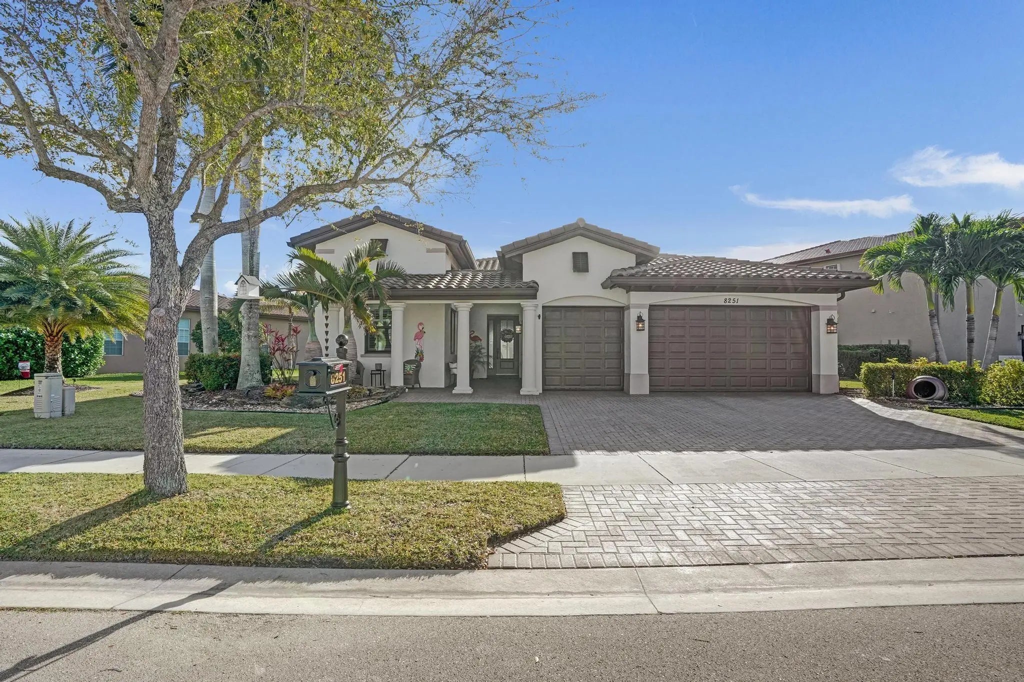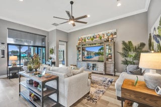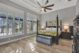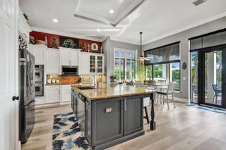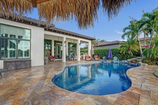 Stunning 4-bedroom, 3-bath, 3-car garage single-story home situated on a spectacular resort-style, fully fenced pie-shaped lakefront lot. Enjoy South Florida living at its finest with a new salt-chlorinated pool featuring fiber optic lighting, a rock waterfall, tiki hut, built-in summer kitchen with BBQ grill, travertine deck, impact windows and sliders. Inside, this beautifully upgraded home offers luxury vinyl flooring, plantation shutters, double coffered ceilings, and crown molding throughout. The luxurious primary suite and all bathrooms have been remodeled with deluxe finishes. The gourmet granite kitchen features solid wood cabinetry, stainless steel appliances, double ovens, spacious entertaining island. Located in prestigious Heron Bay with fabulous resort-style amenities.