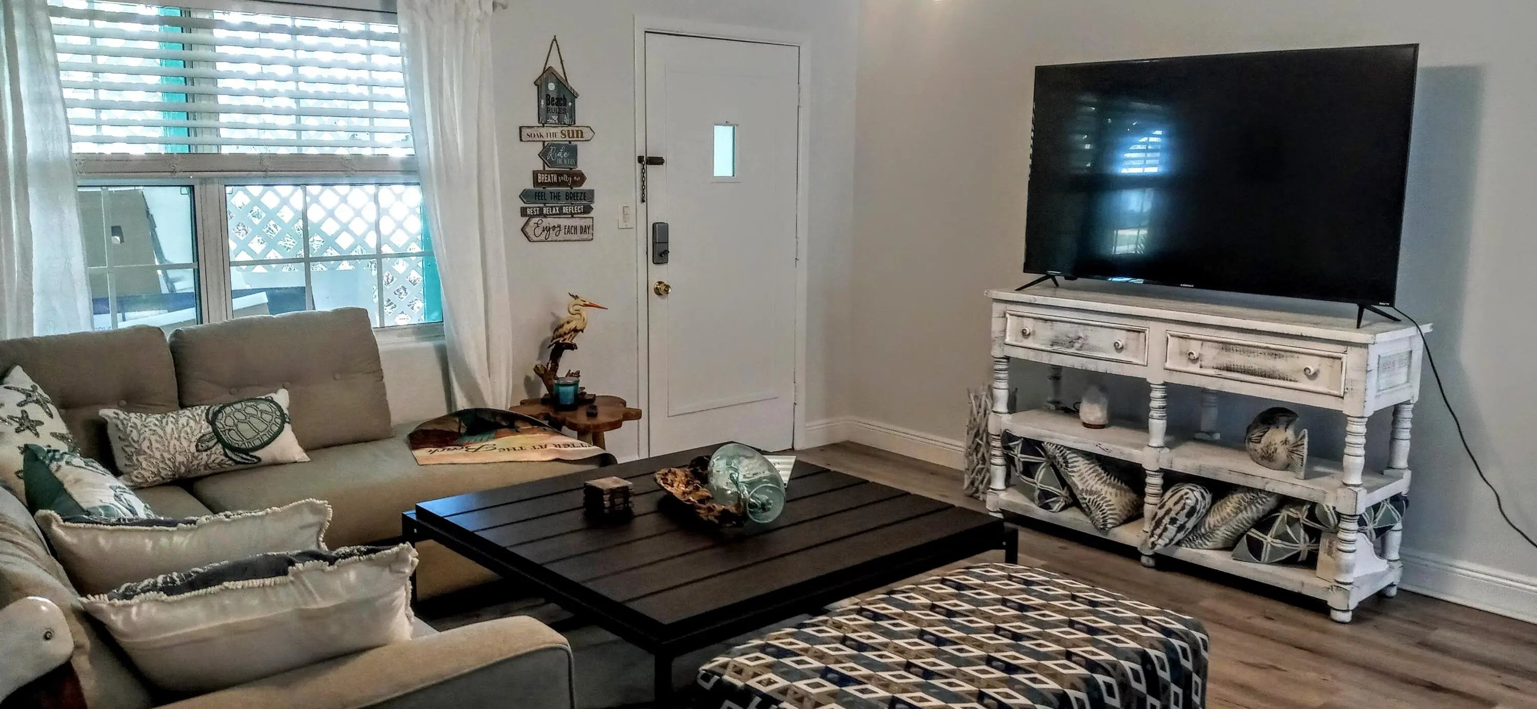 BEAUTIFUL LAYED BACK AREA WITH COMMUNITY BOAT RAMP WITHIN WALKING DISTANCE SLEEPS 7 CLOSE TO DOWNTOWN JENSEN BEACH CAUSEWAY AND WATERFRONT RESTAURANTS AND JUST MINUTES TO THE BEACH BEAUTIFULLY REMODELED HOUSE LOCATION LOCATION AVAILABLE NOW !!