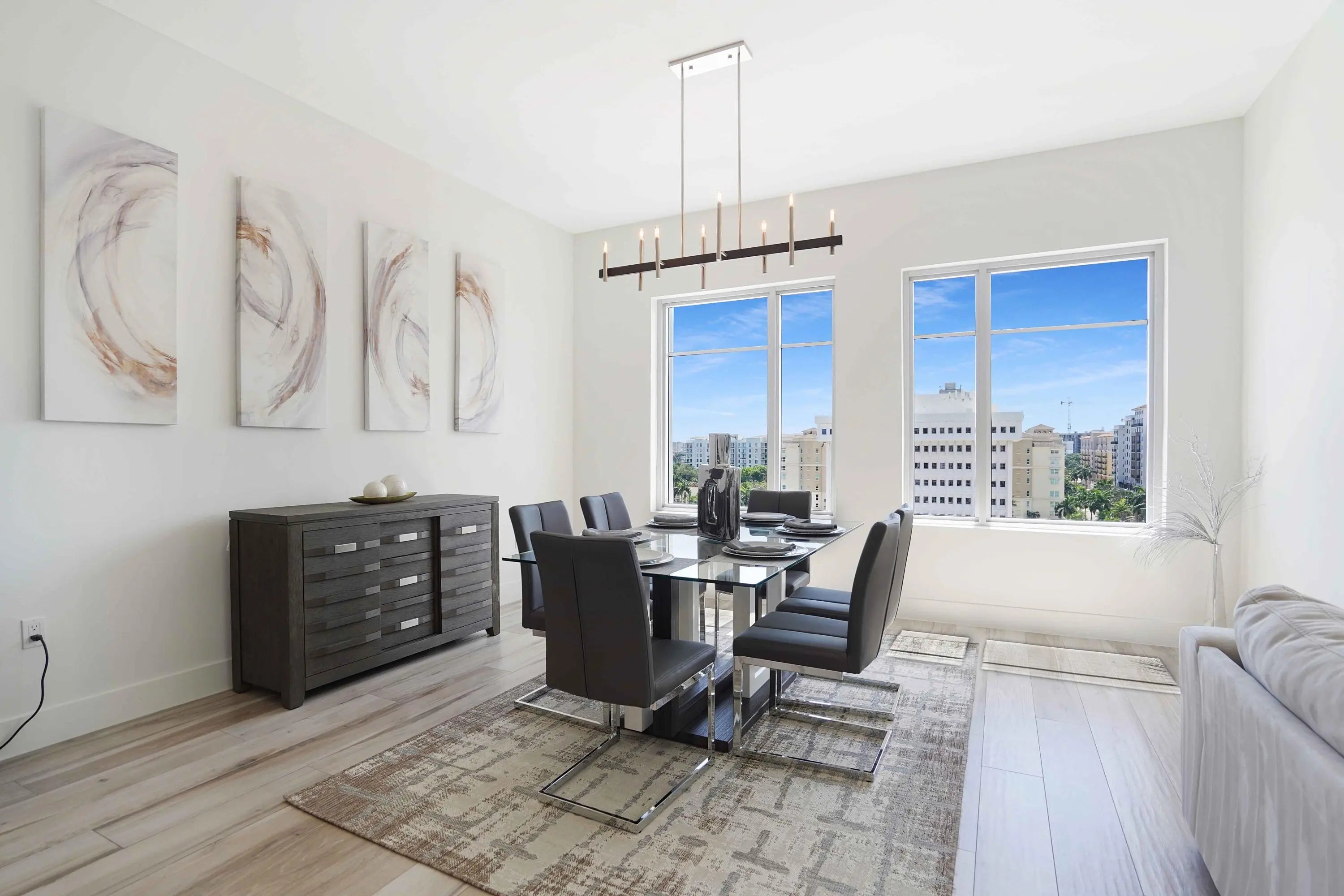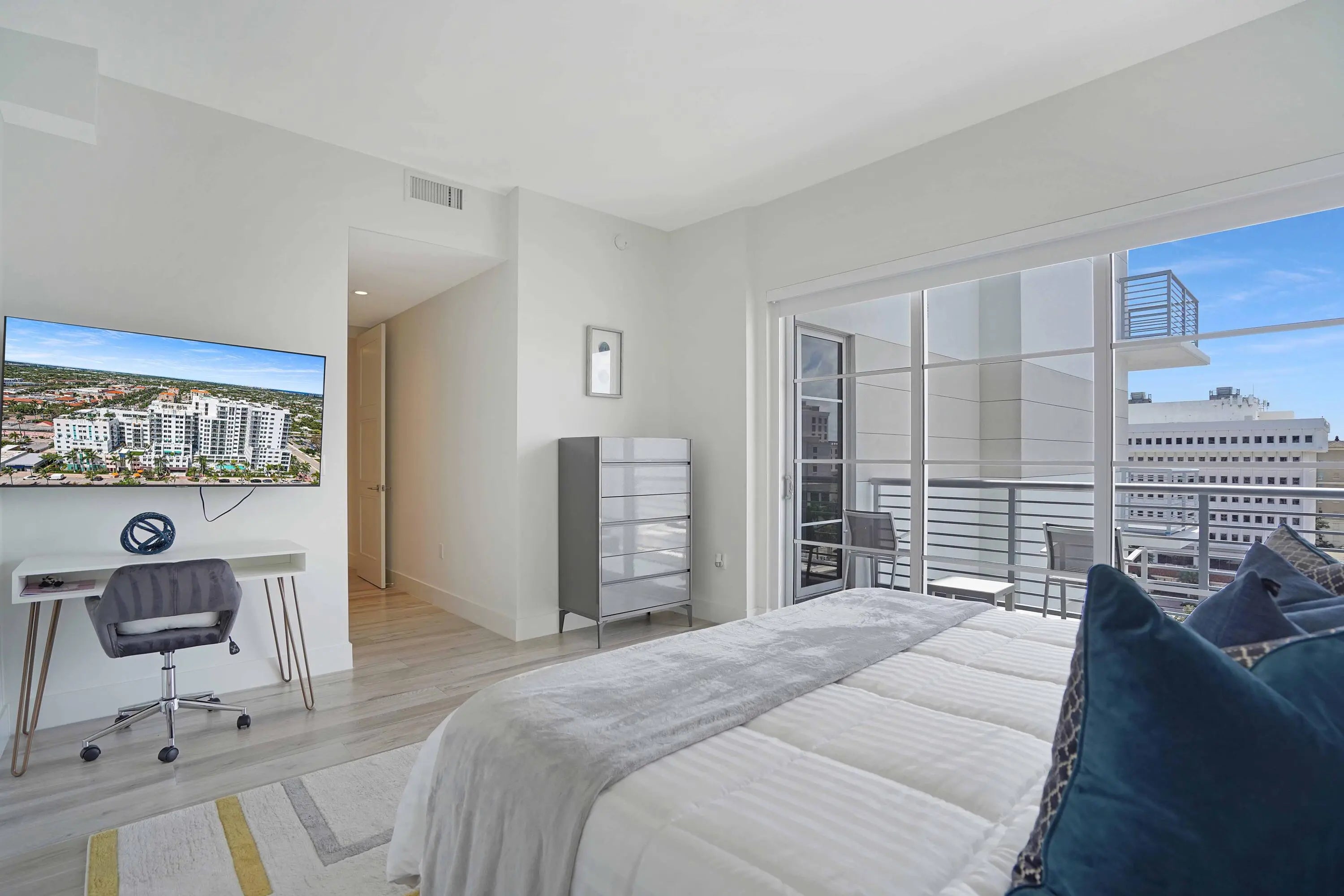 Residence 916 at Tower 155 in Downtown Boca Raton is positioned within the current active transaction range for immediate consideration. Offering generous interior volume, private terrace access, and modern construction, this residence is located within one of Downtown Boca Raton's full-service luxury buildings. Boasting 2 bedrooms, 2 baths, and 1,672 square feet of living space, Residence 916 features 10-foot ceilings, an expansive primary suite, high-end fixtures, and a thoughtfully designed layout that balances comfort and scale. The private terrace provides direct access to the 9th-floor sundeck, offering a secluded outdoor retreat for relaxation and entertaining. Tower 155 provides a full amenity offering including a rooftop sundeck overlooking Mizner Park with hot tub, chaise loung and private cabanas, a resort-style pool, 24-hour concierge, valet service, grand two-story lobby, club room, fitness center, and spa room. The residence includes two assigned parking spaces. Located moments from Mizner Park, Royal Palm Plaza, Boca Raton beaches, private aviation access, and Town Center Mall.