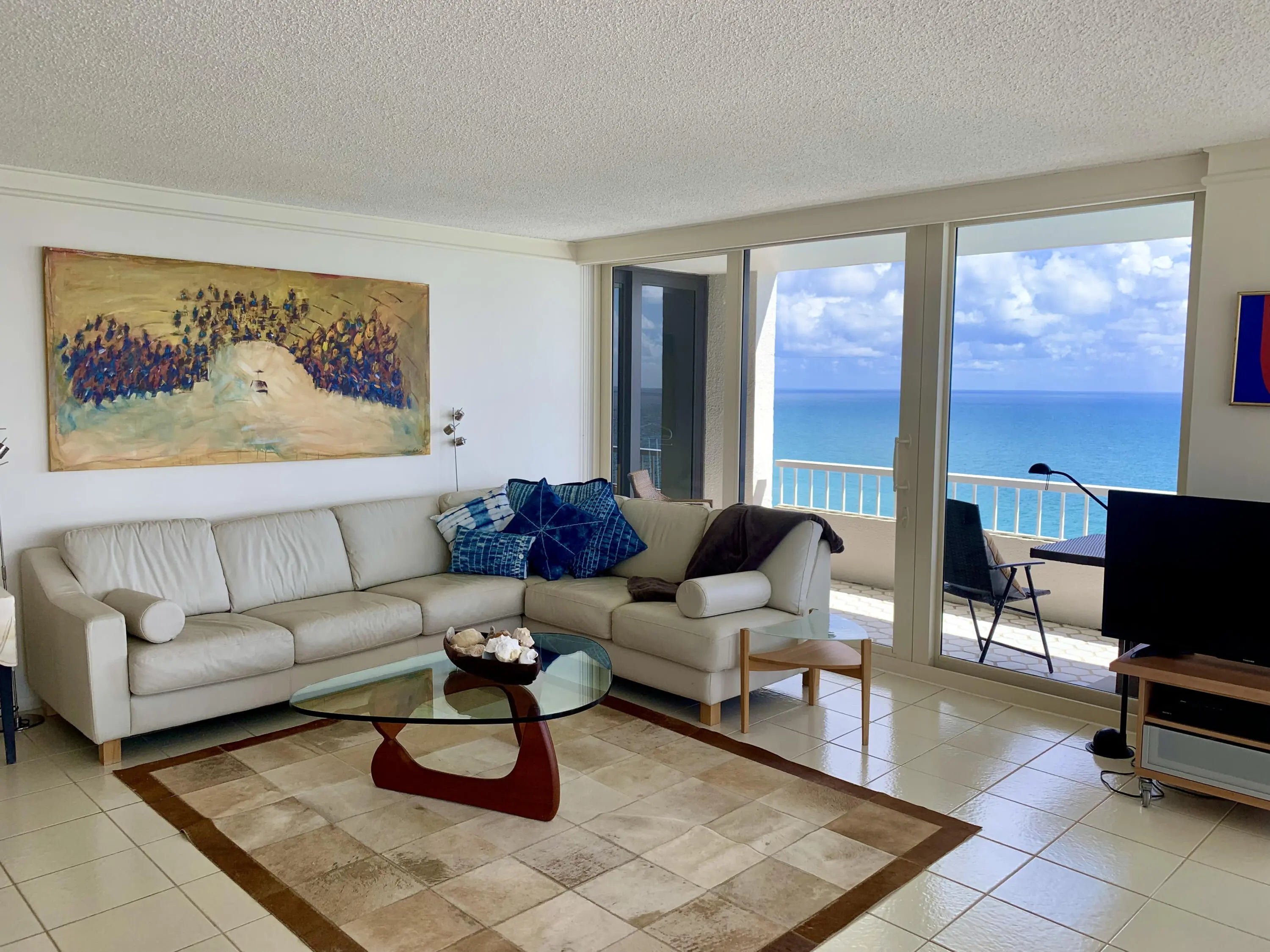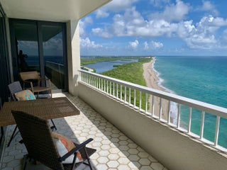 SEASONAL RENTAL - Lease one of the very best views on the island overlooking the pristine northend of Singer Island adjacent to Macarthur State Beach Park. Breathtaking Penthouse ''A'' unit w wrap balcony and extensive ocean and intracoastal views. 2/2 with OPEN kitchen.Queen bed in master and 2 double beds in the guest room. Updated guest room bathroom/shower and washer/dryer is right outside the condo door. Master bath has tub & shower. Flat screen TV's all rooms. Garage covered parking space & hurricane impact doors. Kitchen has Nespresso machine & soda maker for bubbly water. Water Glades Amenities include two pools, private beach access, renovated community room, grills, putting green, tennis courts, lobby, library or media room, manned guard & much more. Access to storage locker.