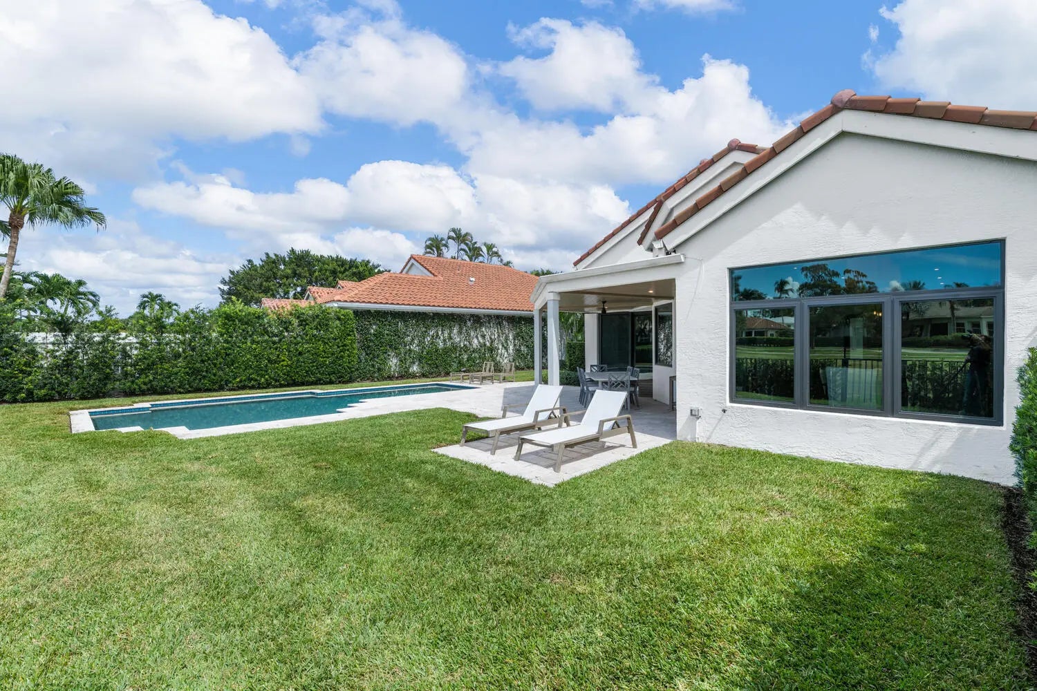 Located behind the manned security gate of the exclusive Palm Beach Polo Country Club. This stunningly renovated 3-bedroom, 3-bathroom home offers a blend of modern elegance and functional design, all while overlooking the picturesque Cypress Golf Course and featuring a serene lake view. With its open floor plan, high ceilings, and wood floors throughout, this home exudes both style and comfort. The kitchen is a chef's dream, showcasing custom cabinetry, marble countertops, and a farmhouse sink. It comes fully equipped with all new appliances, including a gas range and a Fhiaba refrigerator. The attention to detail extends to the sleek plumbing fixtures and new HVAC unit with stylish lineal AC vents installed in the ceiling. The property also boasts a new roof, impact windows and doors throughout, and a fenced-in yard with plenty of space. The outdoor area is perfect for entertaining, featuring a resurfaced pool surrounded by new travertine pavers. With a 2-car garage and ample space, this home is designed for both luxury and convenience.