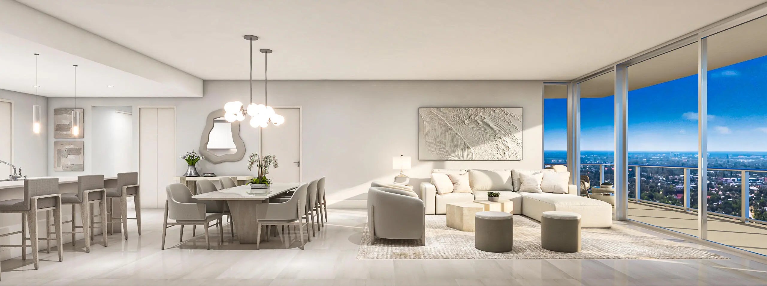 Nautilus 220 is a new luxe waterfront development under construction with closings beginning soon, alongside a marina with 330 condominium residences in two, 24 story towers, a one- acre outdoor amenity deck, the SeaHawk Prime by David Burke restaurant, retail, a café and office suites. Everything you need in one place, resort-style living perfected. This unique floorplan is beautifully appointed with 10ft ceilings and hurricane impact glass, porcelain tile throughout, full Miele Appliance package, wine & beverage cooler, waterfall quartz kitchen island and countertops with European cabinetry, split-bedroom layout, oversized owner's suite with large bathroom featuring freestanding soaking tub, and large terrace with Northeast water views. N220 boasts a 1-acre outdoor amenity deck with a resort pool, sundeck, spa, fire pit, yoga deck, putting green, off-leash dog park, and 2 floors of indoor amenities with a spin studio, yoga studio, sauna and steam rooms, bowling, theater, golf + sports simulator, music studio, club room, billiards and card tables, kids' playroom, teen gaming room, and much more including a rooftop lap pool and spa with 360-degree panoramic views. Additional services include 24-hour onsite security and management, electric car charging, guest suites. With waterfront restaurants, retail, offices, café, and private beach club access, N220 is your destination for luxury living. Our Lobby with 18ft voluminous ceilings and amenities areas designed by the renowned Interiors by Steven G. provide a grand arrival into your new home. Our 330 residences offer 2- 3 bedrooms, multiple floorplan options, and multiple water views. Very pet friendly community.
