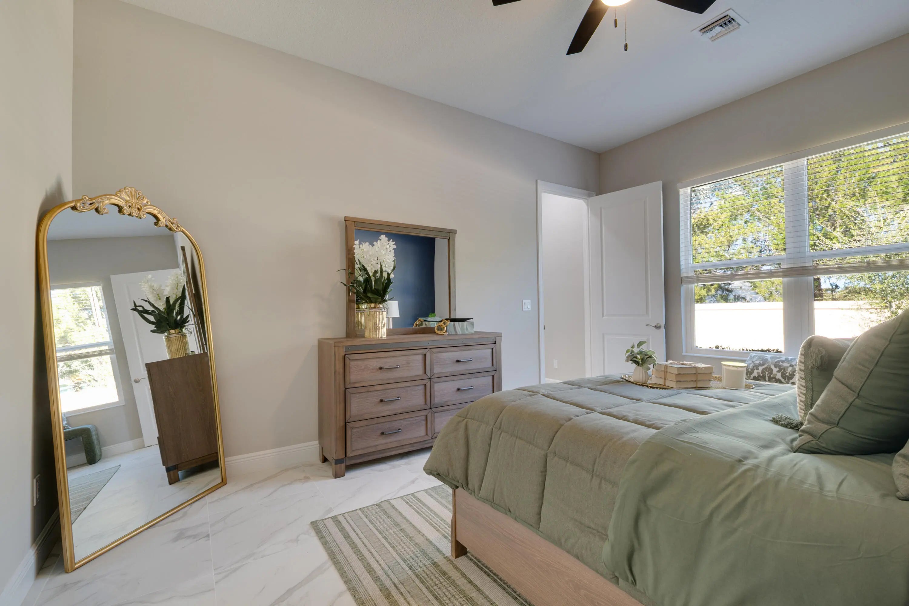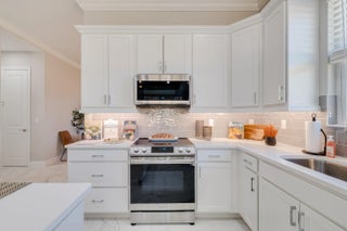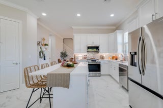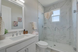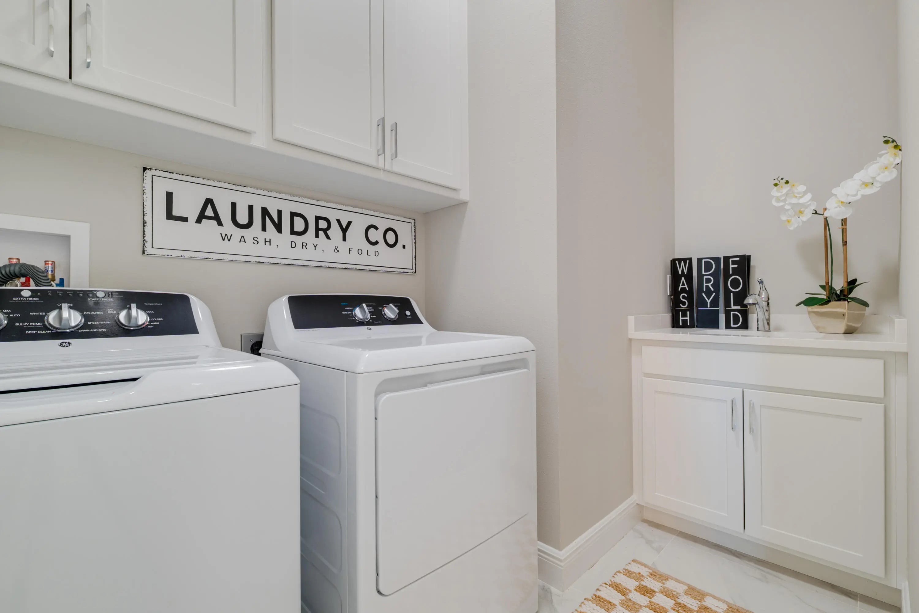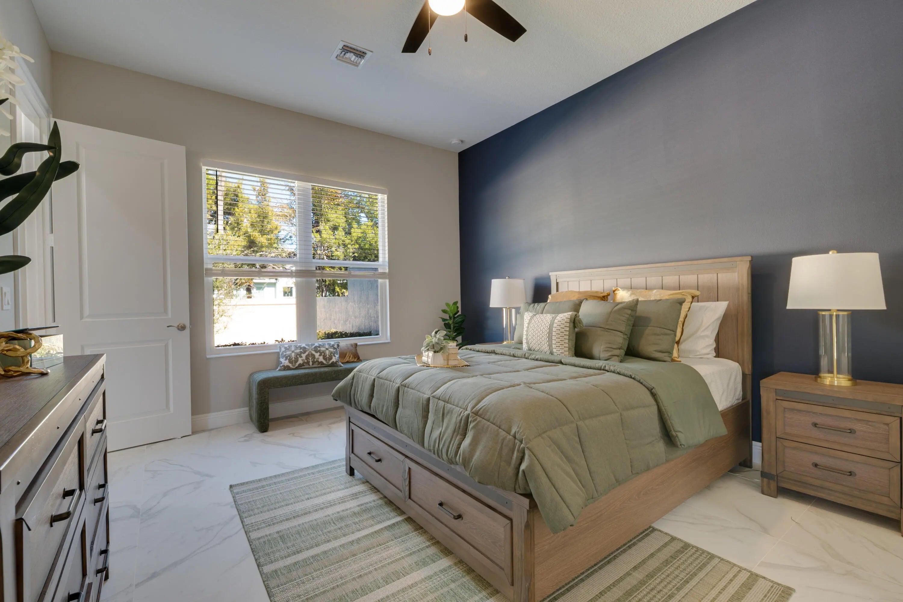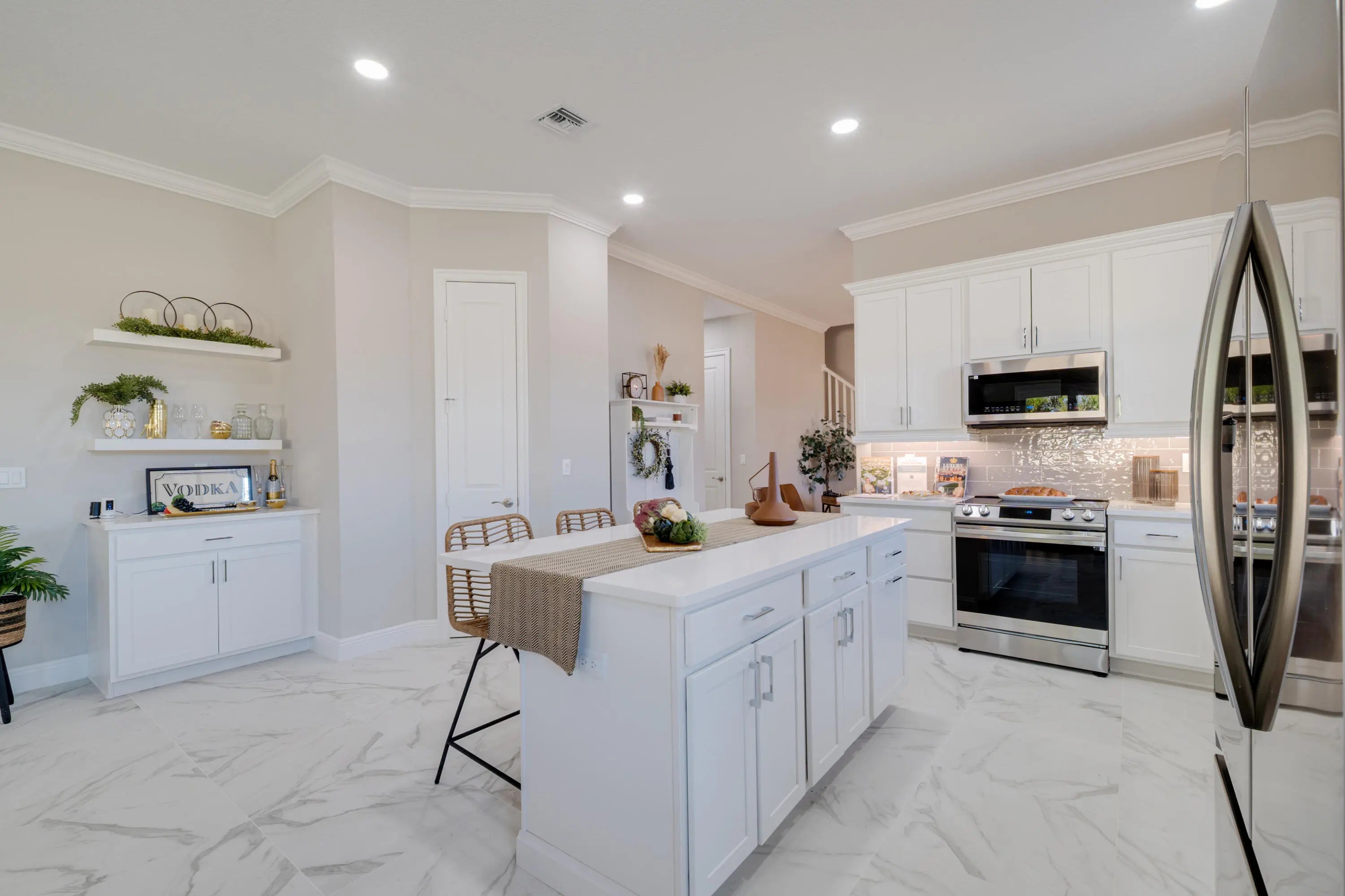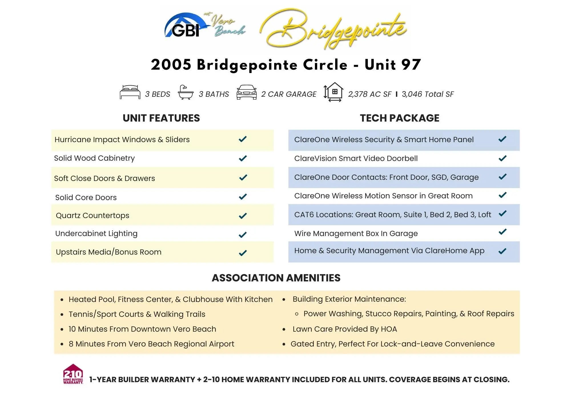Ask about our preferred lenders ''No Closing Cost'' program! Experience luxury and space in this 2-story corner unit with an oversized 27' wide garage. The main floor offers two bedrooms, including the primary suite, plus a bright open living area. Upstairs adds flexibility with a spacious 3rd bedroom, full bath, walk-in closet, loft, and a media/flex room. The gourmet kitchen showcases 42'' custom wood cabinets, quartz counters, backsplash, and stainless appliances. Enjoy seamless indoor-outdoor living with a covered patio and expansive impact glass doors and windows. Bridgepointe amenities include exterior maintenance, lawn care, pool, tennis, gym, and clubhouse.